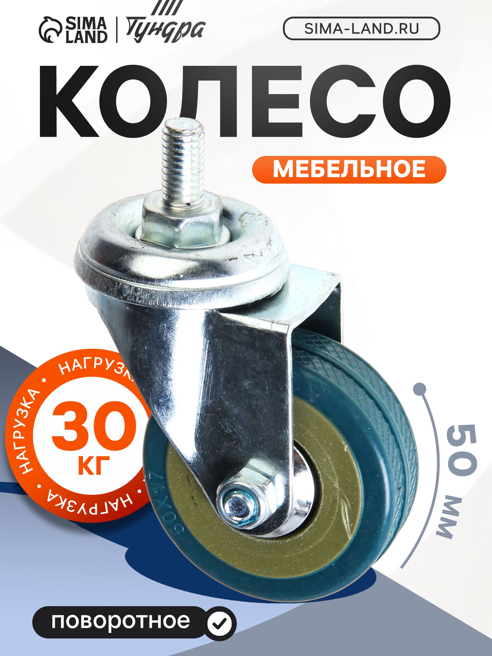 Колесо мебельное, D=50 мм, с футоркой, серое