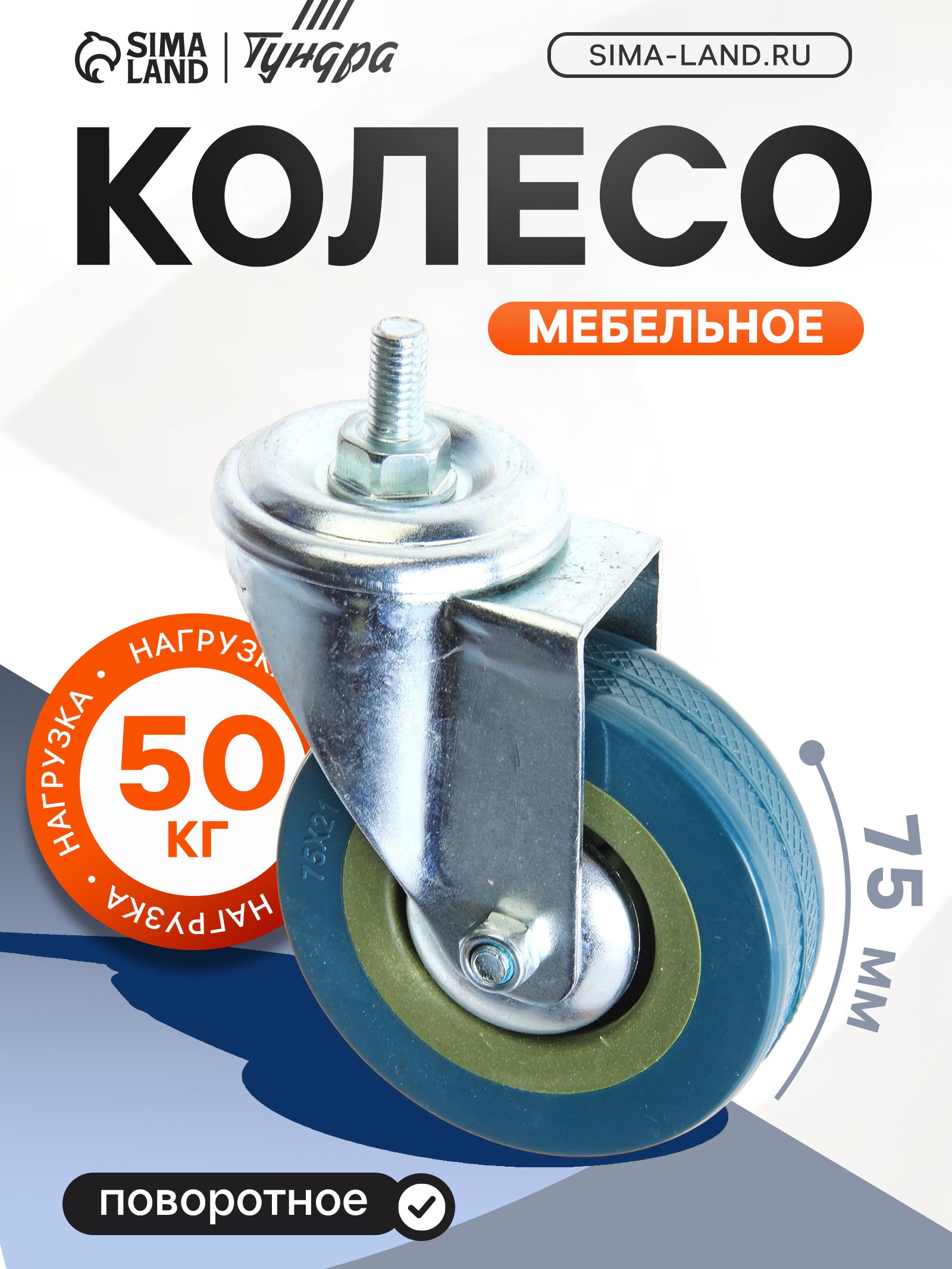 Колесо мебельное, D=75 мм, с футоркой, серое