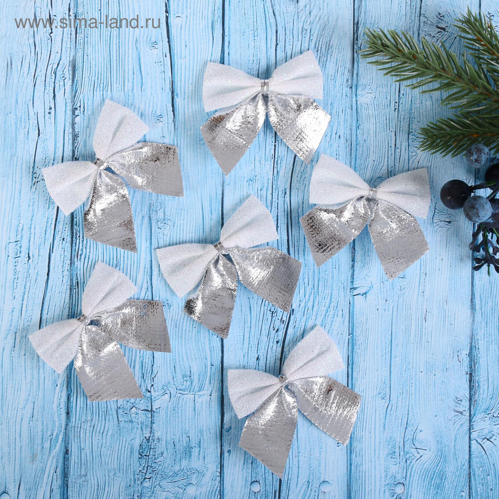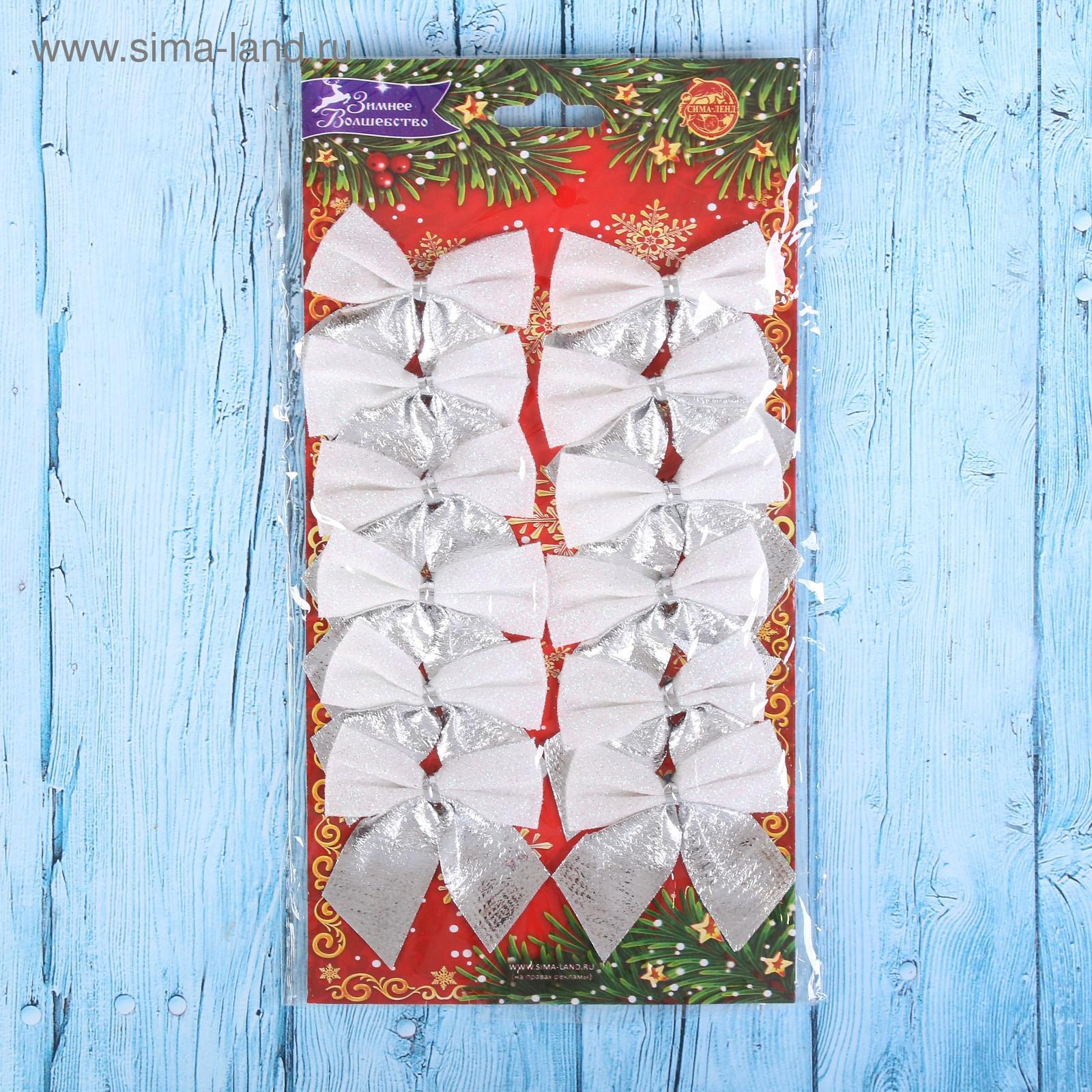 Ёлочные игрушки 12 шт. «зимнее волшебство. бант» пластик, 5.5 5 см, серебристо-белый