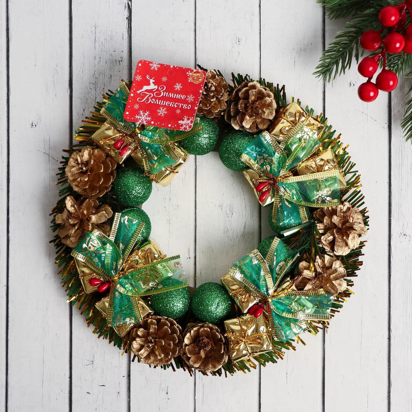 Венок новогодний d=22 см «зимнее волшебство», зелёные бантики с шариками. Прикоснитесь к зимней сказке с изысканным украшением, которое превратит ваш дом в уголок праздничного очарования. Аксессуар идеально впишется в любой интерьер. Компактность: небольшой размер делает его универсальным решением для оформления дверей, окон или даже мебели.Долговечность: материалы обеспечивают сохранность внешнего вида на протяжении нескольких сезонов.Универсальный стиль: подходит для любых дизайнов, будь то классический или современный, благодаря гармоничному сочетанию традиционных и инновационных элементов.Добавьте немного зимней магии в свою жизнь с этим украшением. Оно станет не просто декоративным элементом, а настоящим символом праздника, который будет радовать вас и ваших гостей всё новогоднее season. Пусть каждый уголок вашего дома засияет теплом и светом благодаря этому удивительному созданию! Цвет:Зелёный|Диаметр, см:22|Символ года:Нет|Тематика праздника:Новый год|Материал:Пластик|Стиль:Скандинавский|Стиль:Шебби-шик|Страна:Китай  развернуть описание ▼