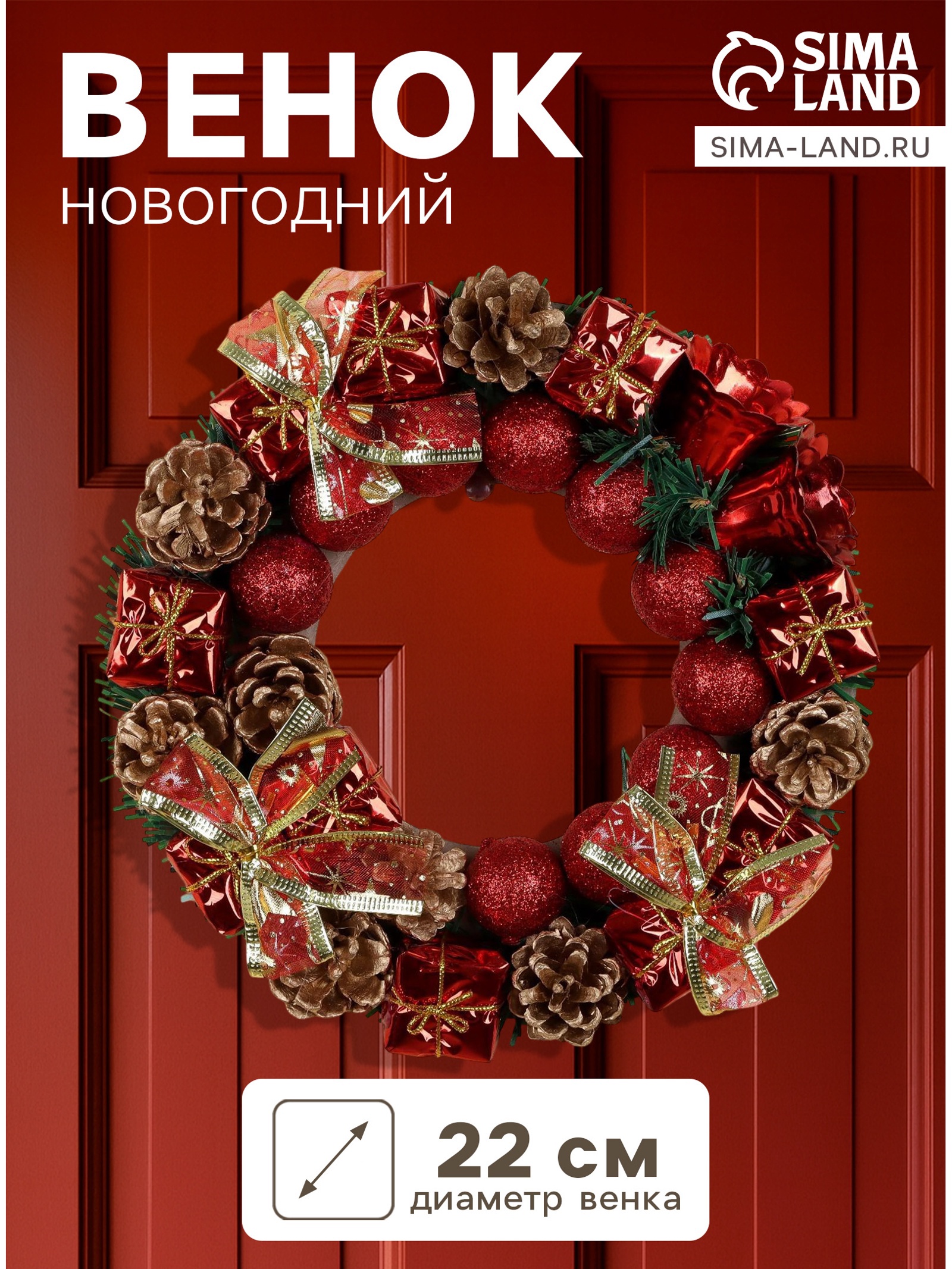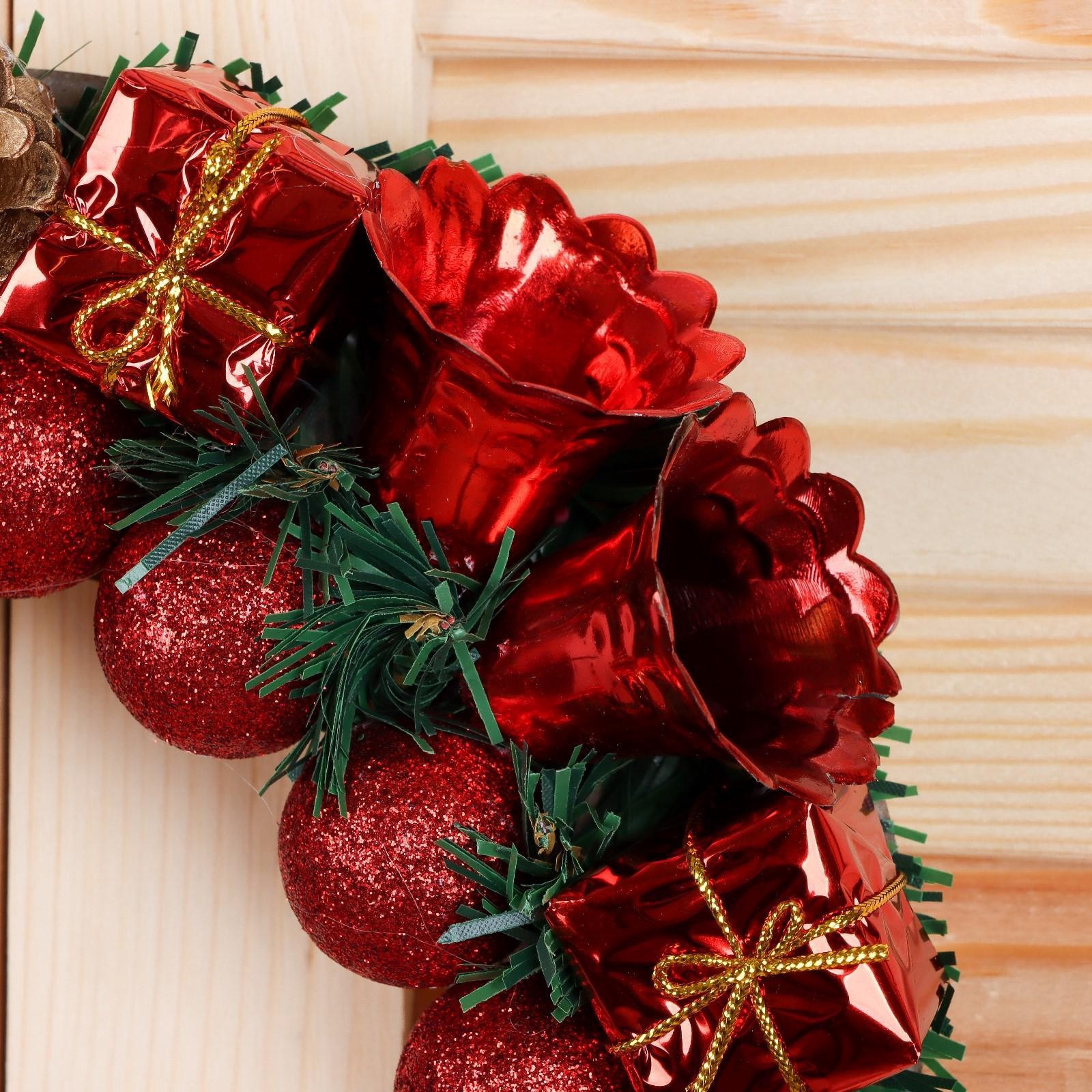 Венок новогодний d=22 см «зимнее волшебство», с красными шариками, колокольчиками и подарками. Прикоснитесь к зимней сказке с изысканным украшением, которое превратит ваш дом в уголок праздничного очарования. Аксессуар идеально впишется в любой интерьер. Компактность: небольшой размер делает его универсальным решением для оформления дверей, окон или даже мебели.Долговечность: материалы обеспечивают сохранность внешнего вида на протяжении нескольких сезонов.Универсальный стиль: подходит для любых дизайнов, будь то классический или современный, благодаря гармоничному сочетанию традиционных и инновационных элементов.Добавьте немного зимней магии в свою жизнь с этим украшением. Оно станет не просто декоративным элементом, а настоящим символом праздника, который будет радовать вас и ваших гостей всё новогоднее season. Пусть каждый уголок вашего дома засияет теплом и светом благодаря этому удивительному созданию! Цвет:Красный|Диаметр, см:22|Символ года:Нет|Тематика праздника:Новый год|Материал:Пластик|Стиль:Новогоднее барокко|Стиль:Скандинавский|Страна:Китай  развернуть описание ▼