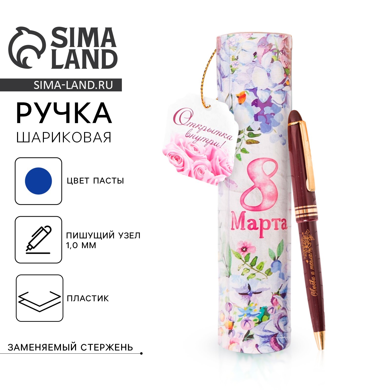 Ручка шариковая, синяя паста, 1.0 мм, в тубусе, пластик «8 марта»
