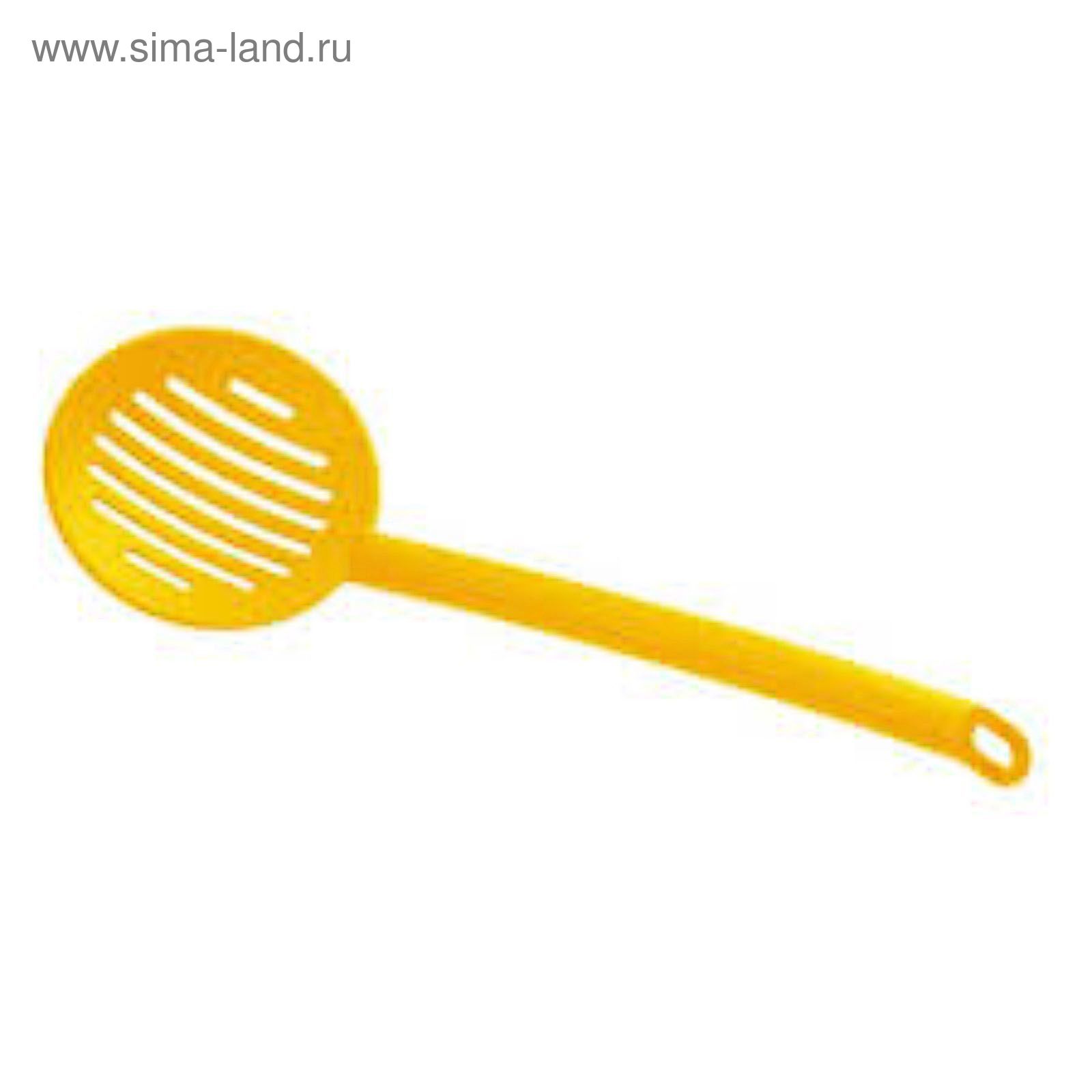 Шумовка tescoma, цвет жёлтый. Шумовка Space Tone подходит для сбора и процеживания пены из бульона, для процеживания приготовленных овощей, макаронных изделий, вылавливания из кастрюли пельменей и вареников, перемешивания супов и тушеных блюд, а также блюд, обжаренных на сковороде и легко отделяющих их от излишков масла или жира. Подходит для всех видов посуды, отлично подходит для посуды с антипригарным покрытием, так как не повредит антипригарную поверхность. Изготовлена из первоклассного термостойкого нейлона, устойчивого до 210°C. Не оставляйте в пище более 10 минут, обесцвечивание продуктов не является их дефектом. Можно мыть в посудомоечной машине. Цвет: Жёлтый Материал ручки: Пластик Материал: Нейлон Можно мыть в посудомоечной машине: Да Серия: Space Tone Серия: Tescoma Space Tone  развернуть описание ▼
