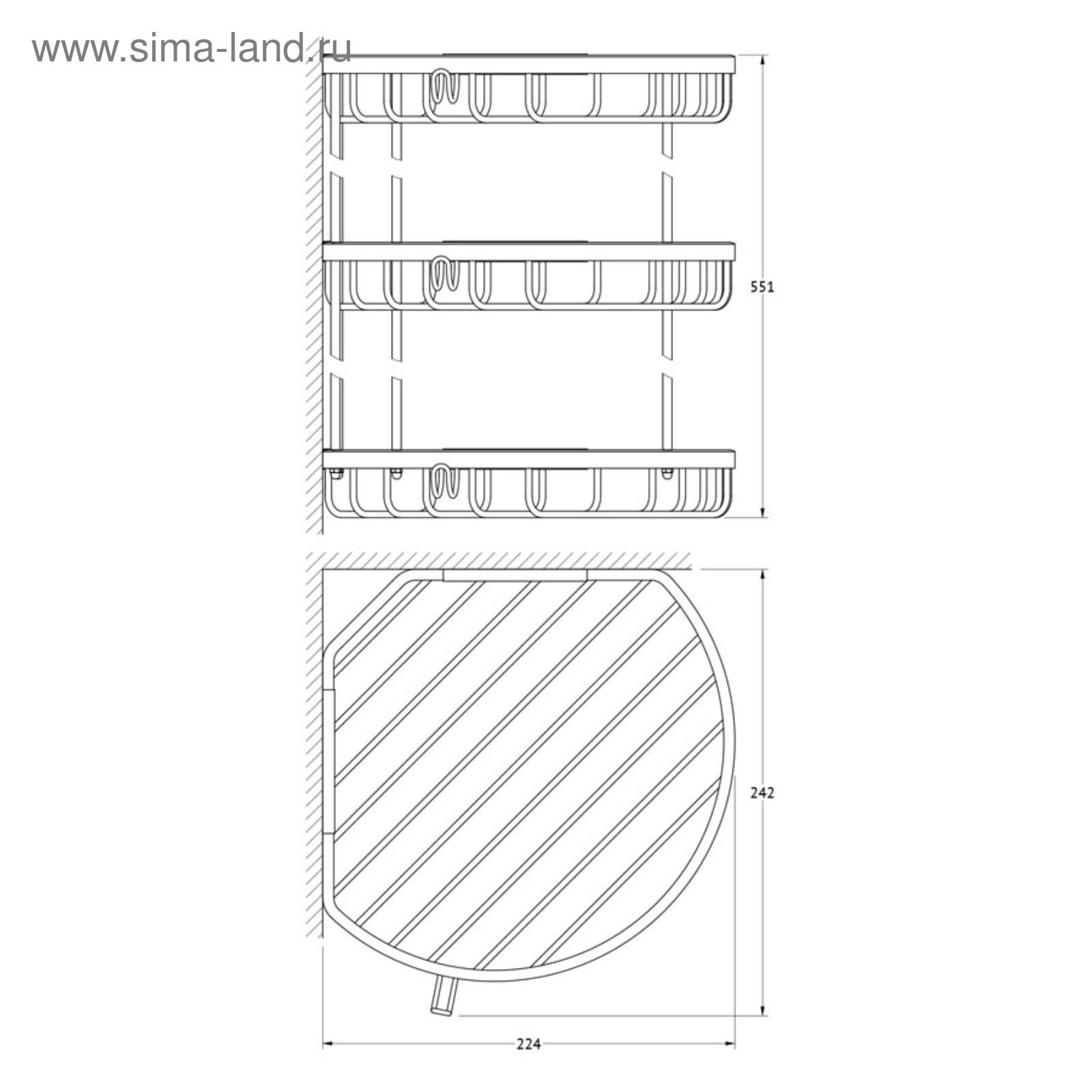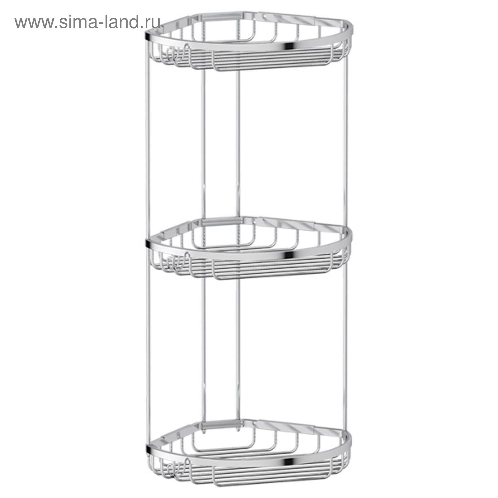Угловая полочка-решётка с крючками, трёхъярусная, размер 26 х 26 х 26 см, хром