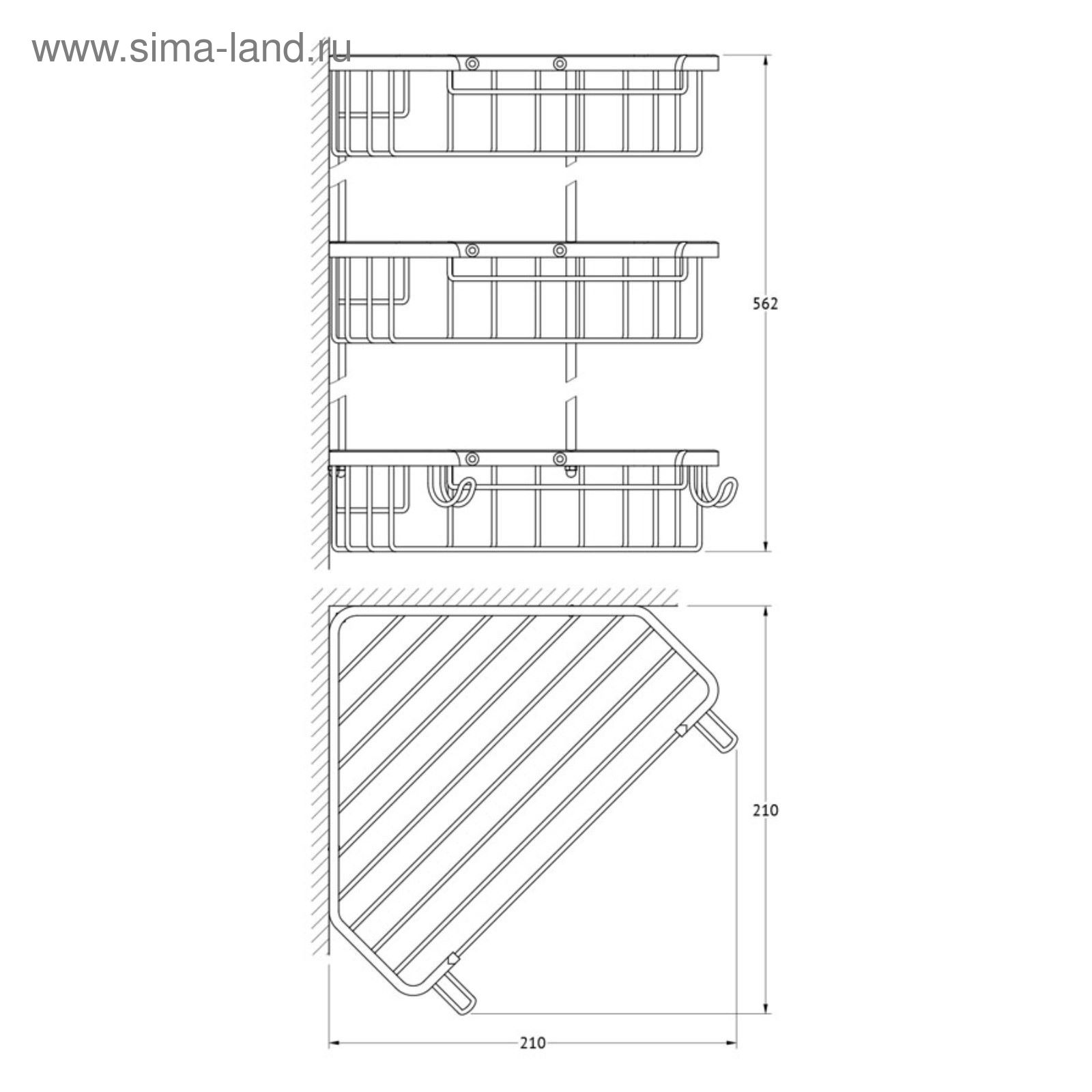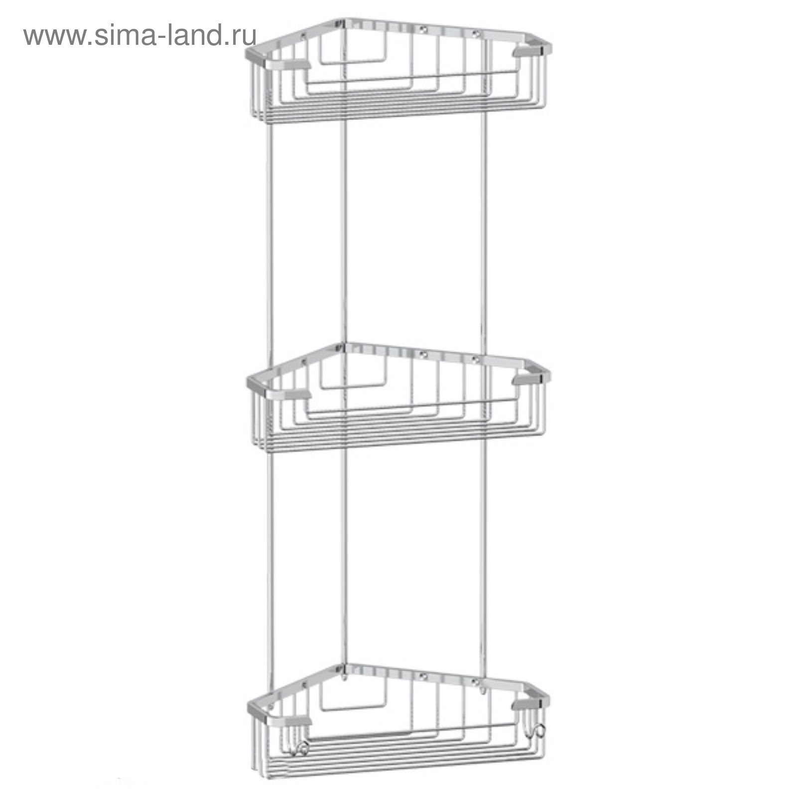 Угловая полочка-решётка с крючками, трёхъярусная, размер 23 х 23 х 23 см, хром