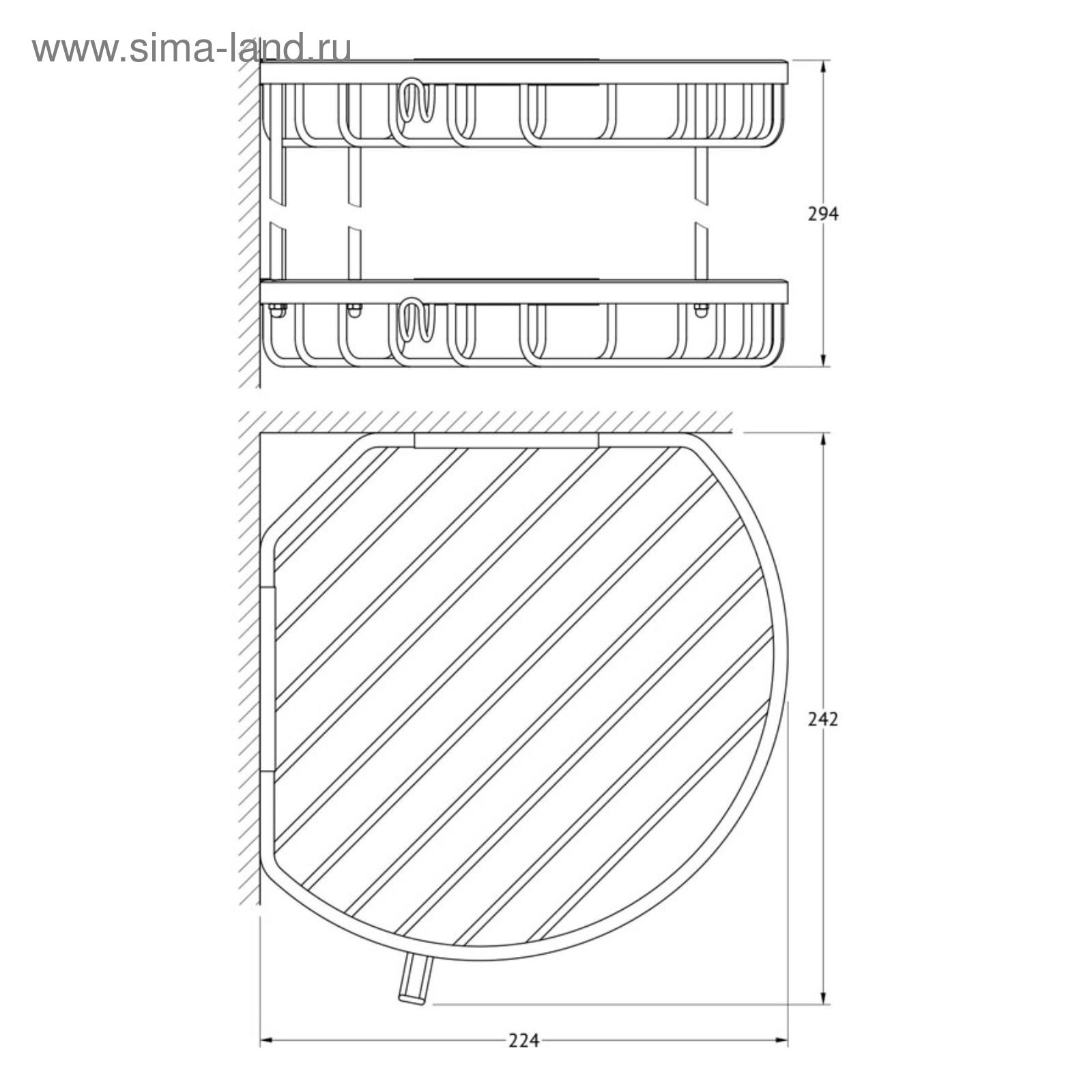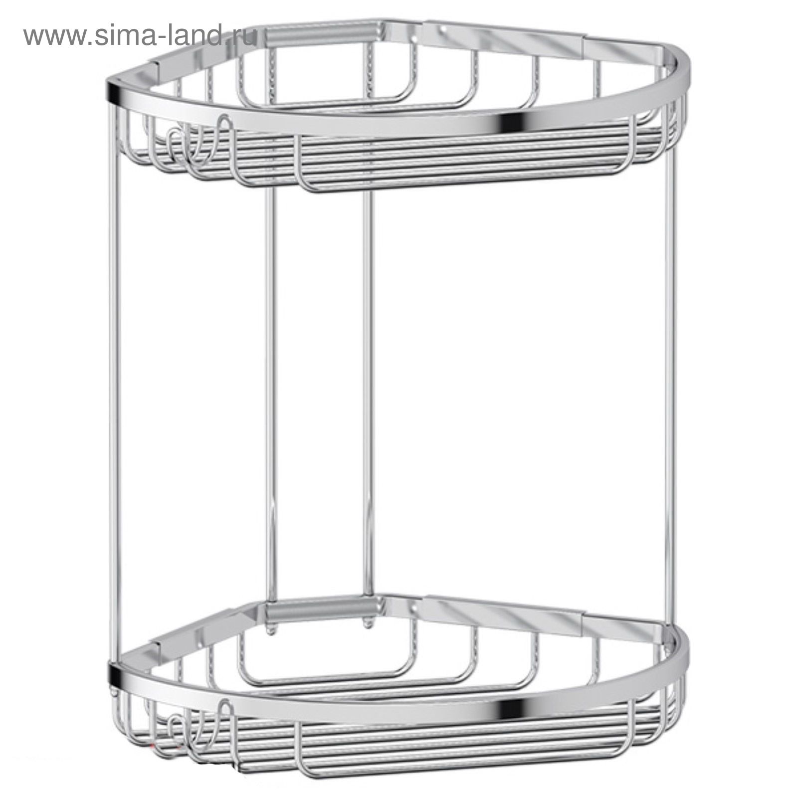 Угловая полочка-решётка с крючками, двухъярусная, размер 26 х 26 см, хром