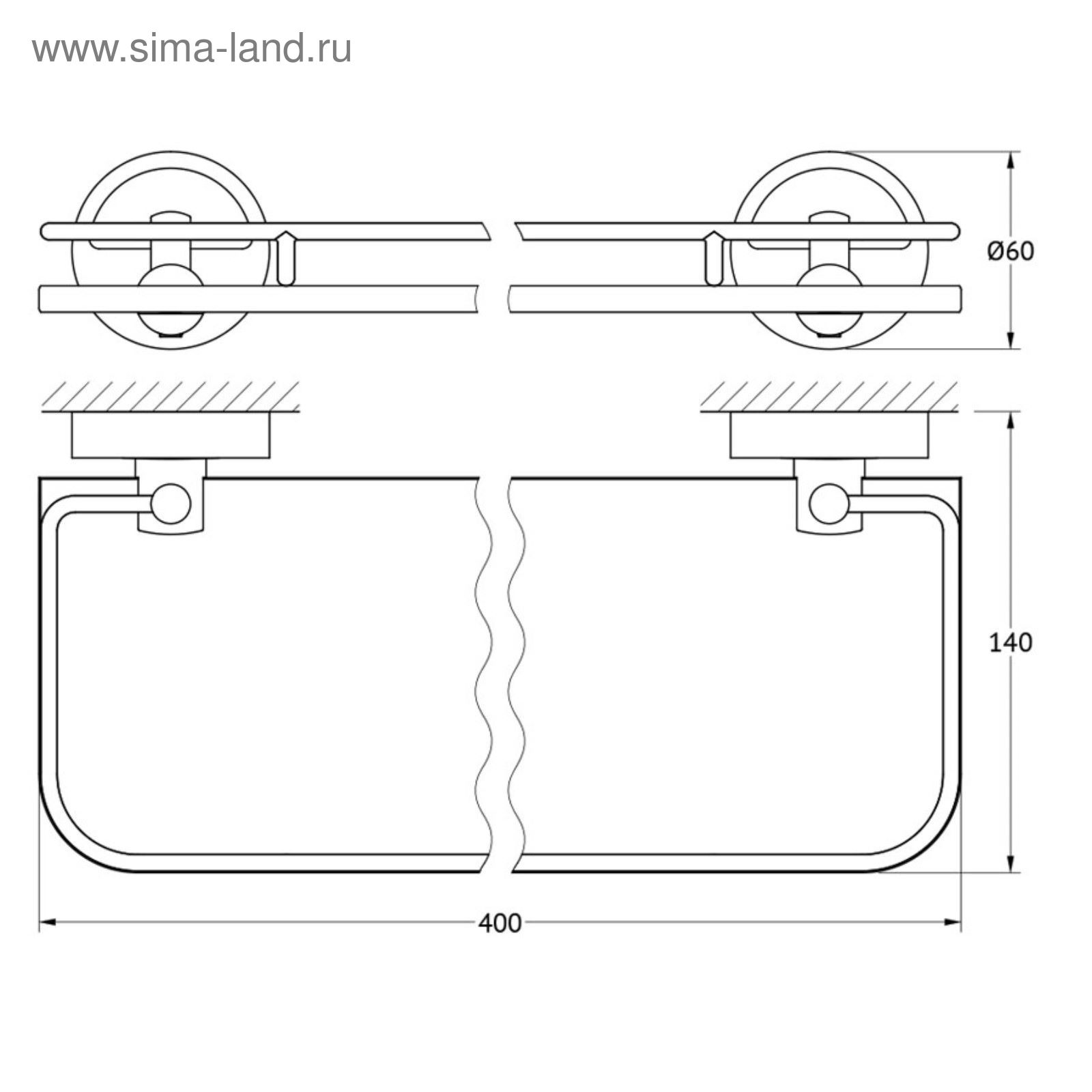 Полка с держателями, ширина 40 см, матовое стекло, хром