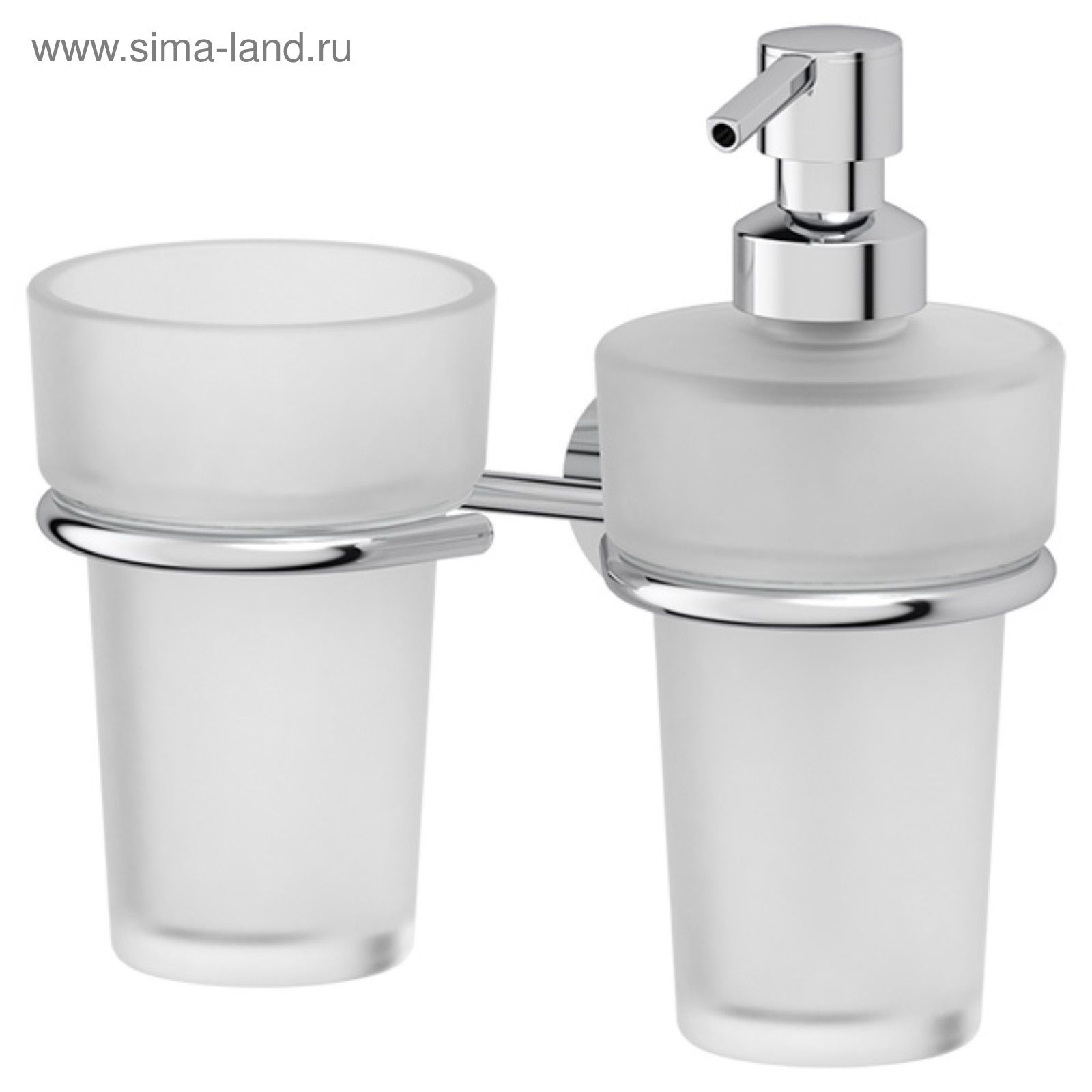 Держатель со стаканом и дозатором жидкого мыла, матовый хрусталь, хром, Fbs