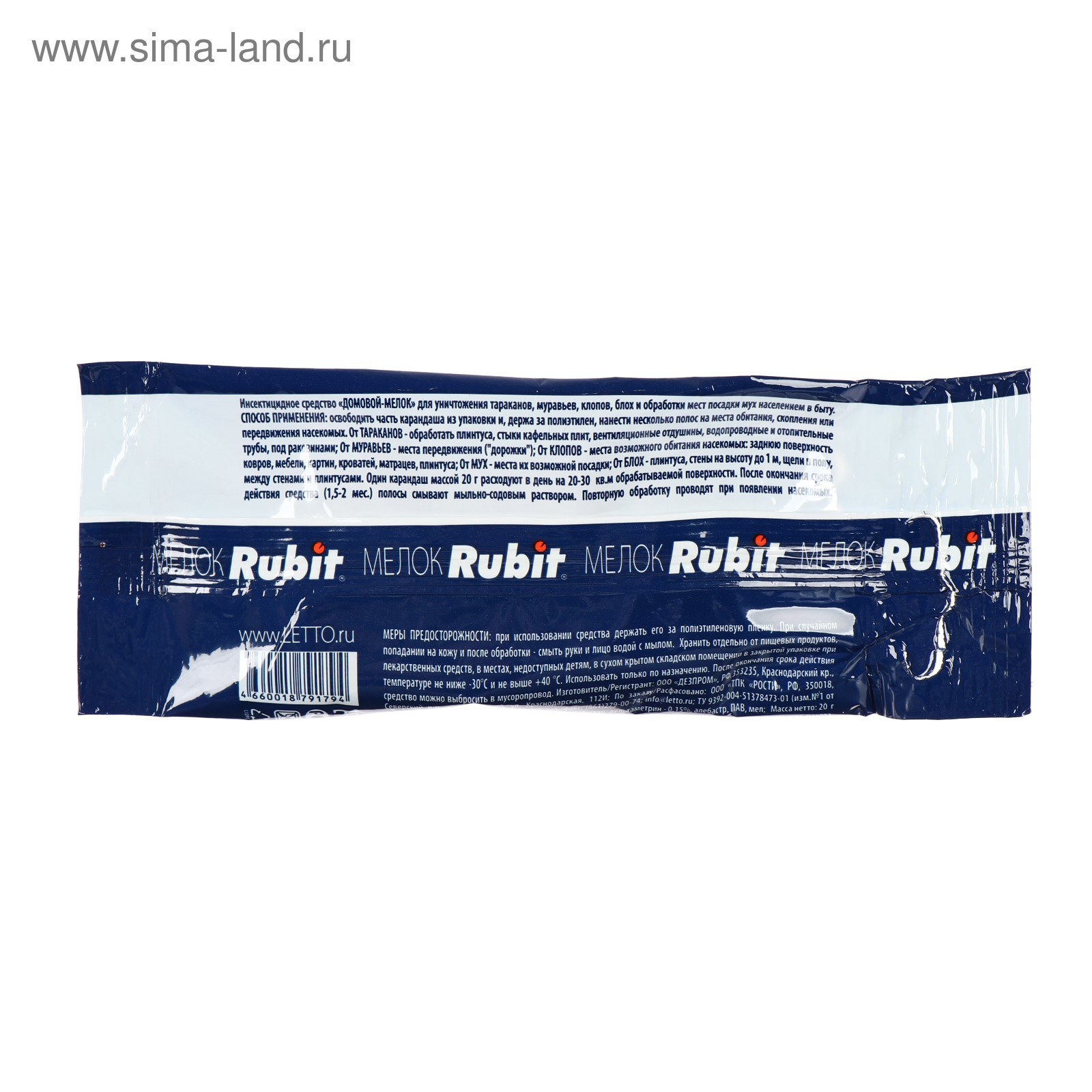 Мелок от всех насекомых "rubit", 20 г. Вид средства: Мелок