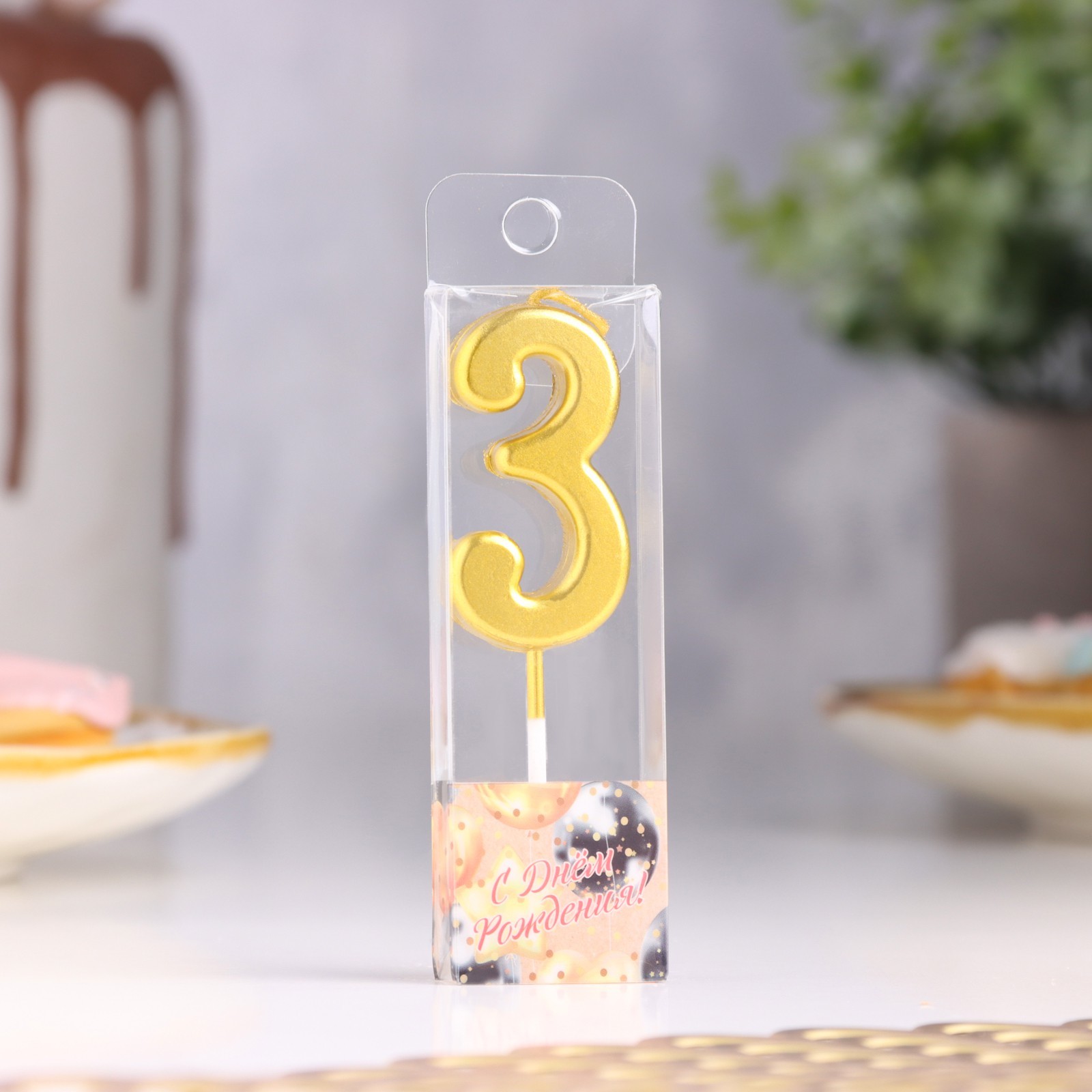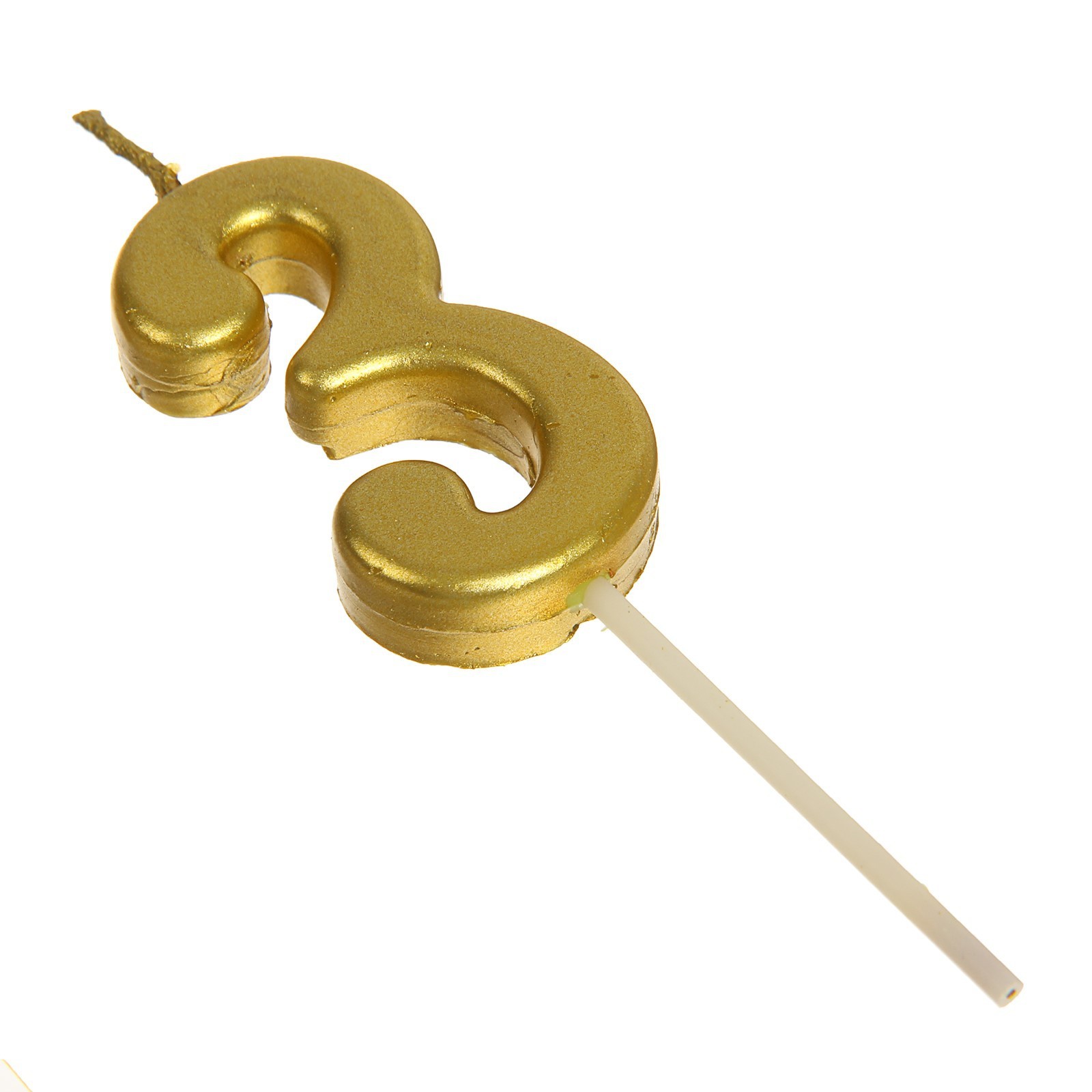 Свеча в торт на шпажке «цифра 3», золотая, 4.5 2.5 см