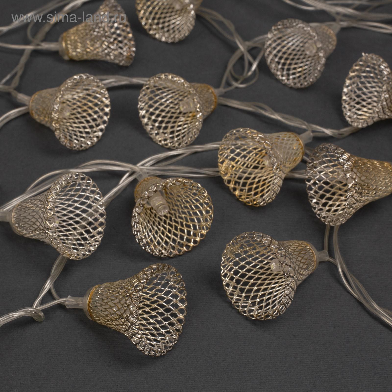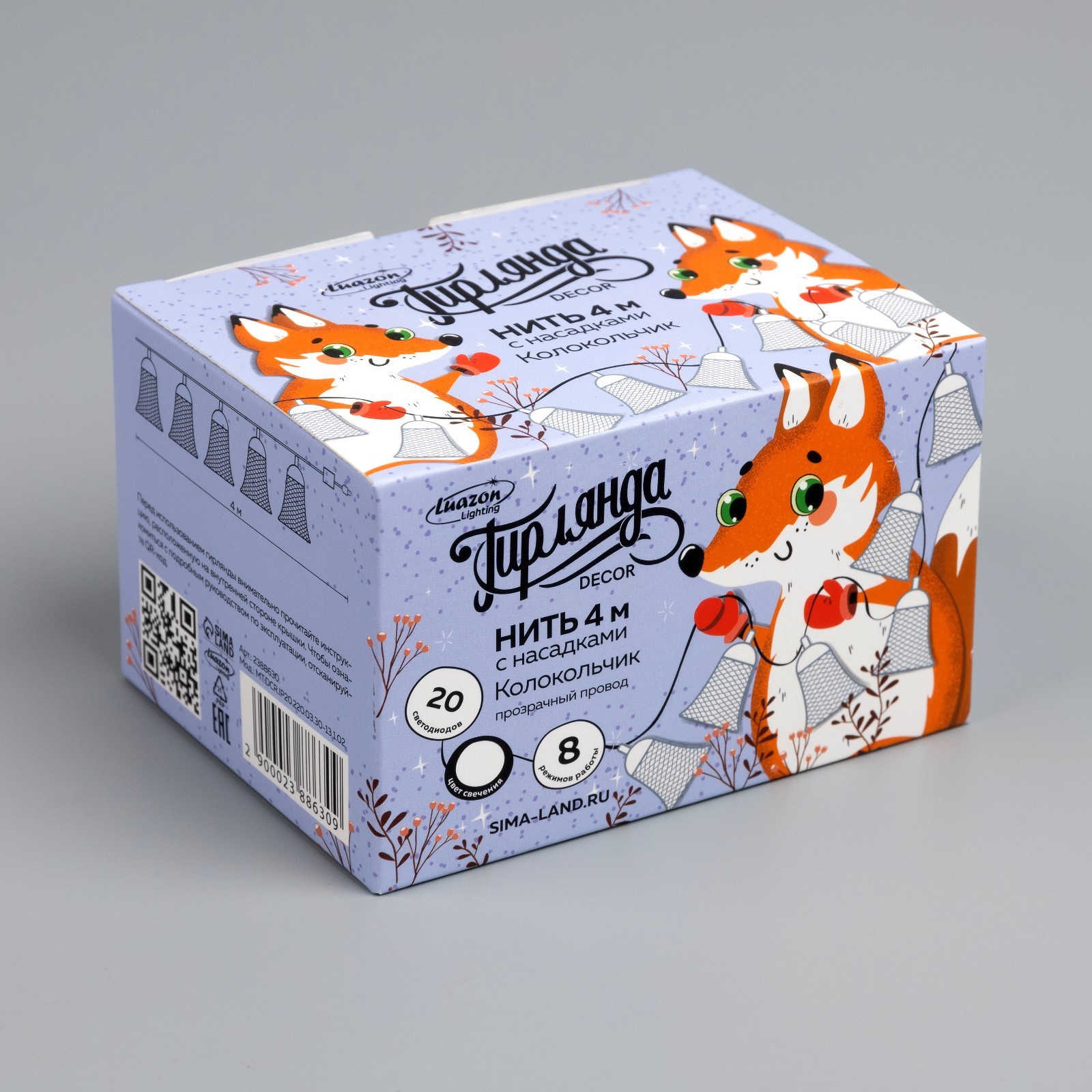 Гирлянда «нить» 4 м с насадками «колокольчик», Ip20, прозрачная нить, 20 Led, свечение белое, 8 режимов, 220 в
