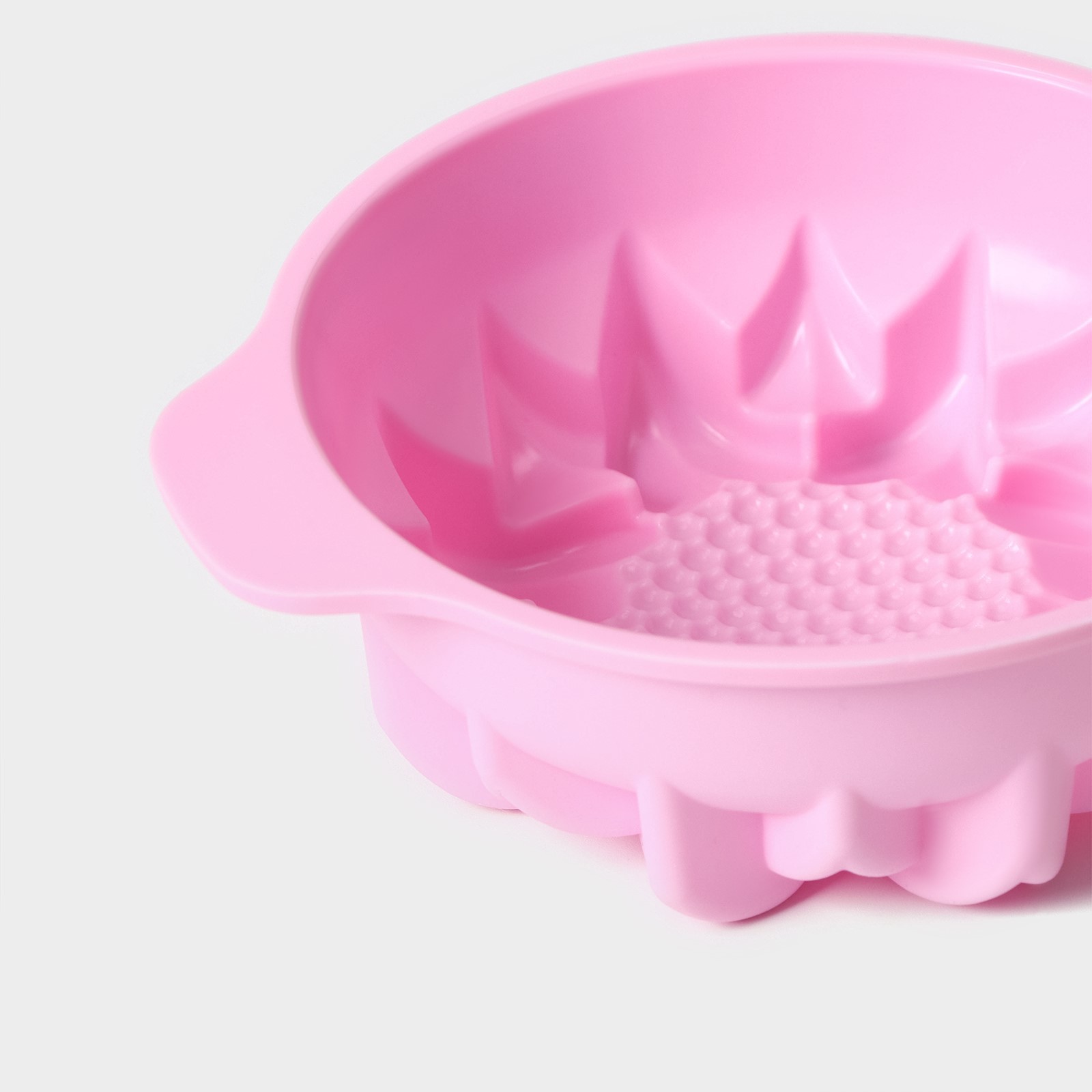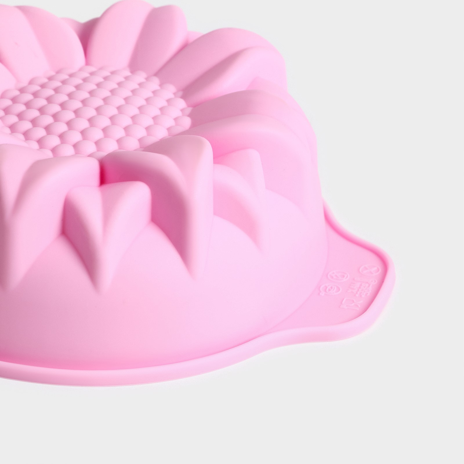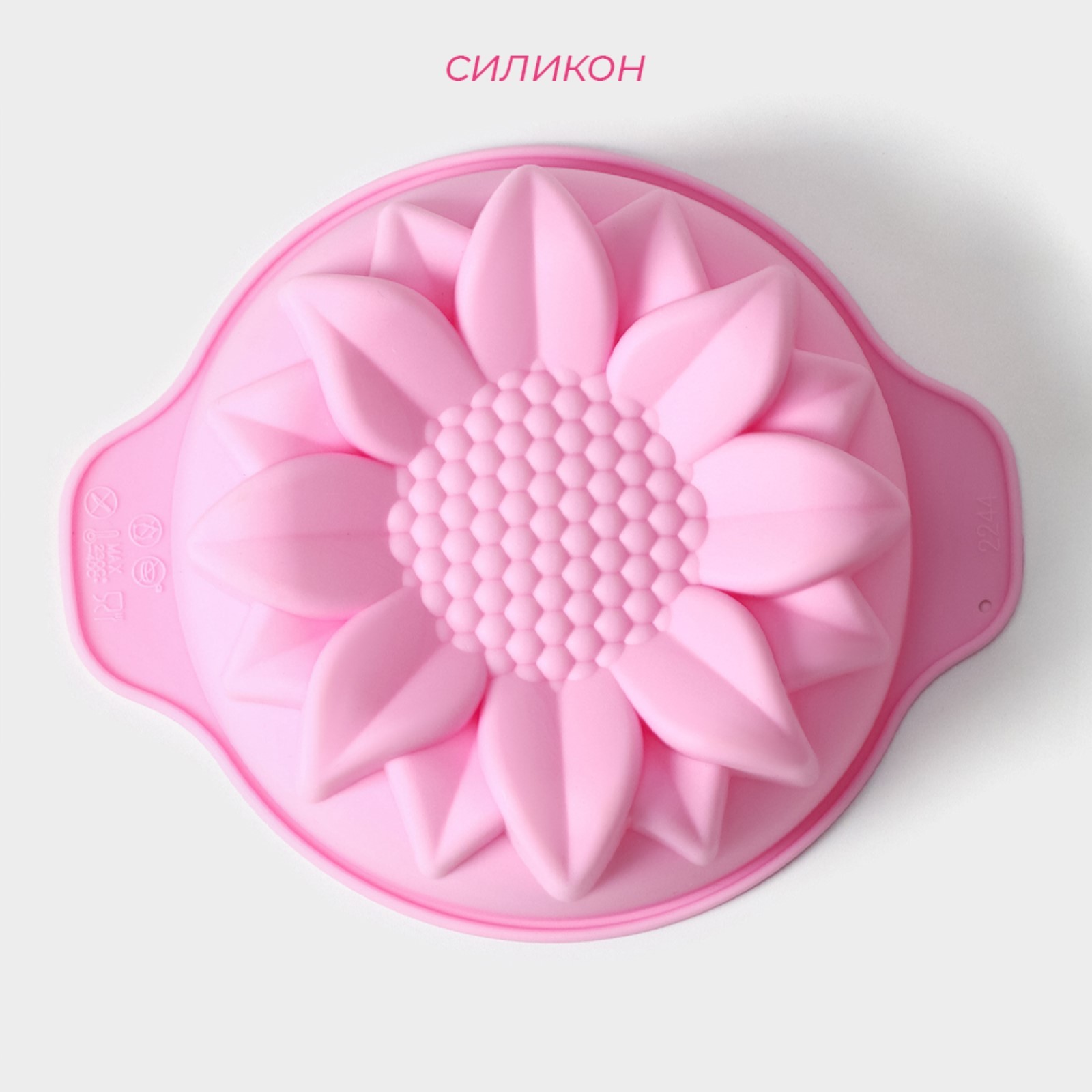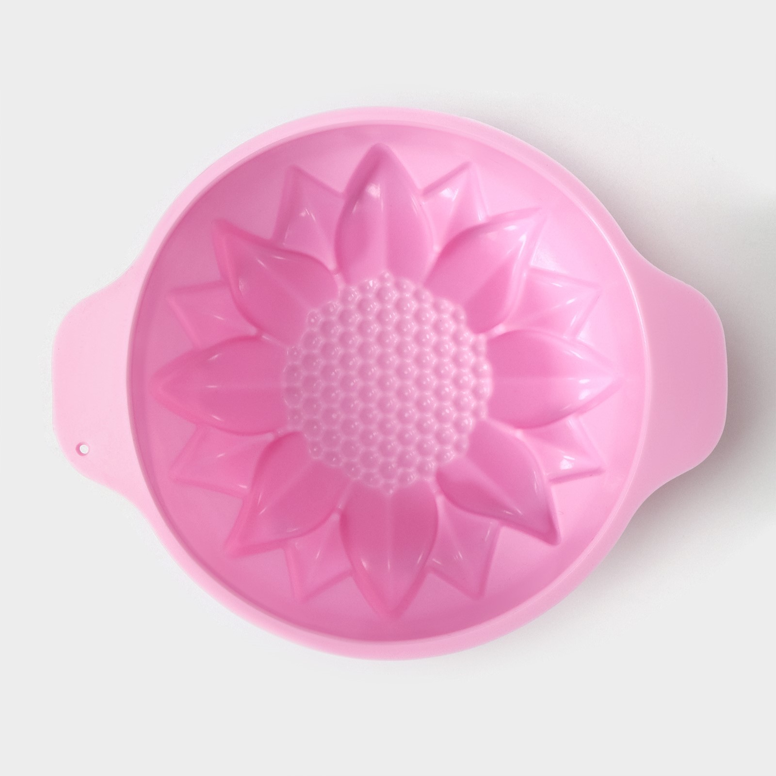 Форма силиконовая для выпечки доляна «подсолнух», 15,3x13 см, с ручками, цвет розовый. Цвет: Розовый Форма: Фигурная Фасовка, шт.: 1 Количество ячеек: 1 Крышка: Нет Материал: Силикон Тип покрытия: Без покрытия Ячейки: Нет Наличие палочек для форм: Нет Тип формы: Для коржей Тип формы: Для пирогов Разъёмная форма: Нет Можно мыть в посудомоечной машине: Да  развернуть описание ▼