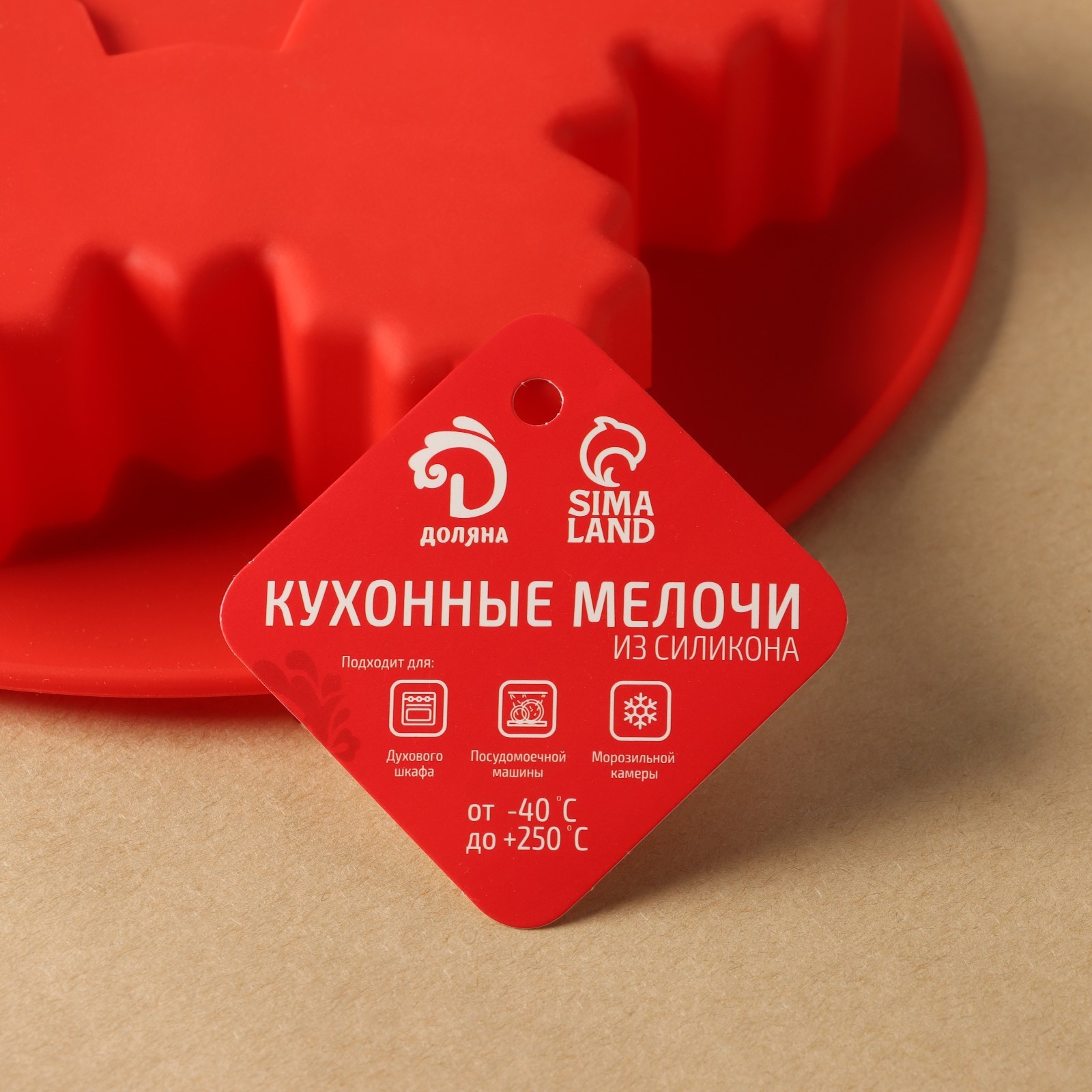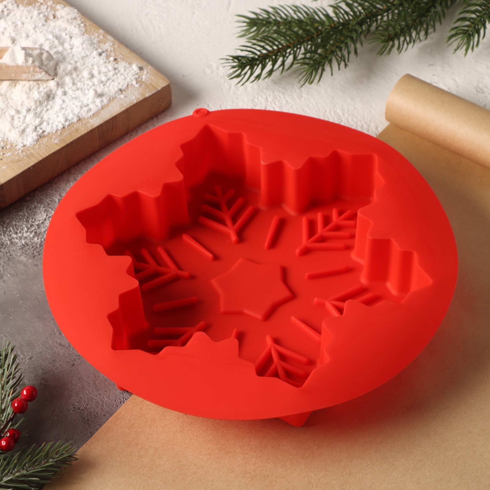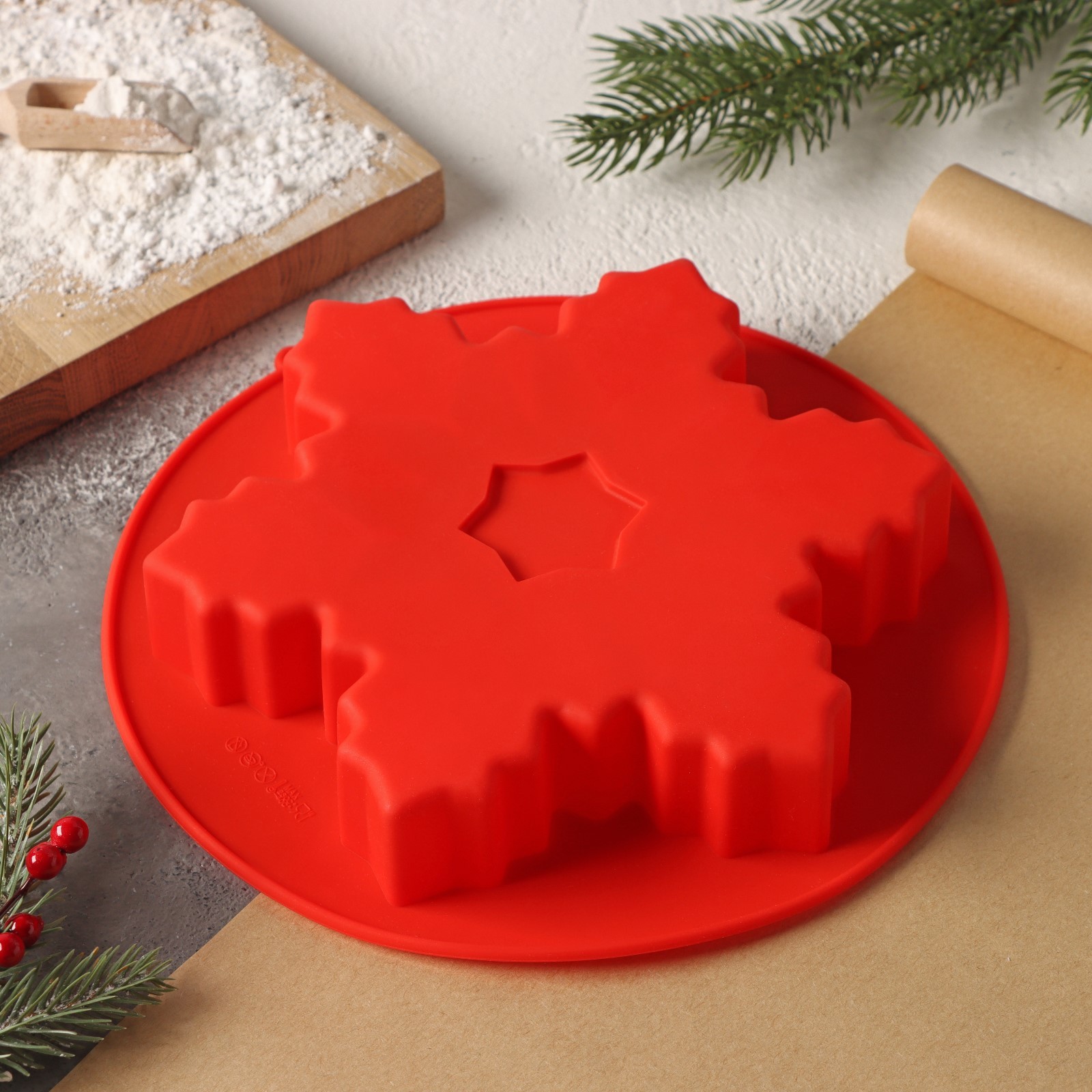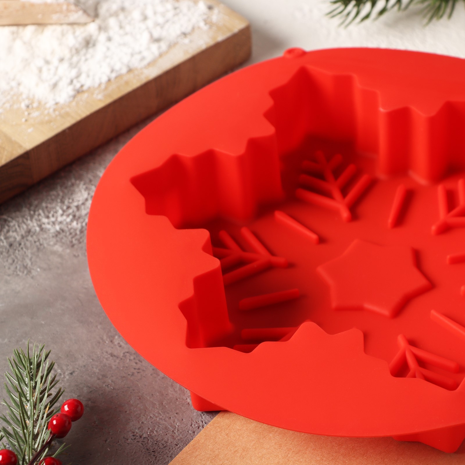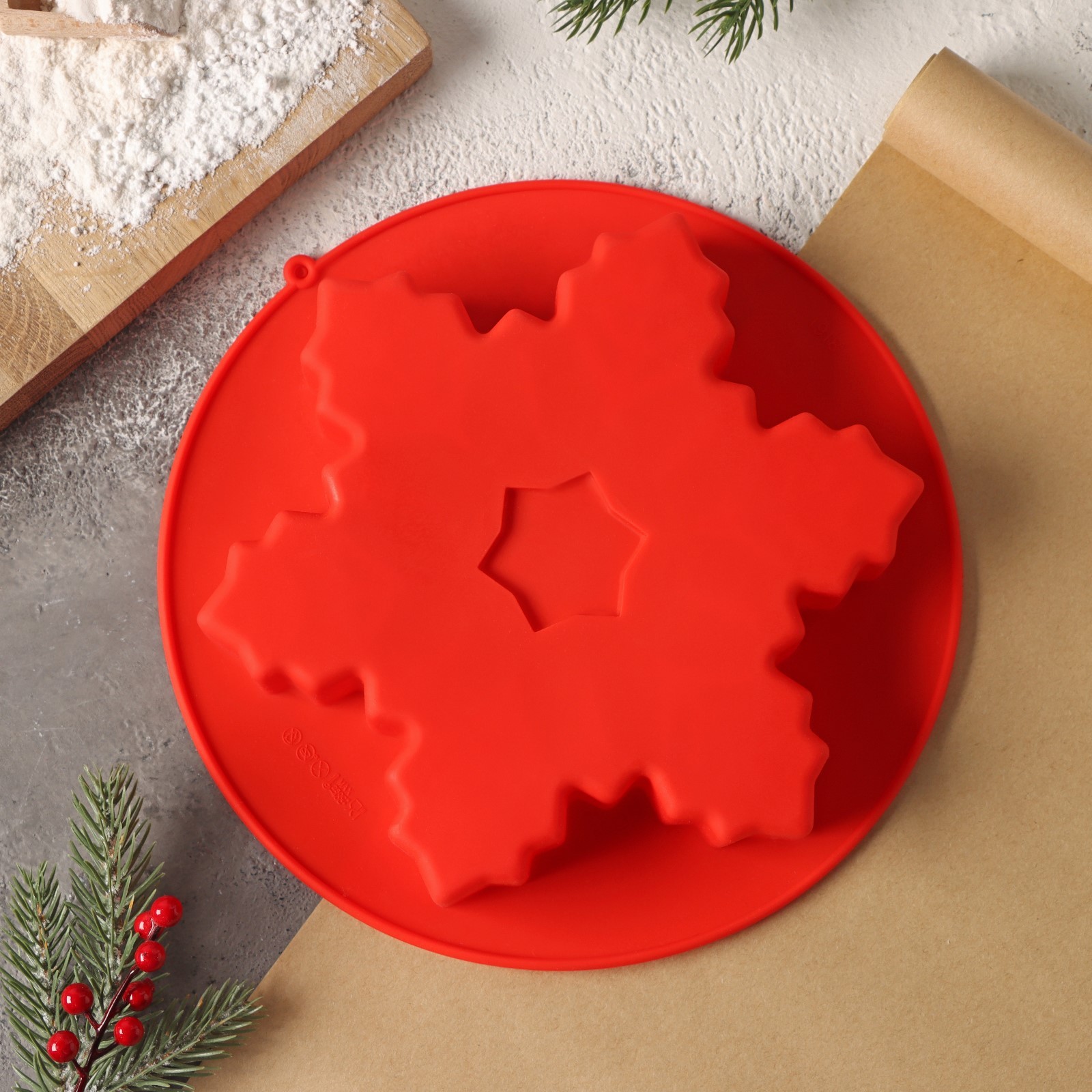 Форма силиконовая для выпечки доляна «снежинка», 23x3,5 см, цвет красный. Цвет: Красный Форма: Фигурная Количество ячеек: 1 Фасовка, шт.: 10 Крышка: Нет Материал: Силикон Тип покрытия: Без покрытия Ячейки: Нет Наличие палочек для форм: Нет Тип формы: Для коржей Тип формы: Для пирогов Разъёмная форма: Нет Съёмное дно: Нет Можно мыть в посудомоечной машине: Да Форма: Фигурная  развернуть описание ▼