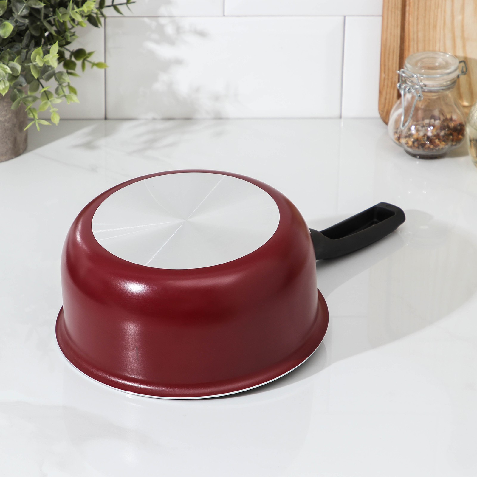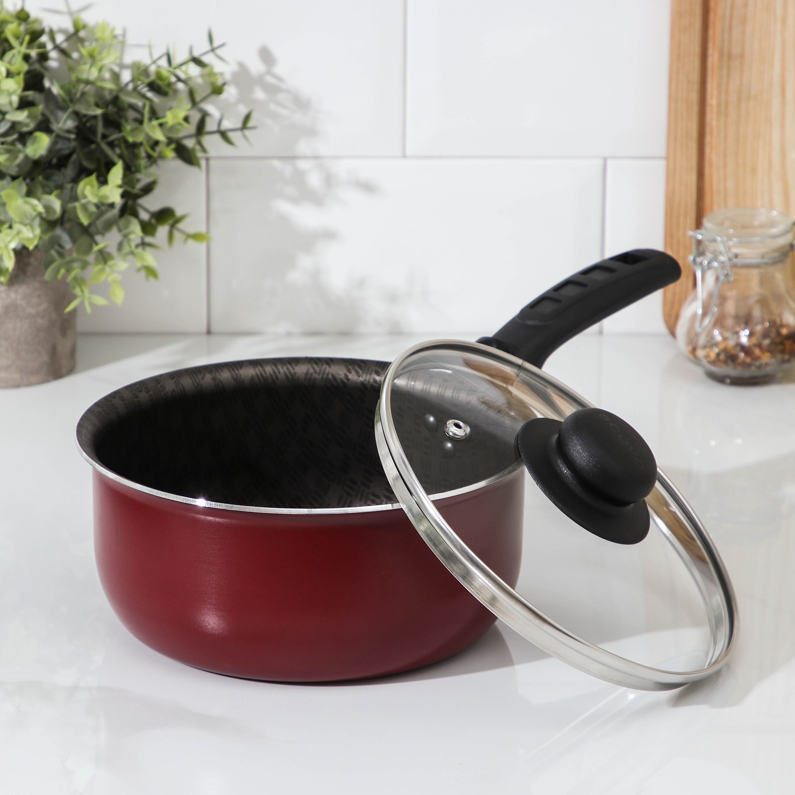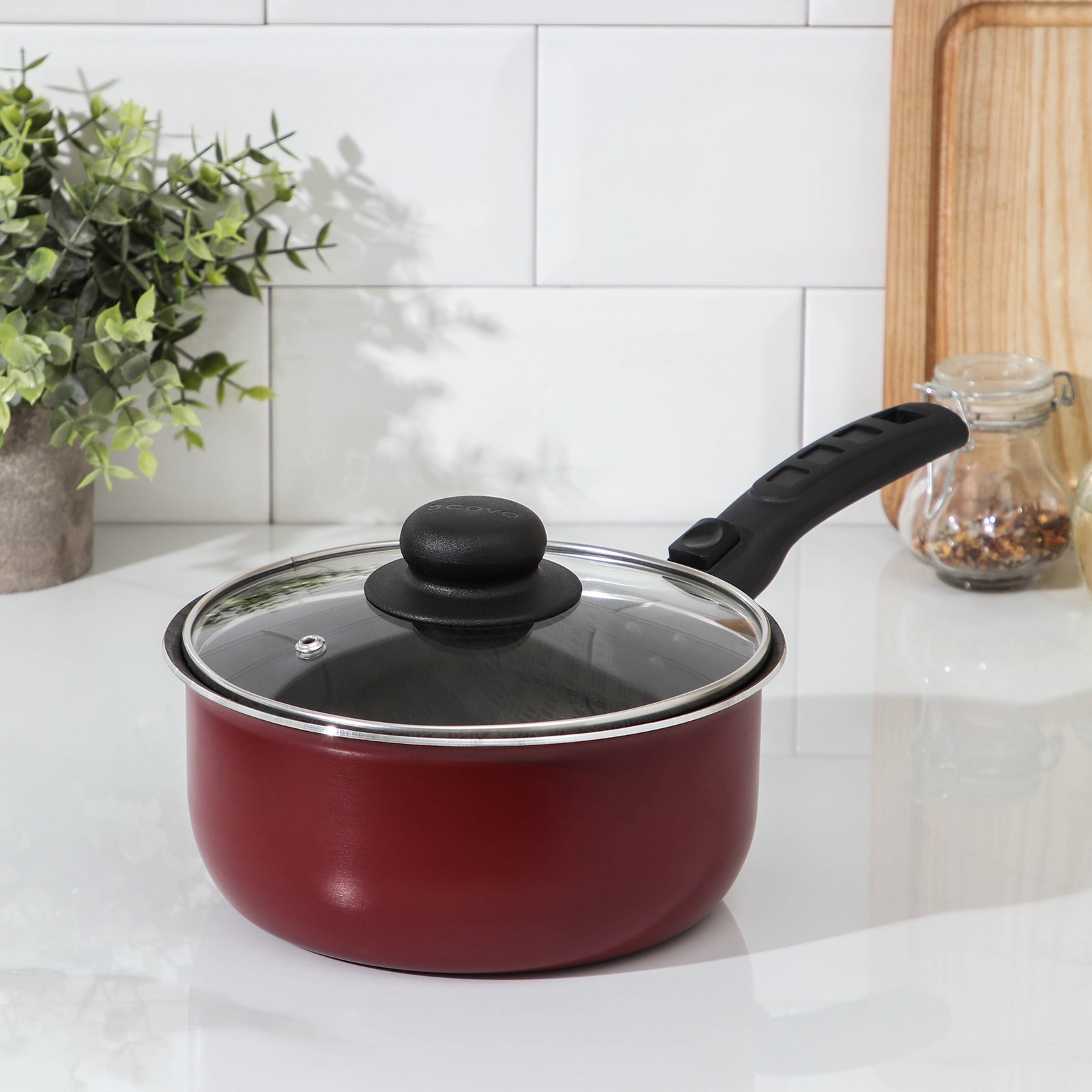 Ковш «альфа» 1,5 л, стеклянная крышка, пластиковая ручка, антипригарное покрытие, цвет красный