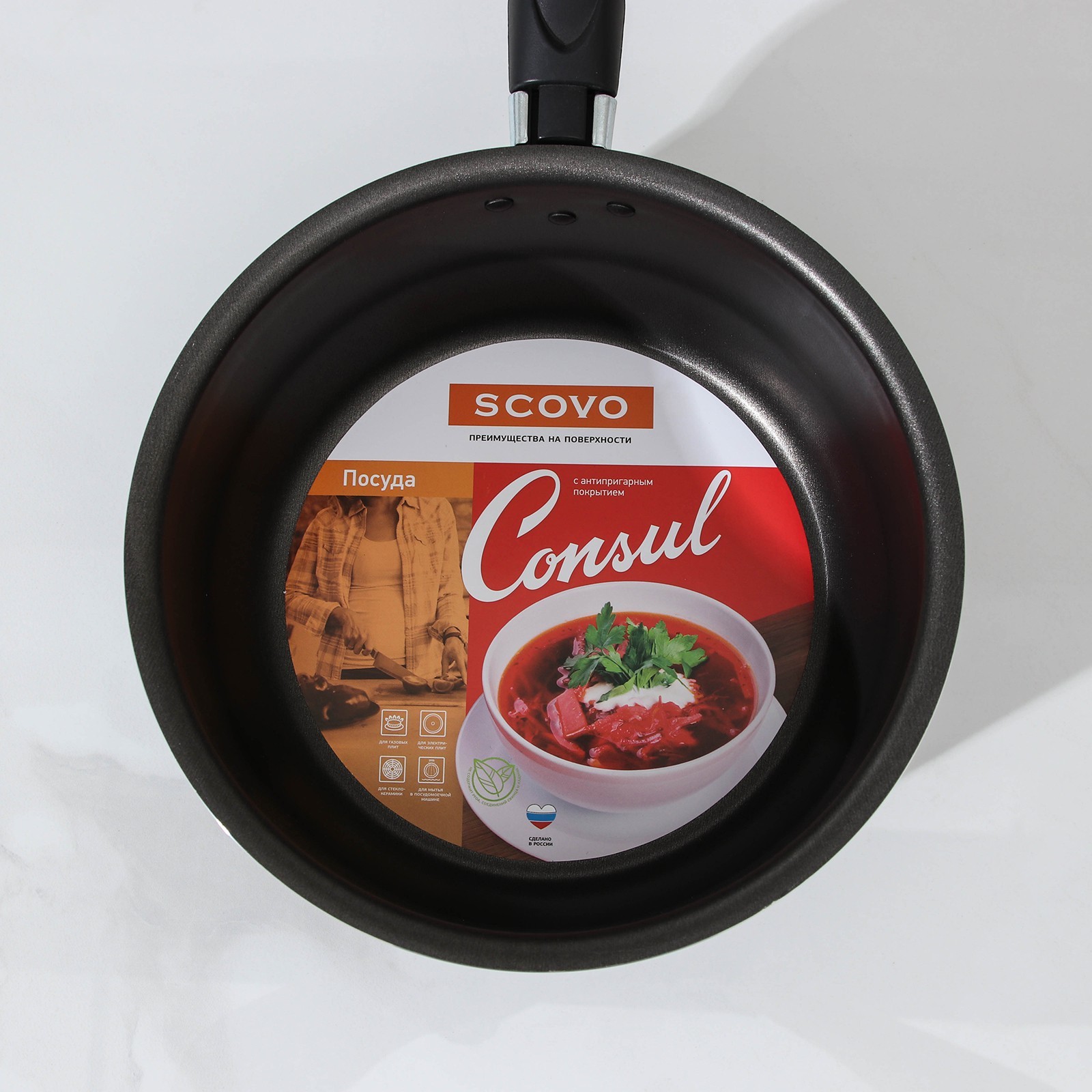 Ковш Consul, 2,7 л, стеклянная крышка, пластиковая ручка, антипригарное покрытие, цвет чёрный