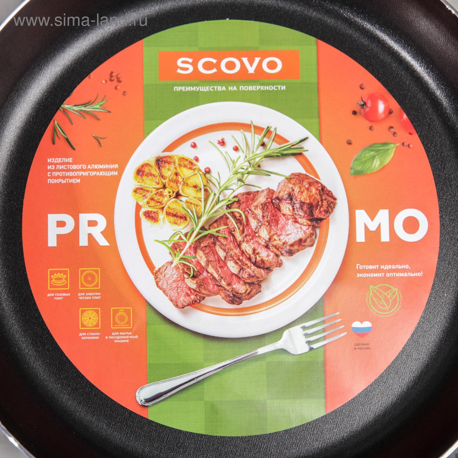 Сковорода Promo, D=26 см, стеклянная крышка, антипригарное покрытие, цвет чёрный