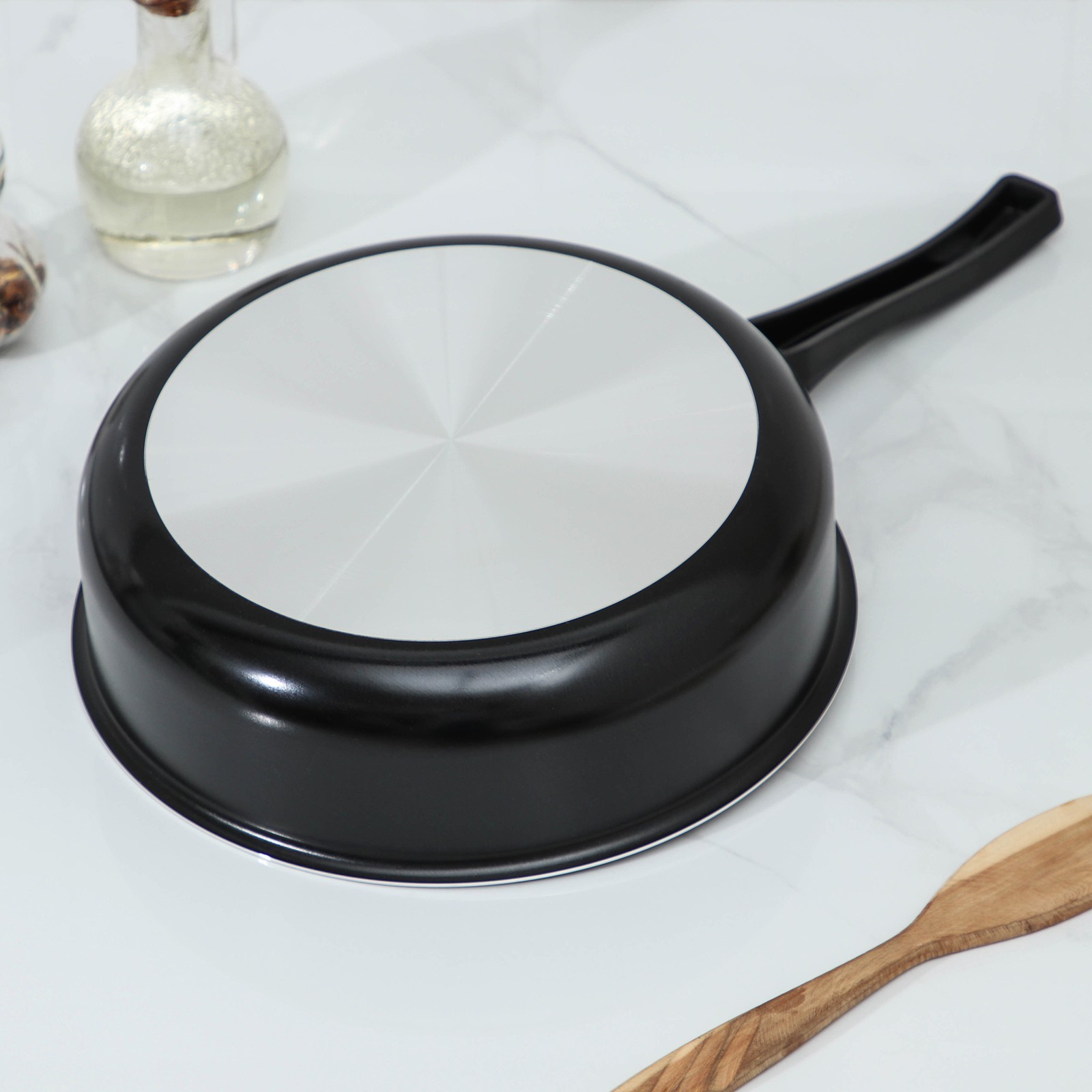 Сотейник Promo, 2,8 л, D=24 см, стеклянная крышка, пластиковая ручка, антипригарное покрытие, цвет чёрный