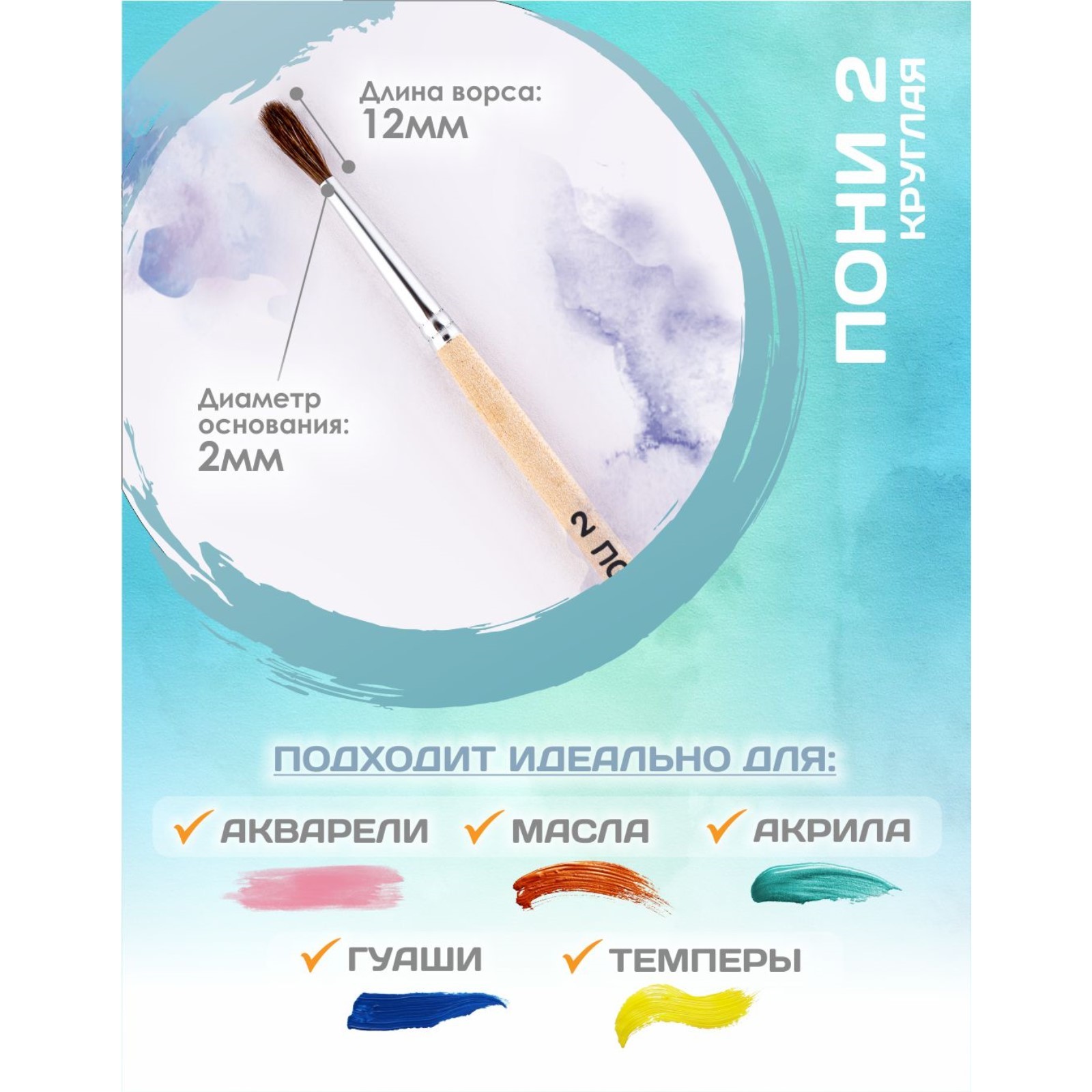 Кисть для рисования, пони круглая № 2 (диаметр обоймы 2 мм; длина волоса 12 мм), деревянная ручка, Calligrata