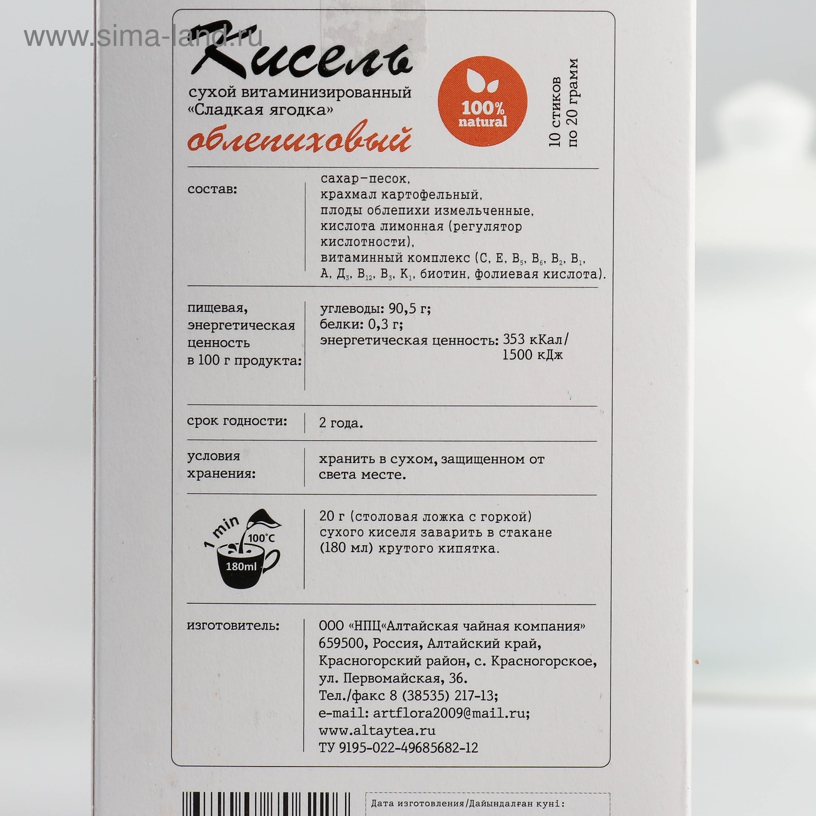 Кисель сухой витаминизированный «алтайфлора» в стиках, облепиховый, 20 г