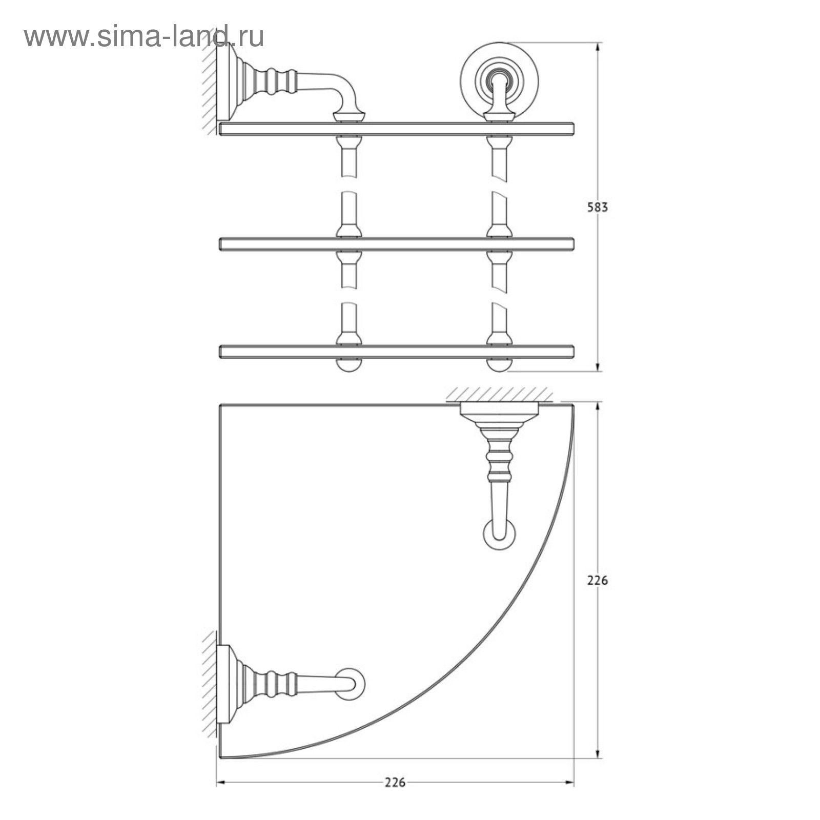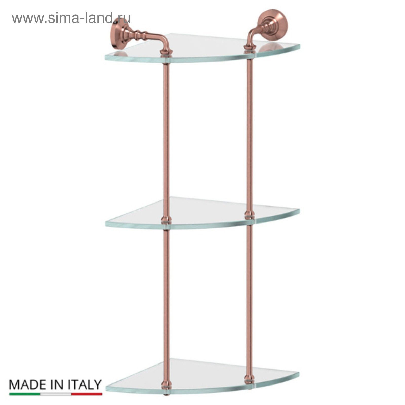 Угловая полка трёхъярусная, ширина 23 см, стекло, античная медь