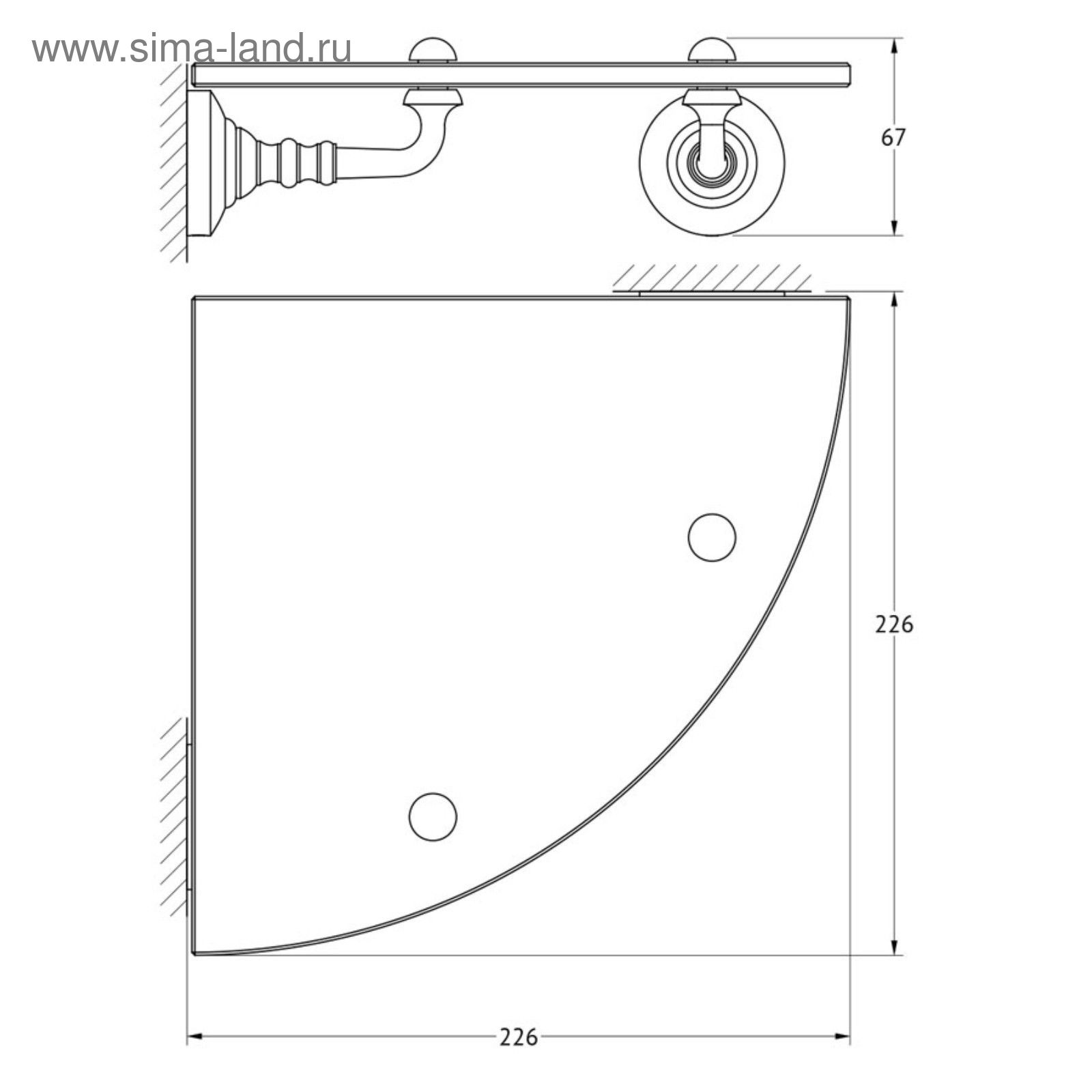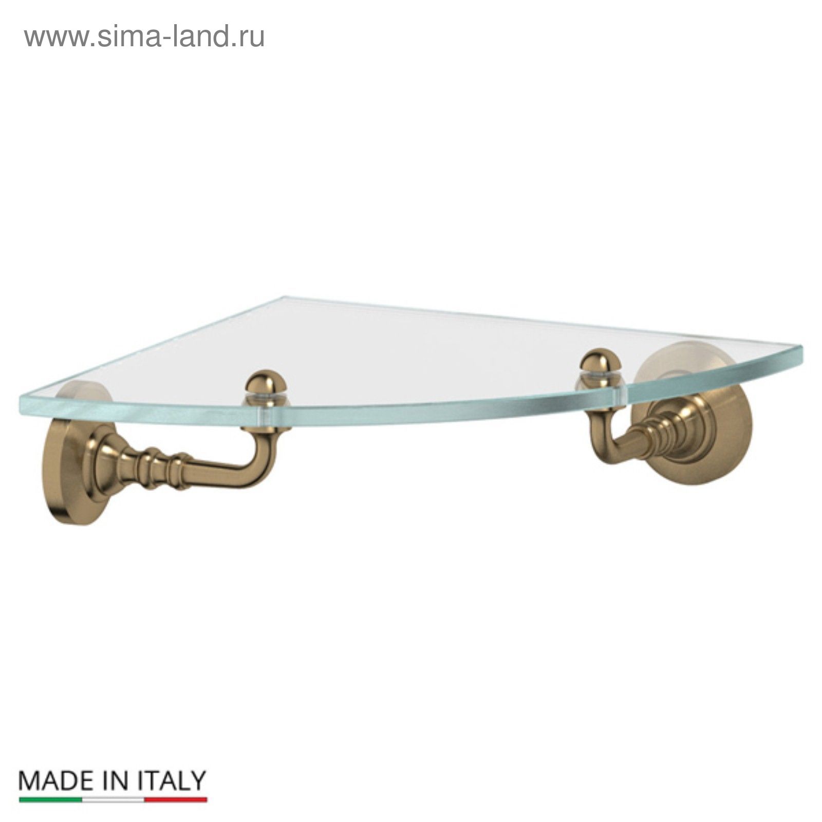 Угловая полка с держателями, ширина 22 см, стекло, античная бронза