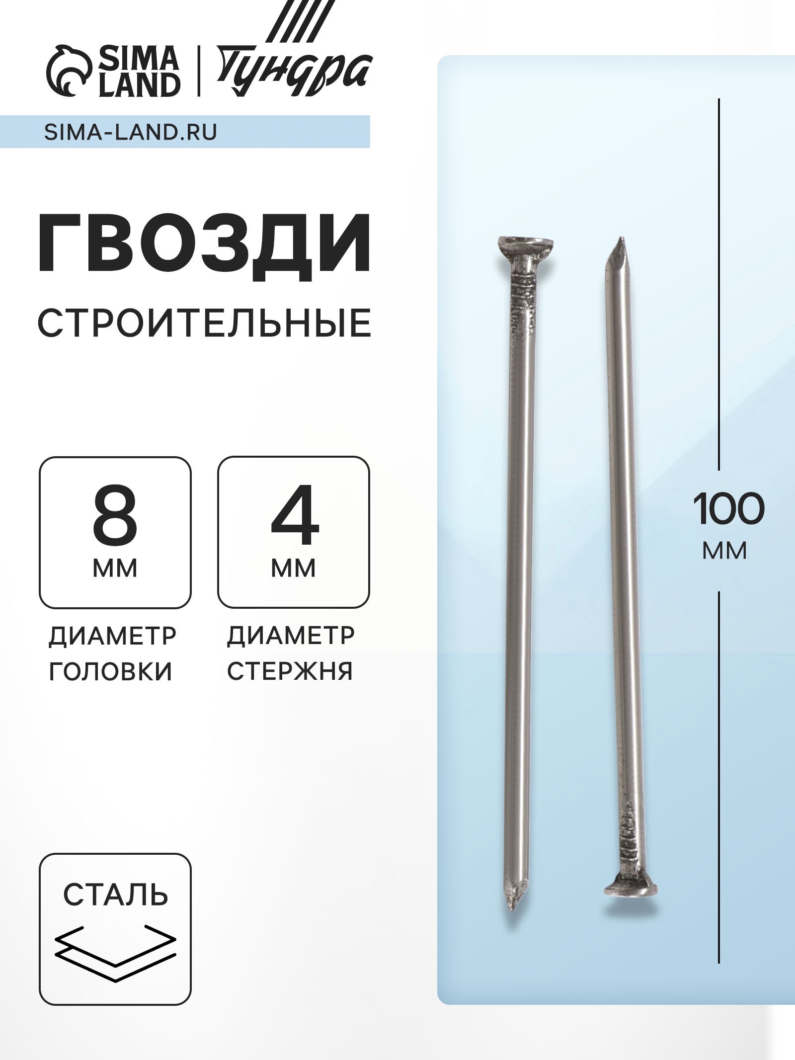 Гвозди тундра, строительные, гост 4028-63, без покрытия, 4 100 мм, 5 кг