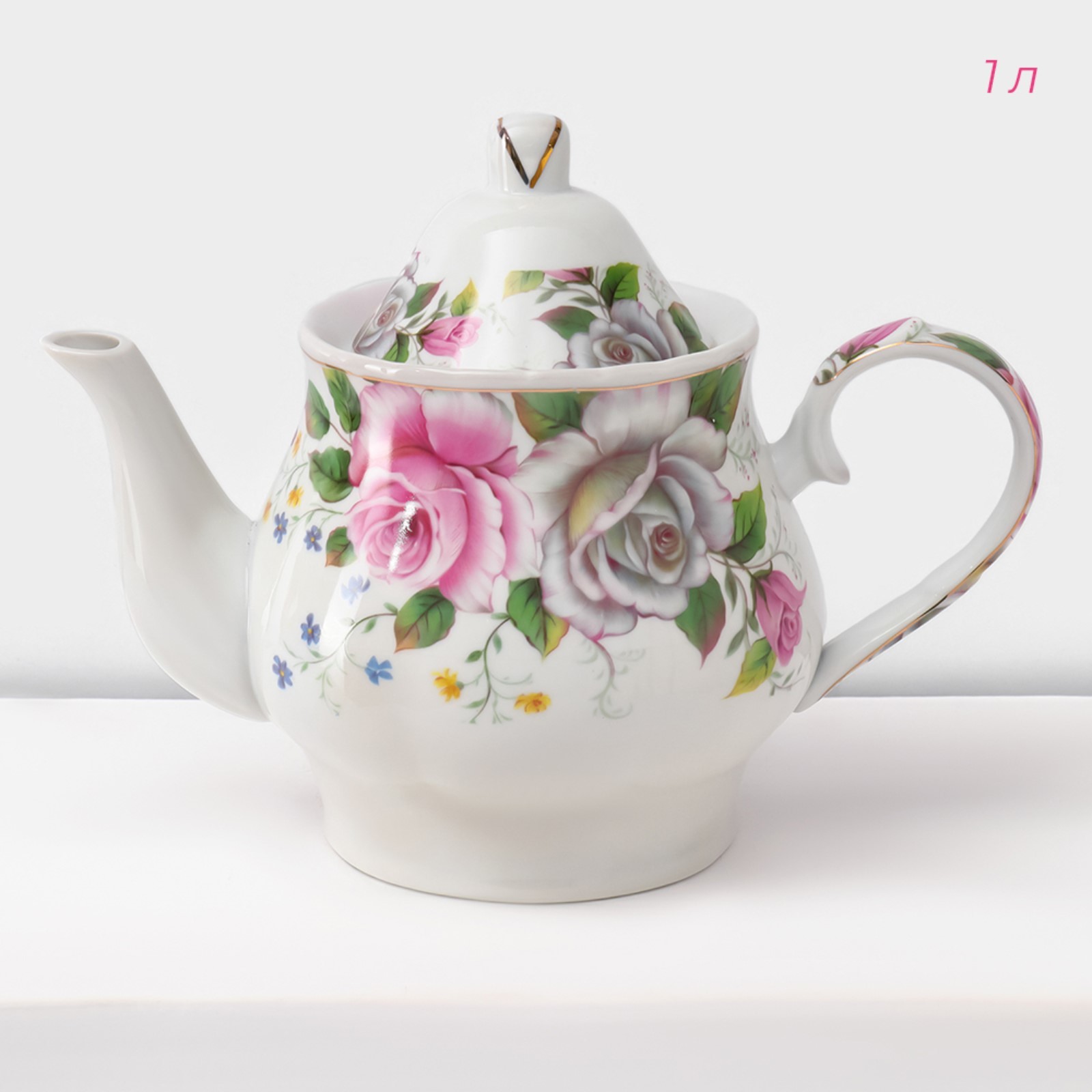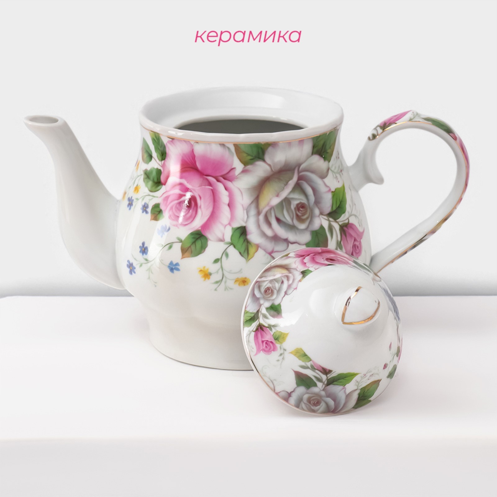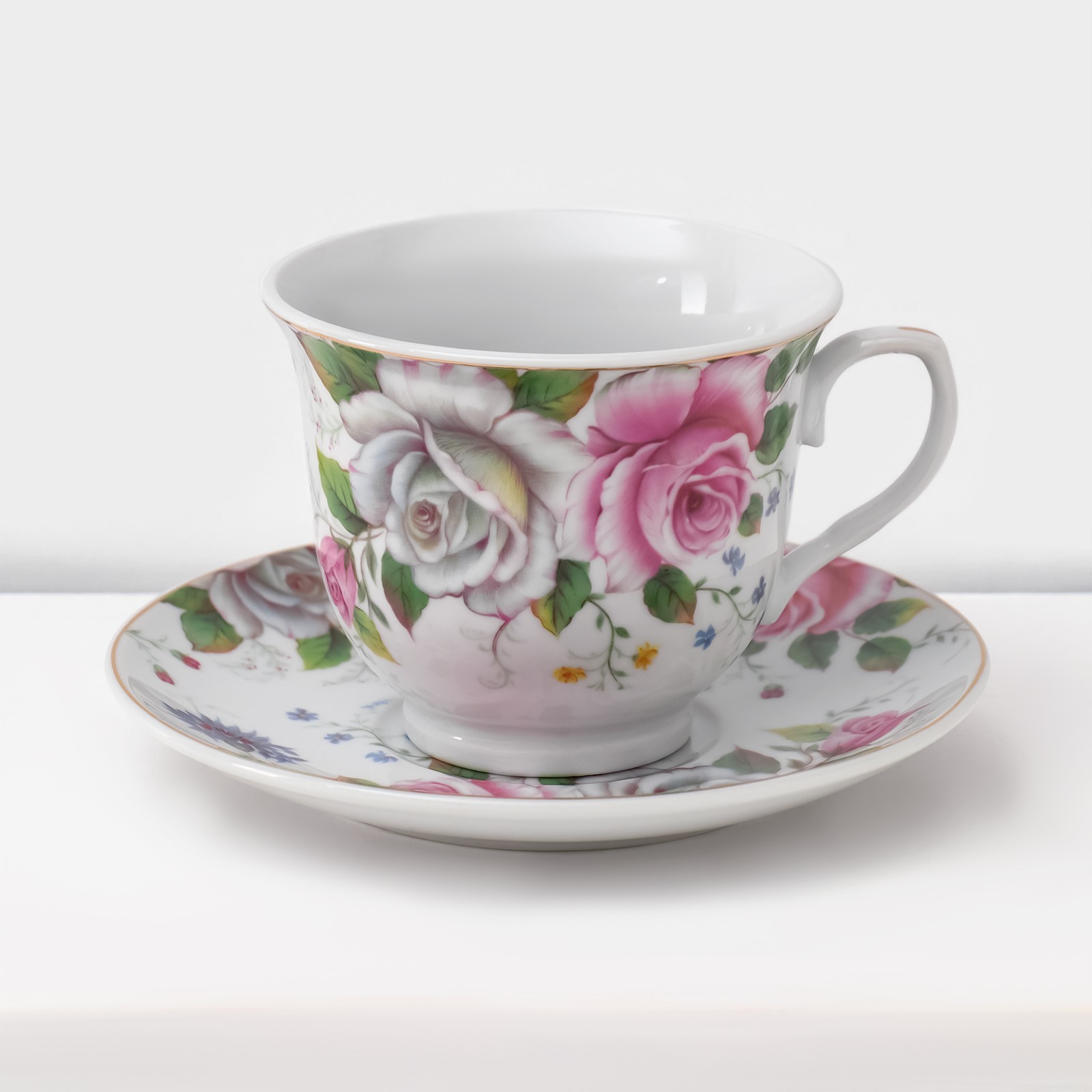 Сервиз керамический чайный на металлической подставке доляна «томная роза», 13 предметов: 6 чашек 230 мл, 6 блюдец D=14,2 см, ча