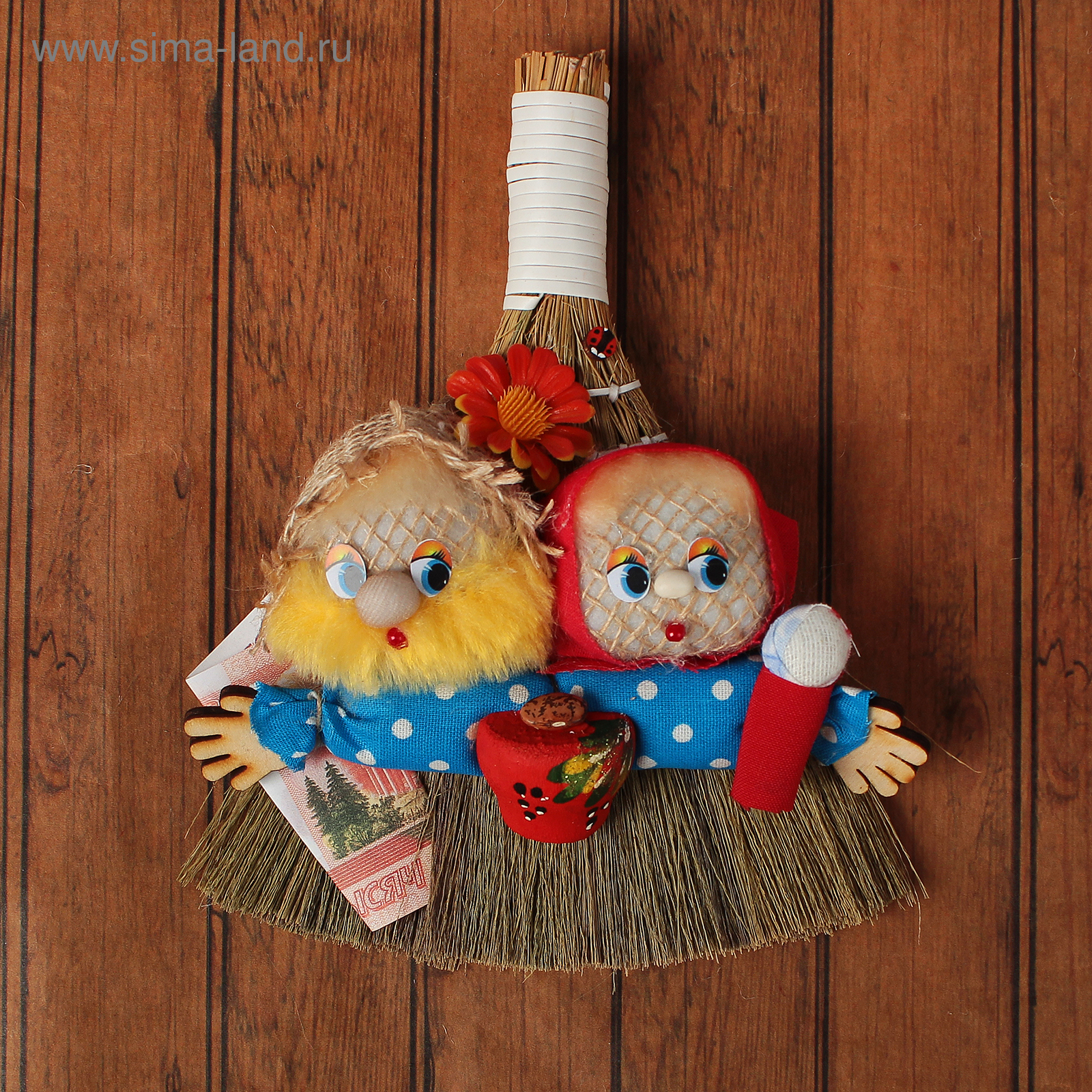 Веник, направленный вниз, выметает ссоры из избы, направленный вверх, — к деньгам. Лапти символизируют домашний уют, семейное счастье. Мешковина, мешок — изобилие и благосостояние. Подкова — концами вверх защищает дом от злых сил, концами вниз - привлекает благополучие и достаток. Ложка — загребает в дом добро. Домик, хата — единство и крепость семьи. Чеснок — отгоняет нечистую силу. Злаки, бобовые — символ достатка, сытой жизни. Монетка — успех в делах.