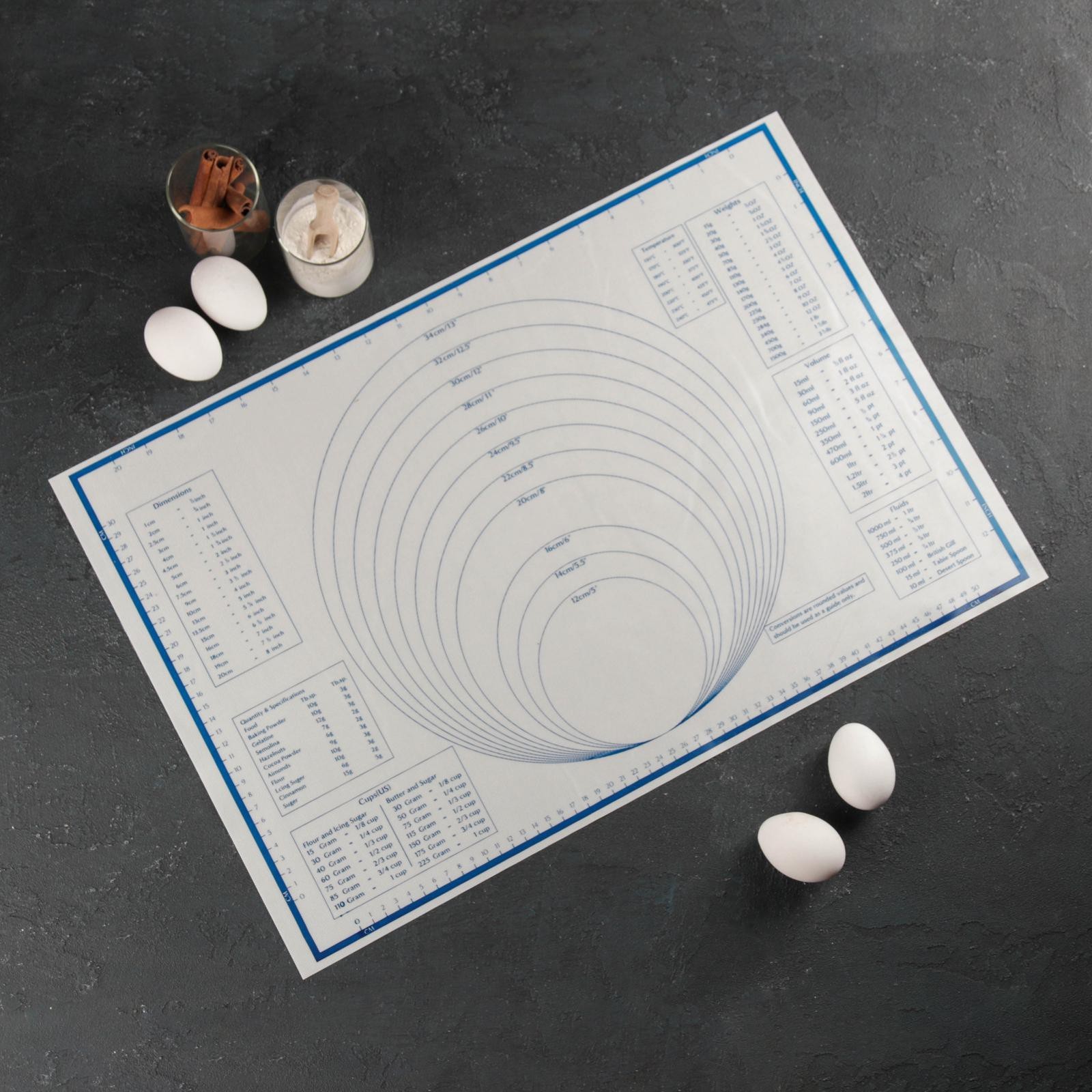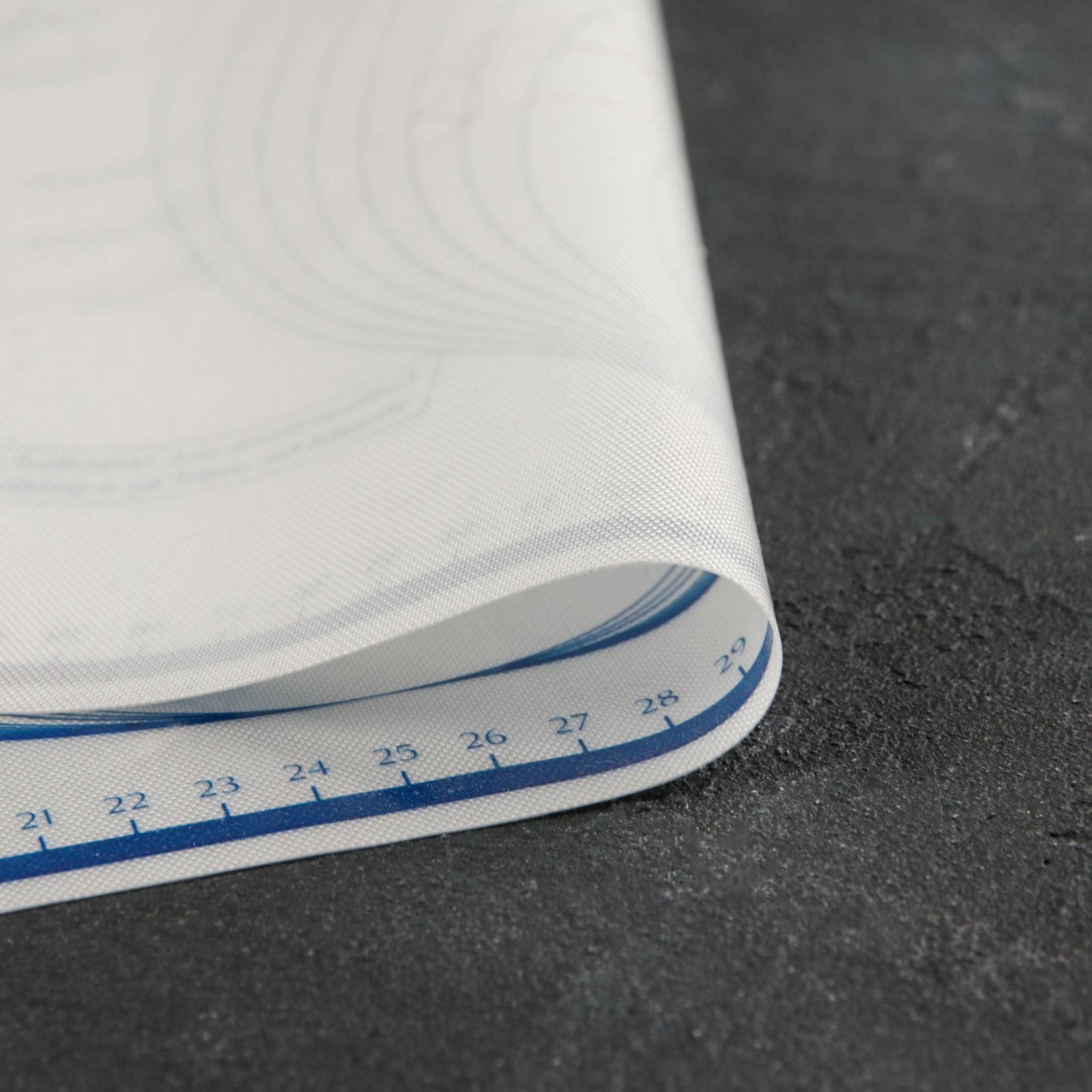 Коврик для выпечки и раскатки теста с разметкой, армированный, силикон, 59x38.5 см, белый. Коврик представляет собой стеклоткань, пропитанную пищевым силиконом. Приспособление отлично подходит для приготовления любимой выпечки. Выложите тесто на коврик, раскатайте и поставьте в духовку вместе с изделием. Особенности: не требует использования масел или спреев для смазывания от пригорания;легко очищается, в том числе в посудомоечной машине;сворачивается для компактного хранения. Резать, измельчать и шинковать продукты на коврике не советуется. Также коврик рекомендован для профессионального применения. Можно использовать изделие как подложку для обычной и глубокой заморозки. Выдерживает температуру от –40 до +260 °C. Не впитывает запахов. Цвет: Белый Форма: Прямоугольная Длина, см: 59 Ширина, см: 38.5 parts count: 0 Материал: Силикон Материал: Стекловолокно Текстура: Гладкая Форма: Прямоугольник Особенности: Армированный Особенности: С разметкой  развернуть описание ▼