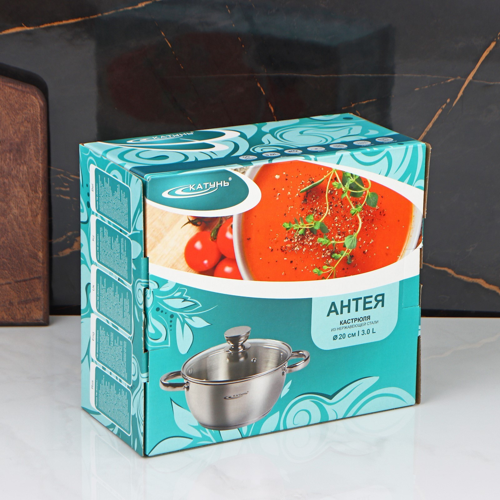 Кастрюля «антея», 3 л, D=20 см, капсульное дно, стеклянная крышка, индукция