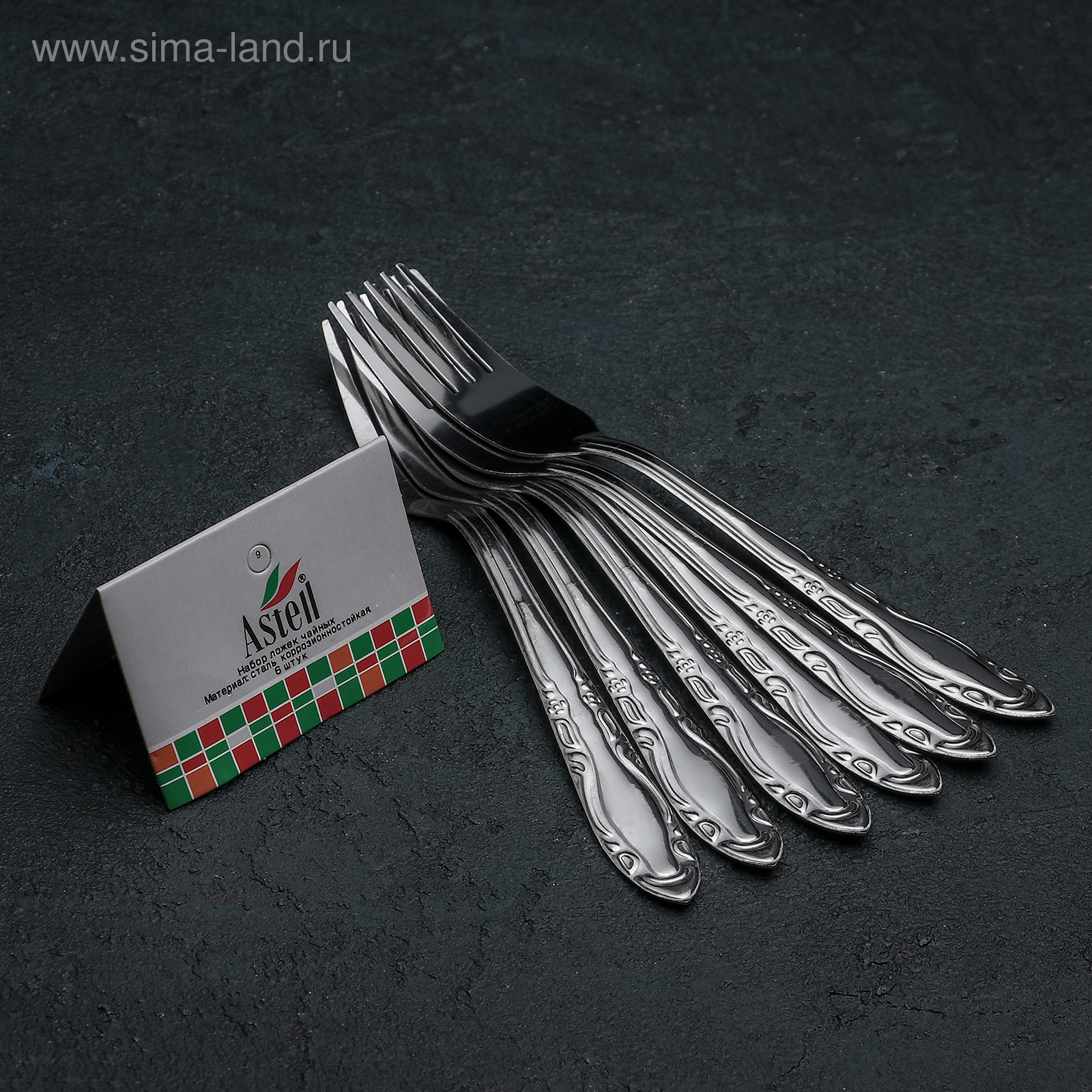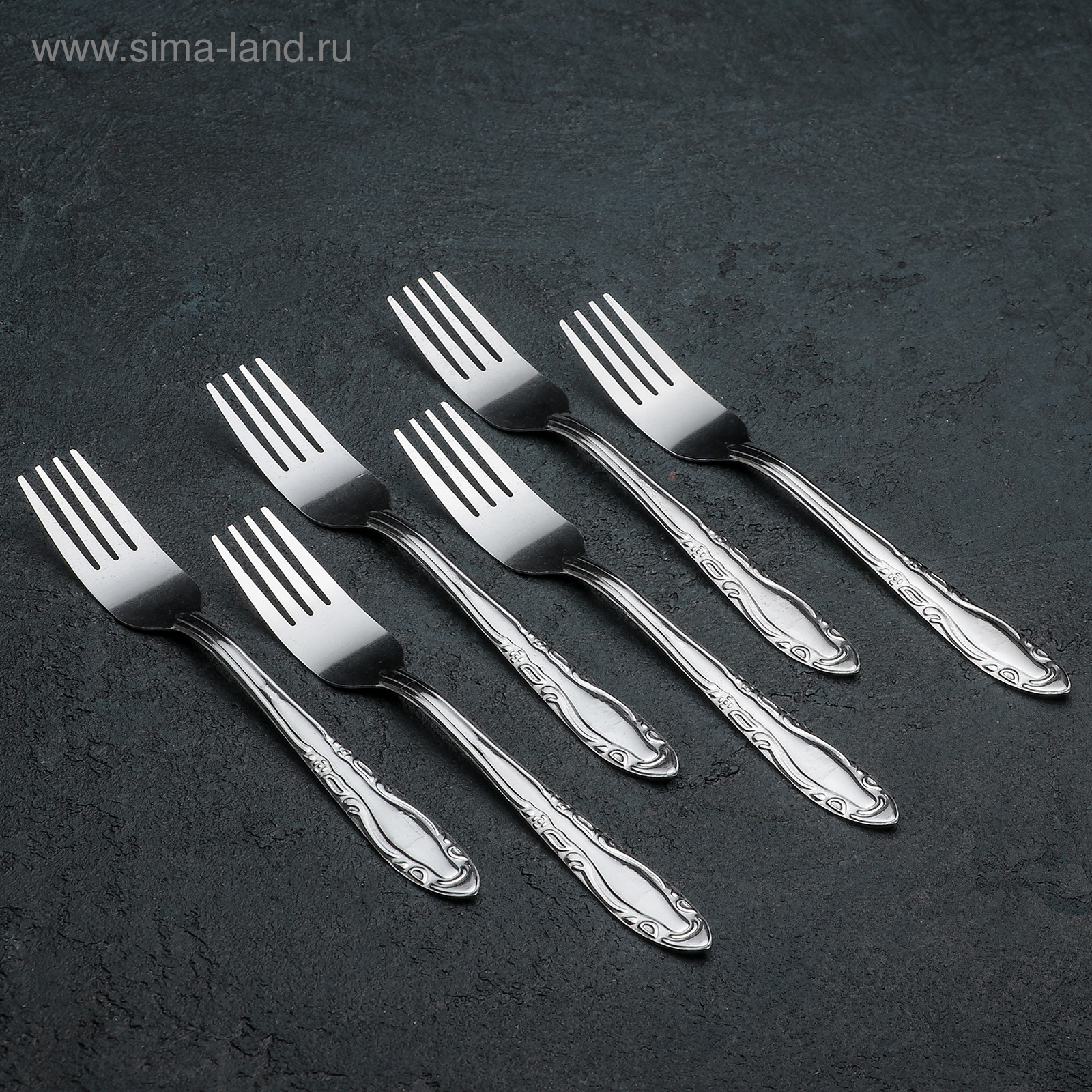 Набор столовых вилок «общепит», H=19 см, толщина 0,7 мм, 6 шт, цвет серебряный