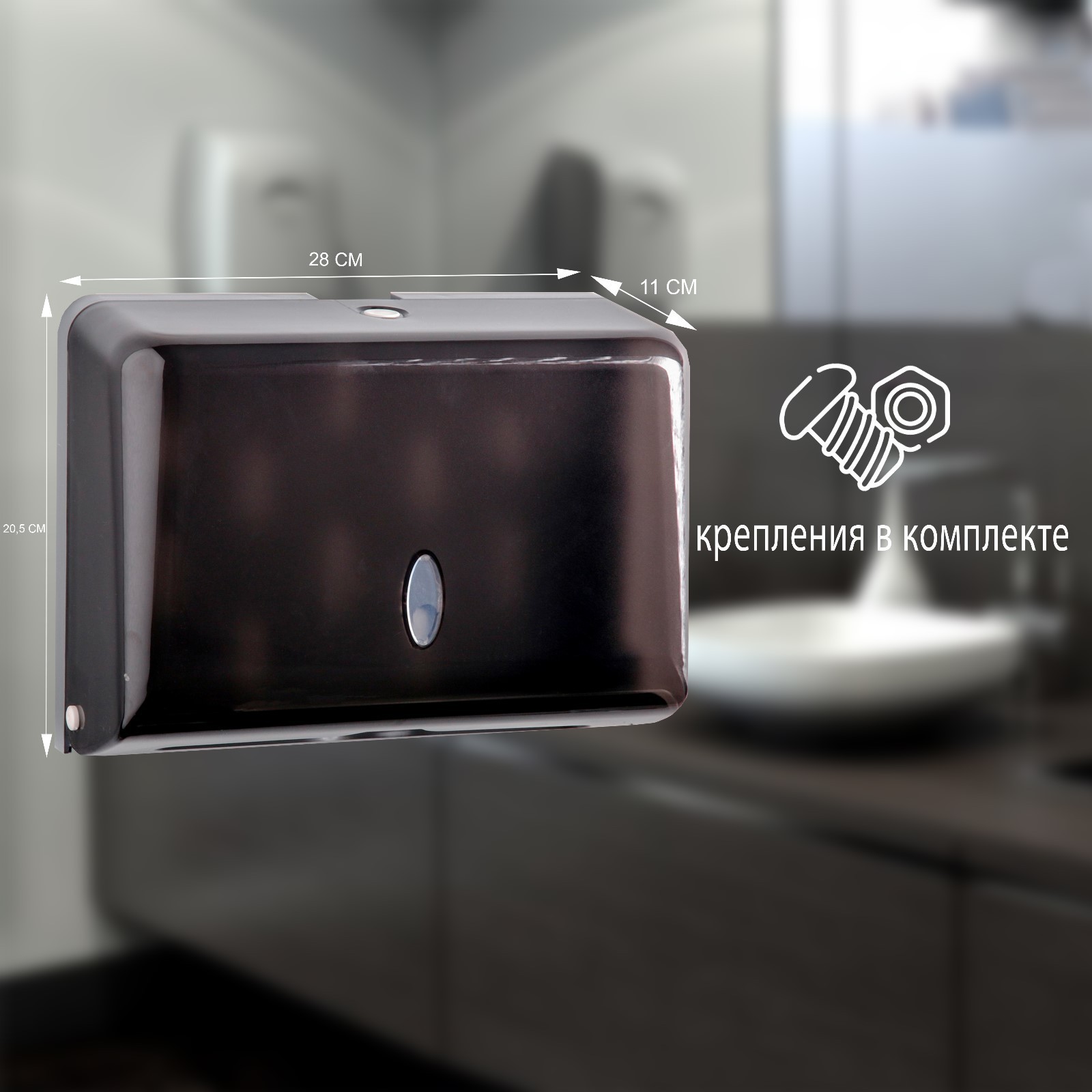 Диспенсер для бумажных полотенец в листах, пластиковый (макс. 200 шт), 27x11x20,5 см, цвет чёрный