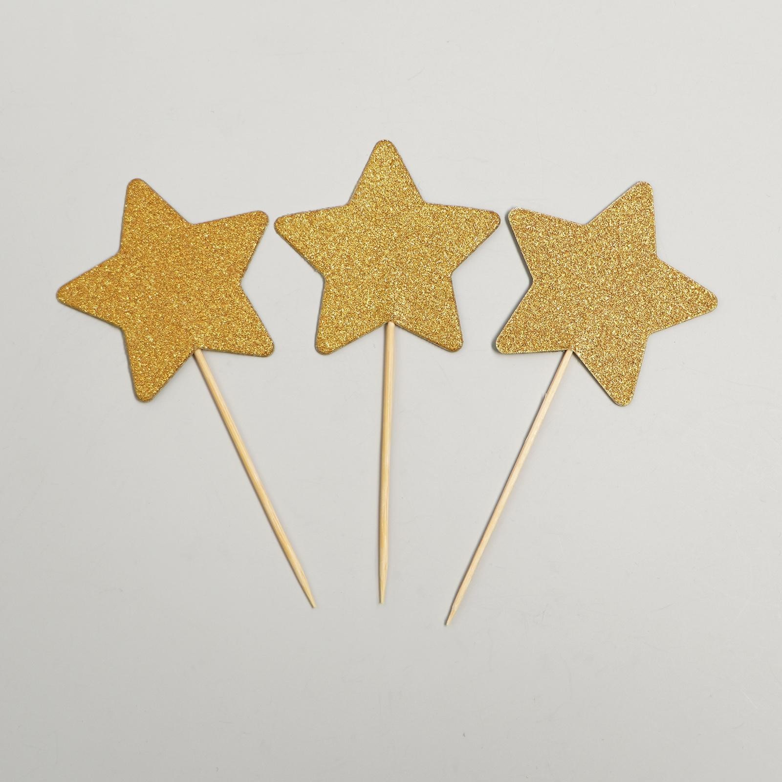 Шпажки «звезда», набор 12 шт., цвет золотой