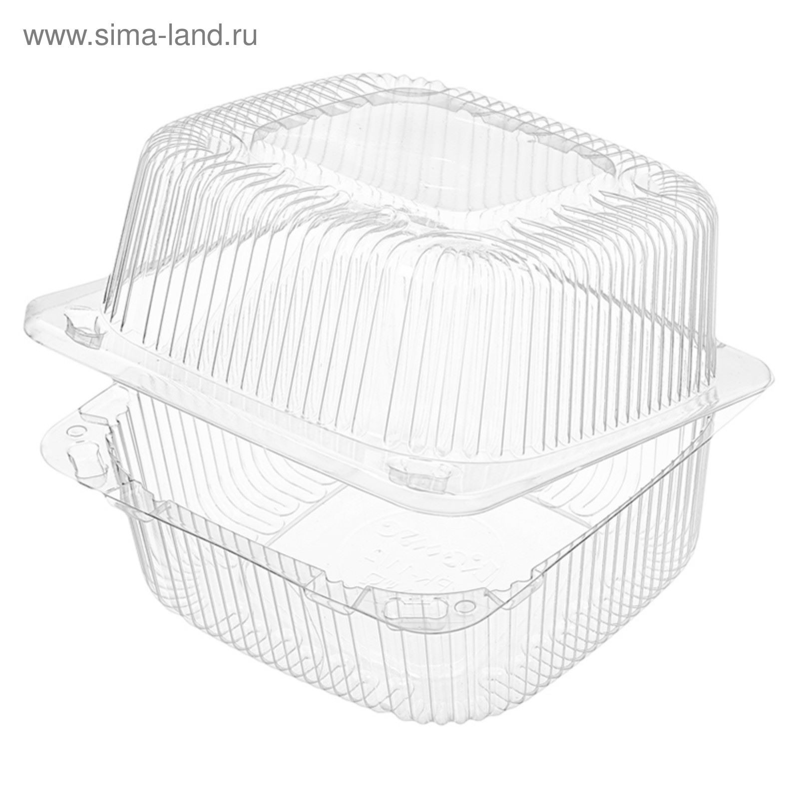 Контейнер с неразъёмной крышкой рк-11/2, квадратный, цвет прозрачный, размер 13,2 х 13,1 х 9,3 см, объём 1,07 л. Контейнер предназначен для фасовки кондитерских изделий: пирожных, нарезных пирогов и полуфабрикатов.