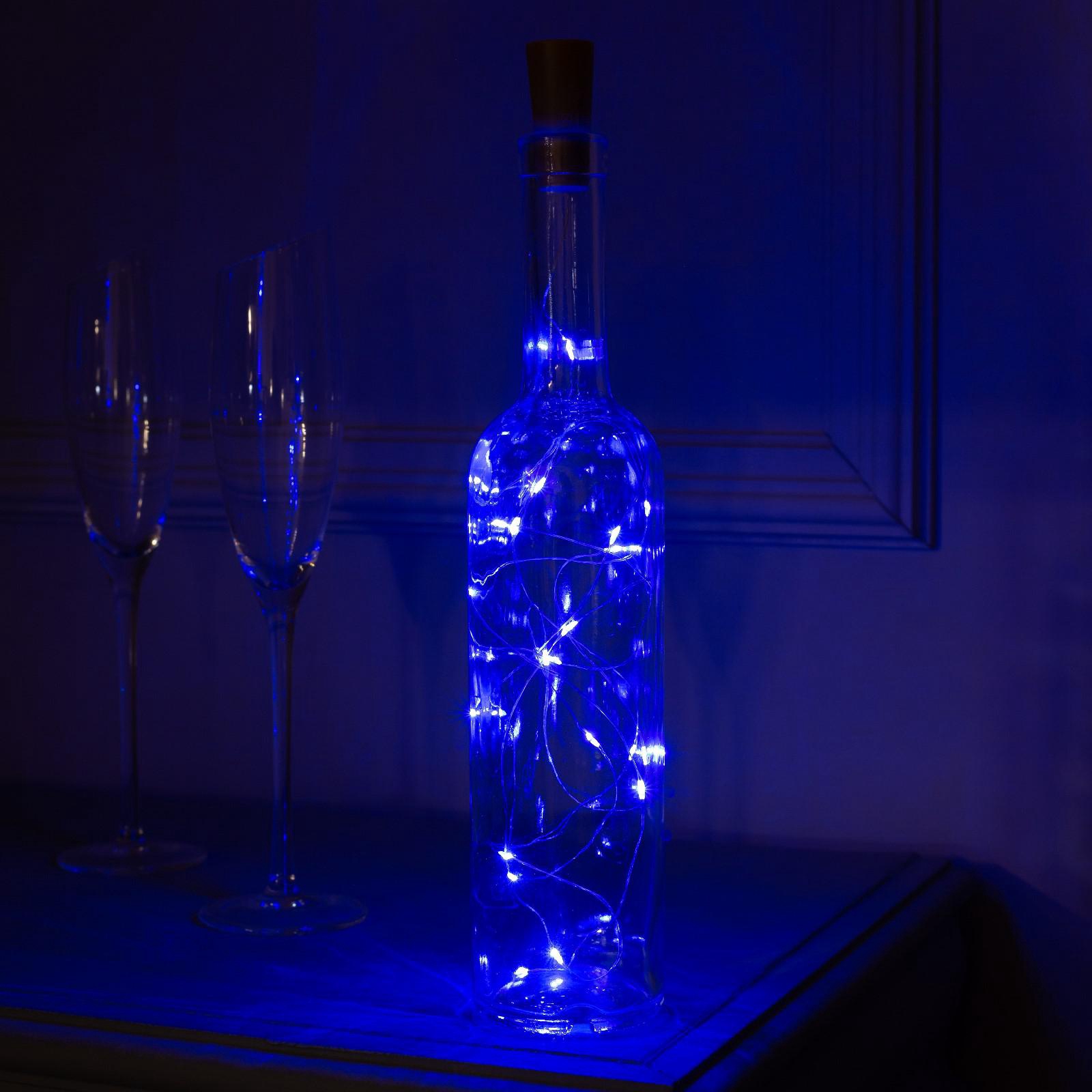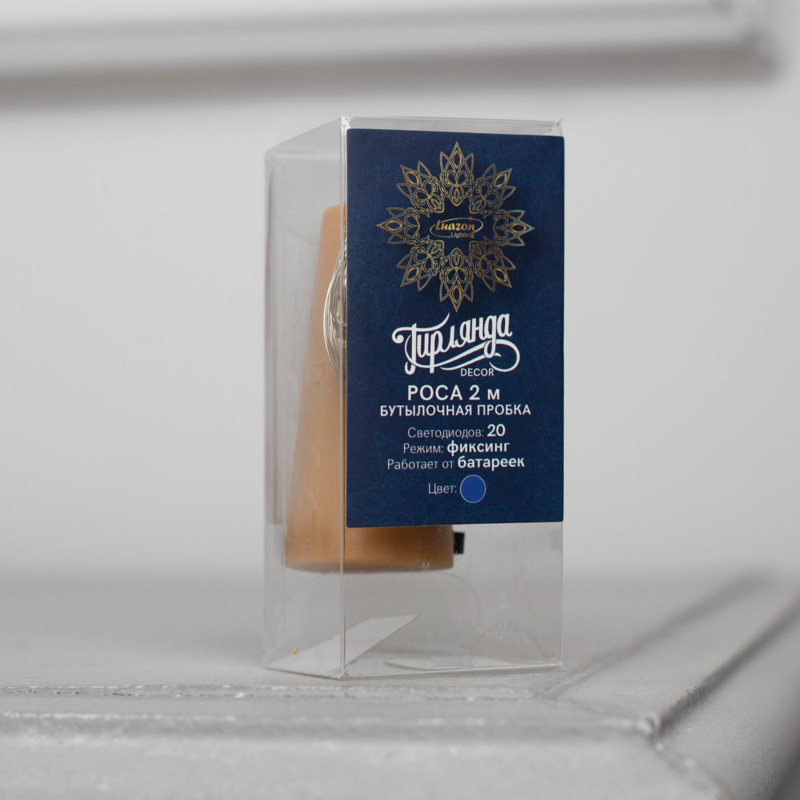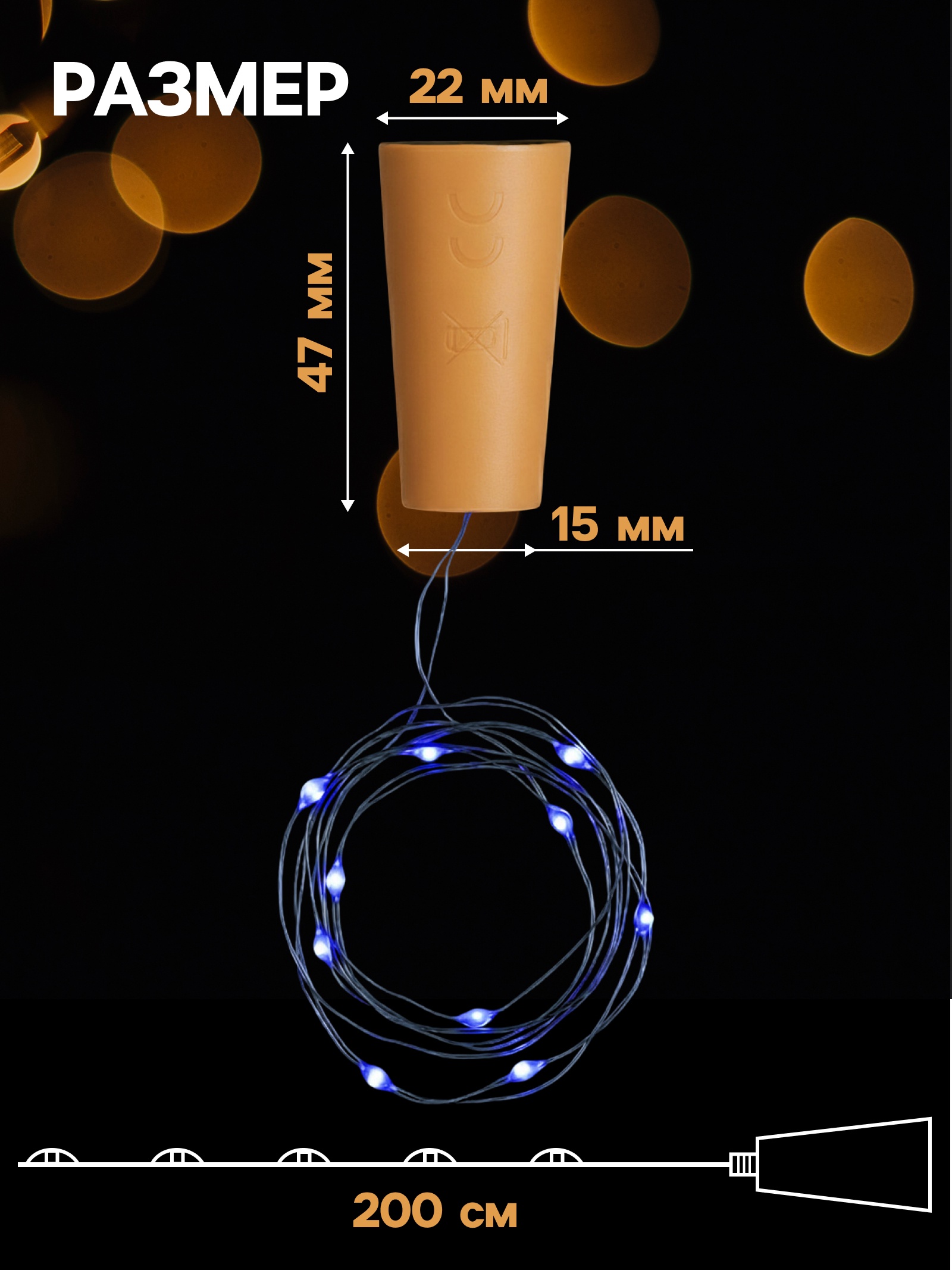 Гирлянда «нить» 2 м роса с пробкой, Ip20, серебристая нить, 20 Led, батарейки Lr44х3 (в комплекте), свечение синее