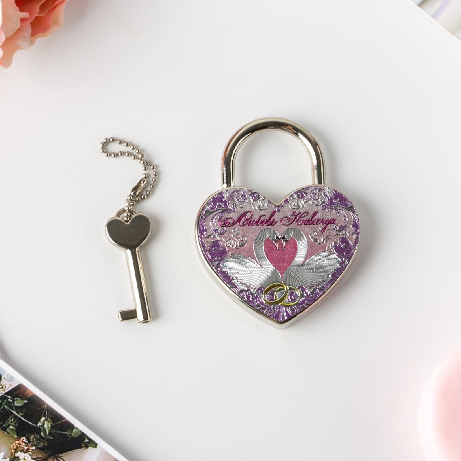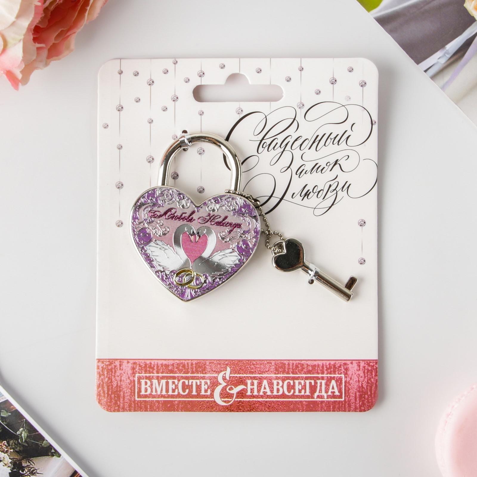 Замок свадебный с ключом «любовь навсегда».. Замок для торжественной свадебной традиции - это символ любви. Навесной замок любви на свадьбе становится символом нерушимого союза, заключенного влюбленными в этот день. По традиции замок вешается на мост, загадывается желание о счастливой семейной жизни, а ключи от него выбрасываются в реку, через левое плечо. Это делается для того, чтобы никто никогда не смог открыть этот замок и нарушить клятву, данную влюбленными. Свадебный замок можно повесить на мост по традиции или на дерево в специалных парках или аллеях молодожен, которые есть во многих городах. Замок навесной свадебный имеет в комплекте ключик, замок закрывается и открывается. Традиция закрывать замок на свадьбу объединяет сердца мужа и жены навсегда. Свадебный декоративный замочек будет отлично смотреться на фотосессии и видео. Цвет:Серебристый|Цвет:Сиреневый|Тематика праздника:14 Февраля|Тематика праздника:Свадьба|Адресат:Молодожёнам|Материал:Металл|Наличие ключа:Да|Возможность гравировки:Да|Страна:Китай  развернуть описание ▼