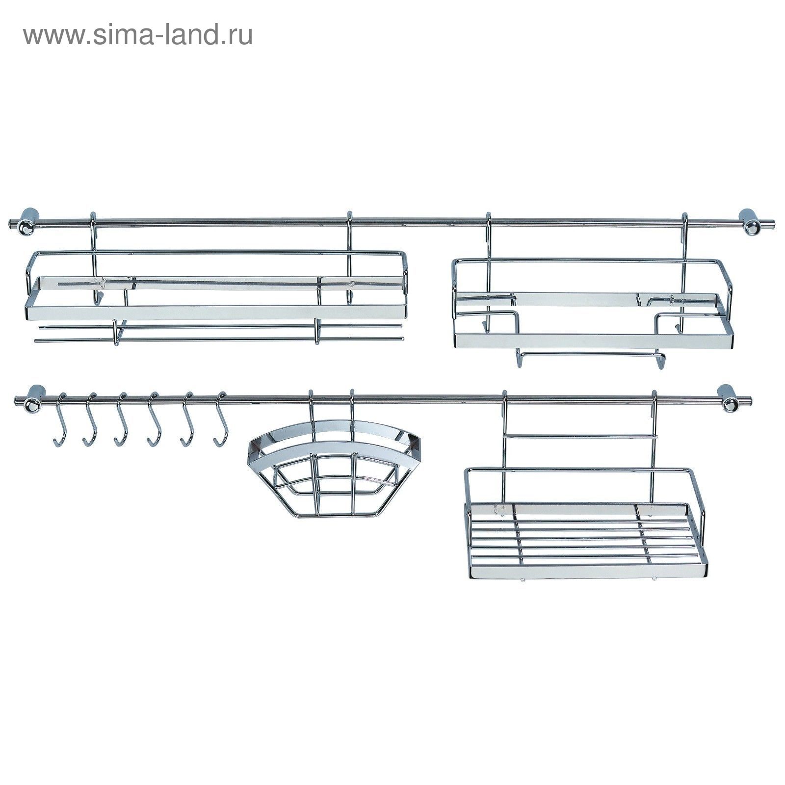 Набор рейлингов и предметов для кухни. Цвет: Хромированный В упаковке, шт.: 5 Материал: Нержавеющая сталь