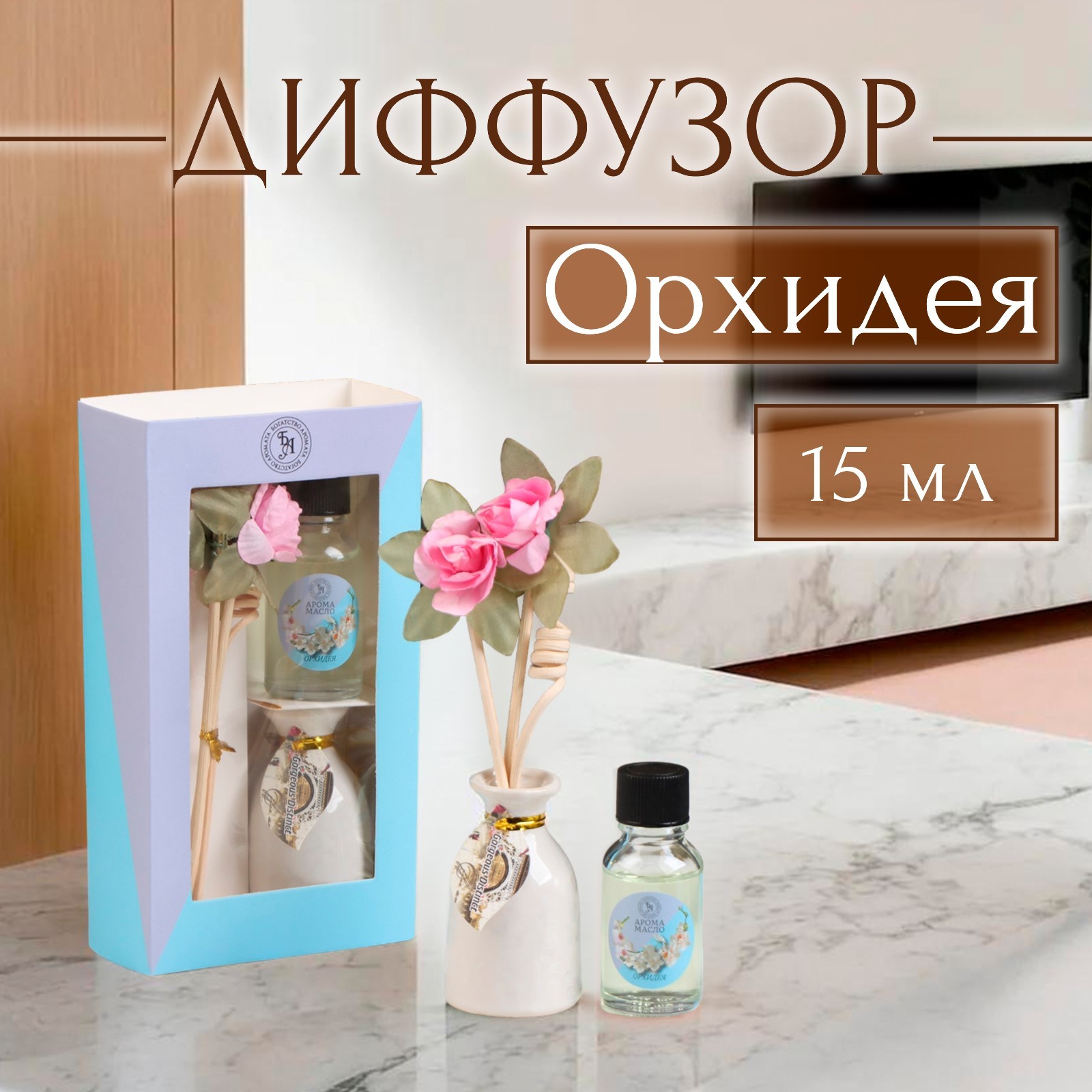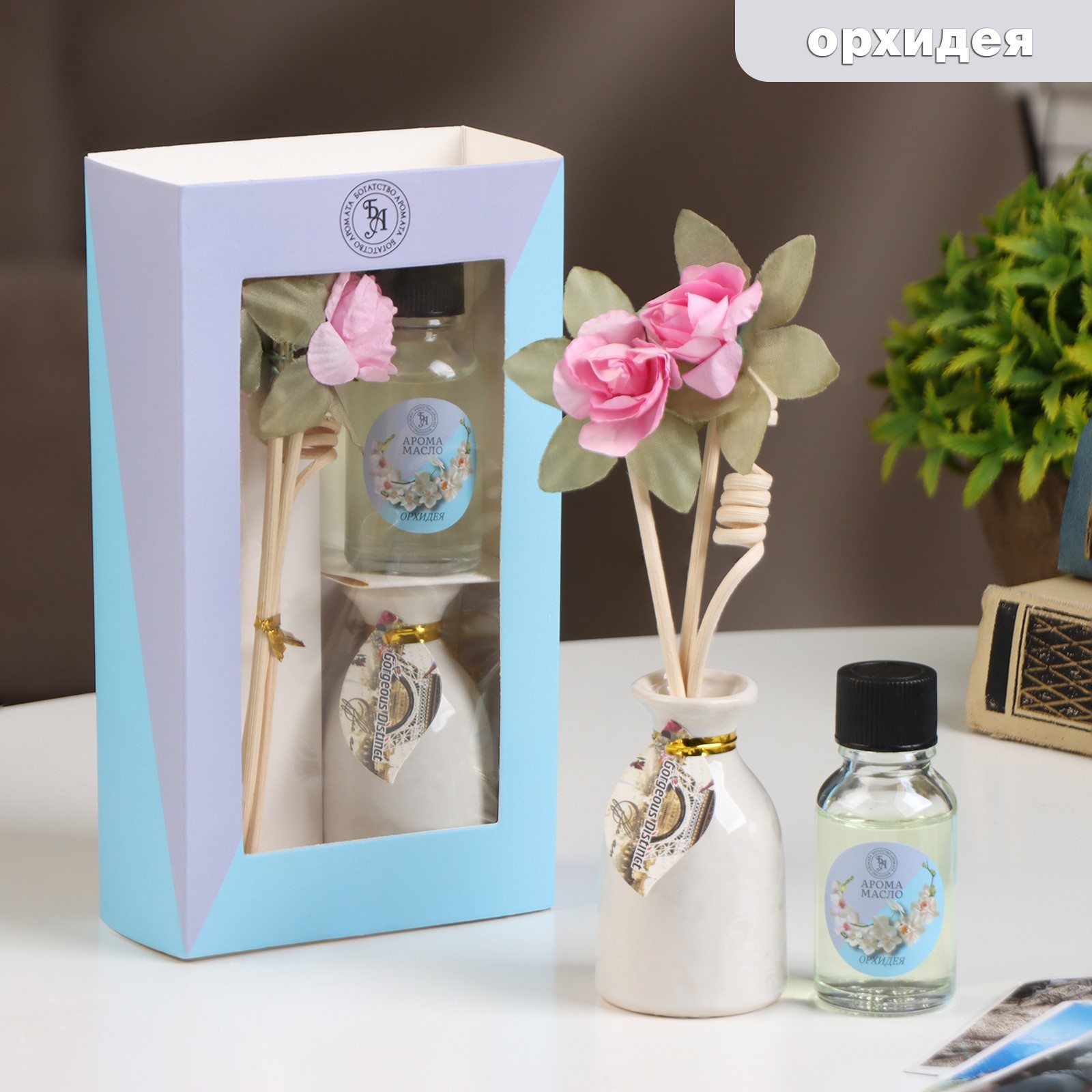 Набор подарочный с диффузором "ваза с цветком" орхидея, "богатство аромата"