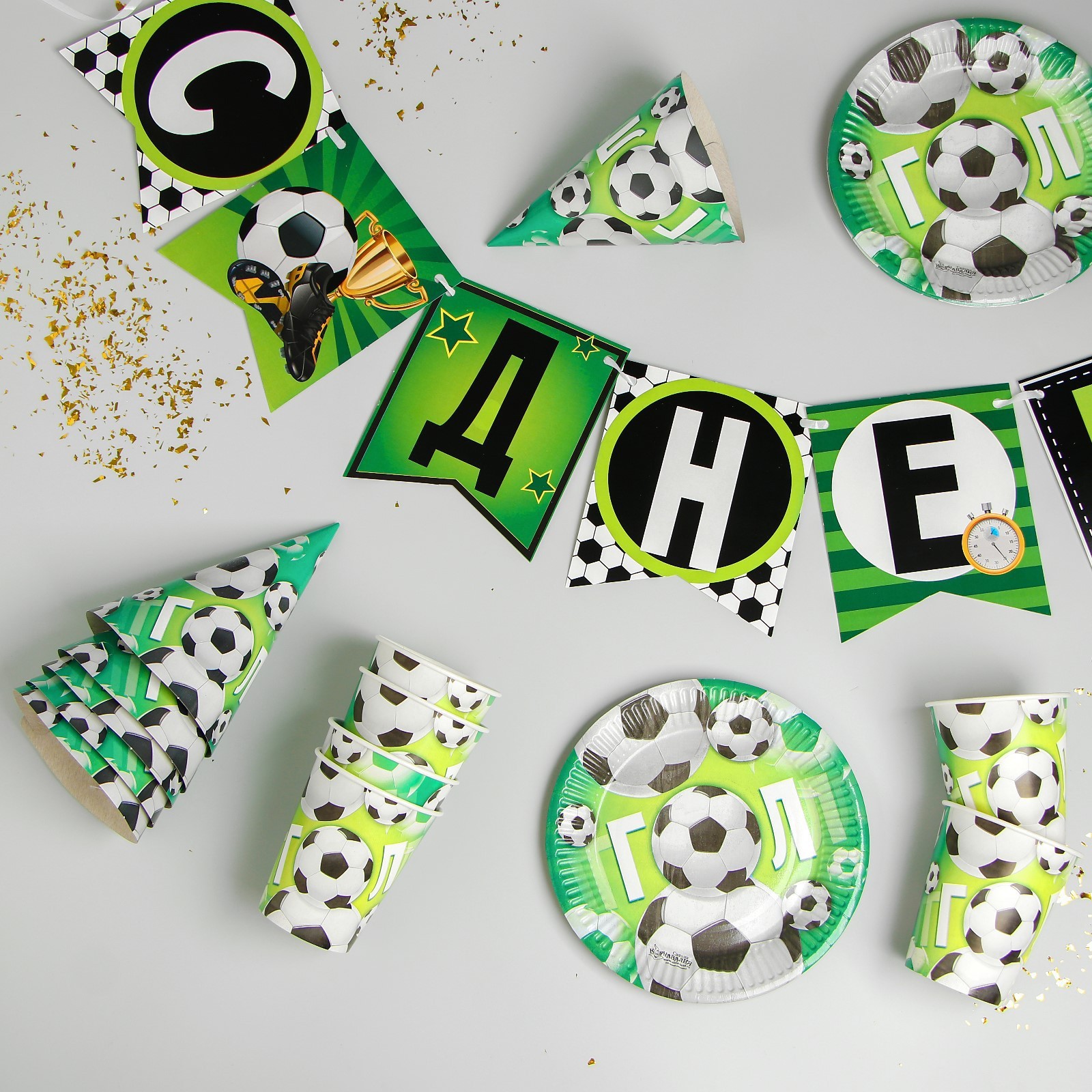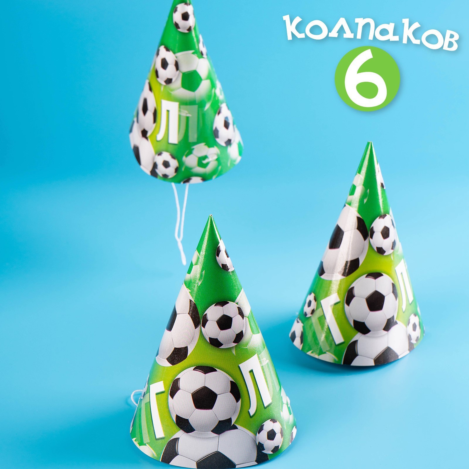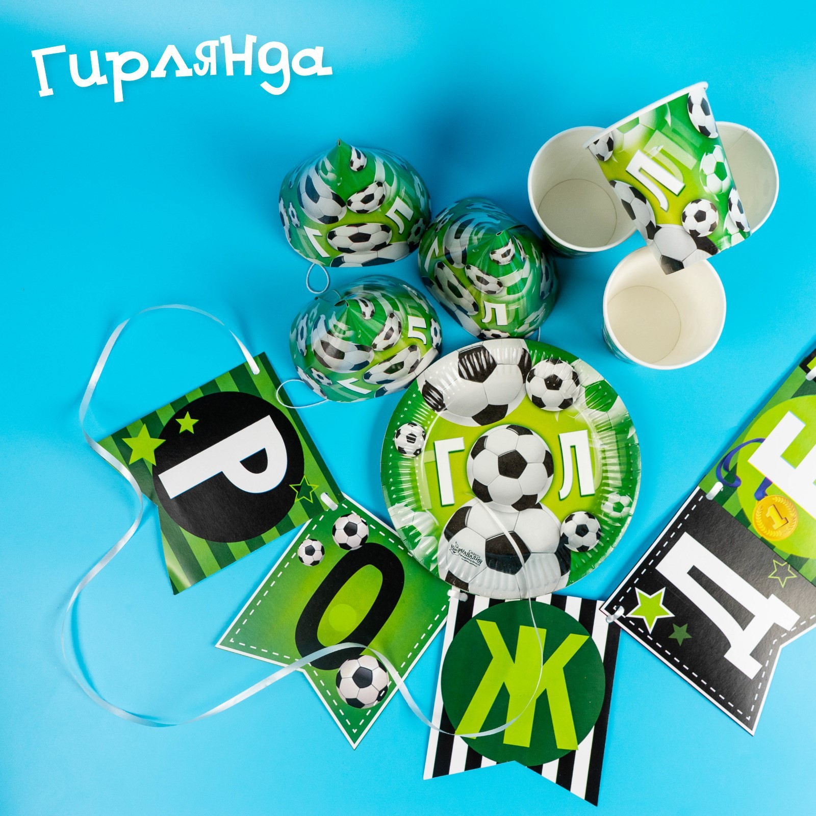 Набор бумажной посуды одноразовый с днём рождения. мячики», 6 тарелок, 6 стаканов, 6 колпаков, 1 гирлянда