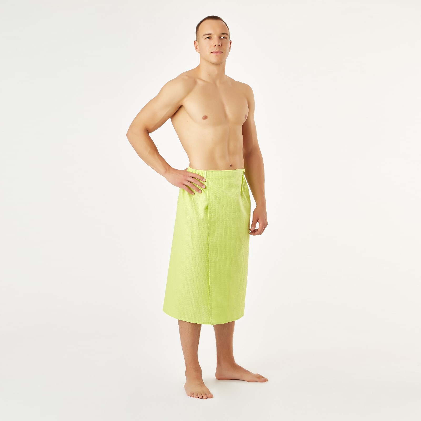 Полотенце вафельное для бани «экономь и я» (мужской килт), 75х144см, цвет салатовый