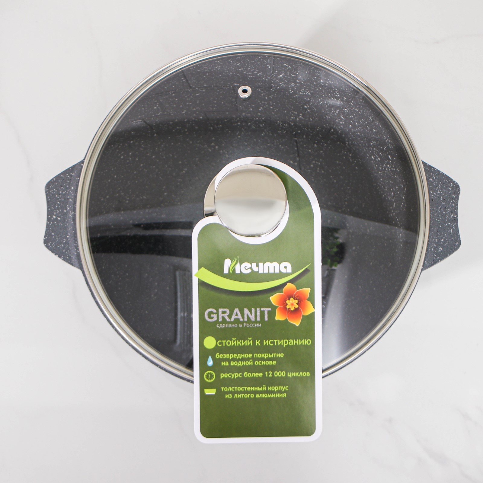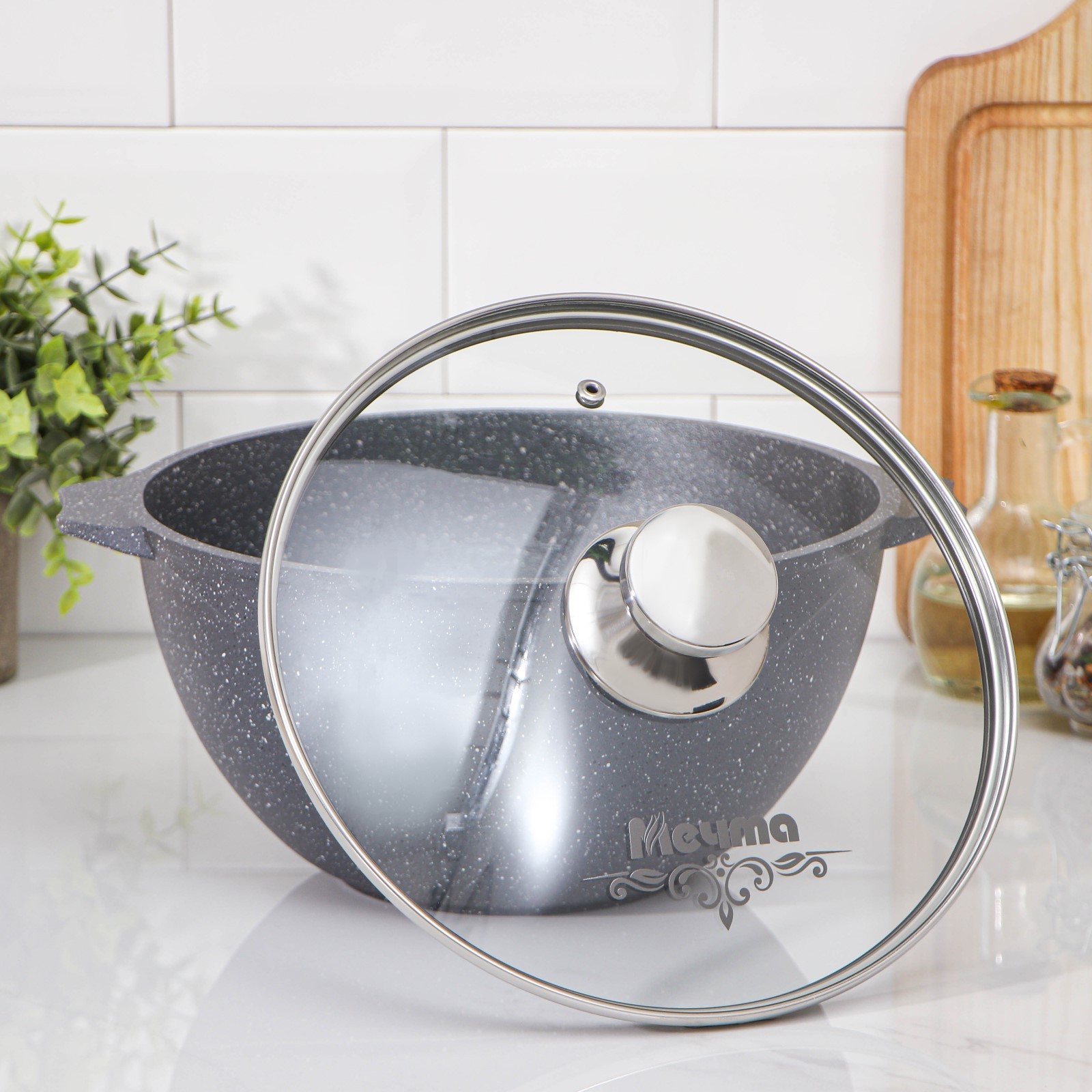 Казан «гранит», 4 л, стеклянная крышка, литые ручки, антипригарное покрытие, цвет чёрный