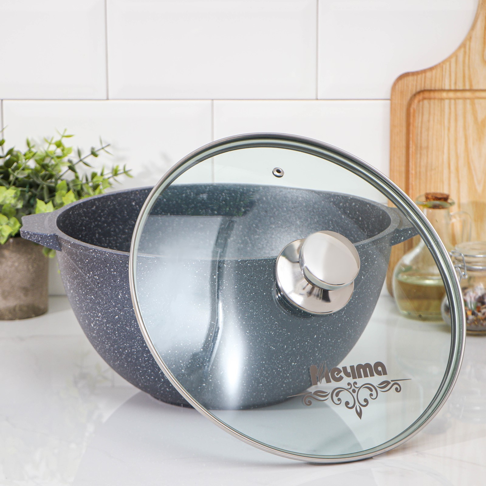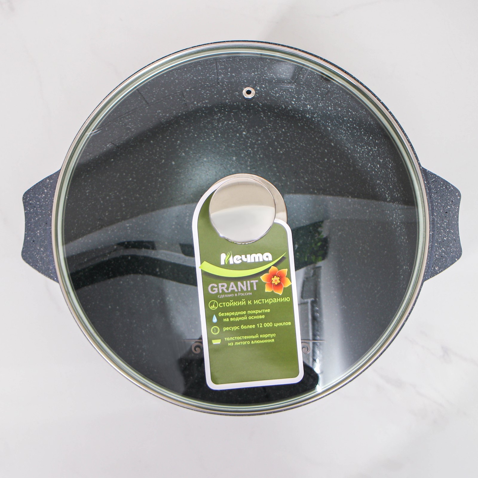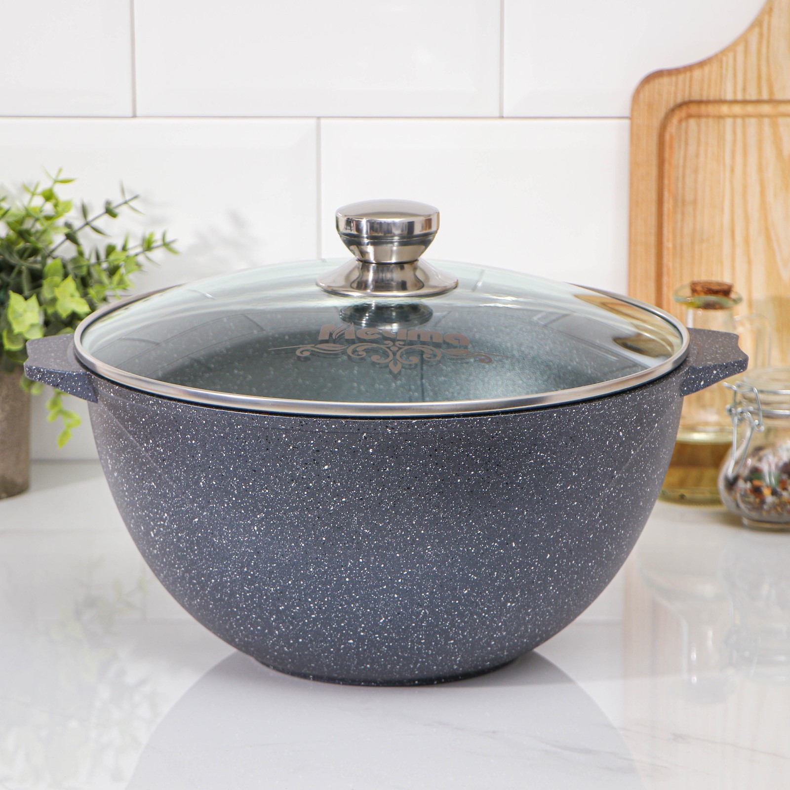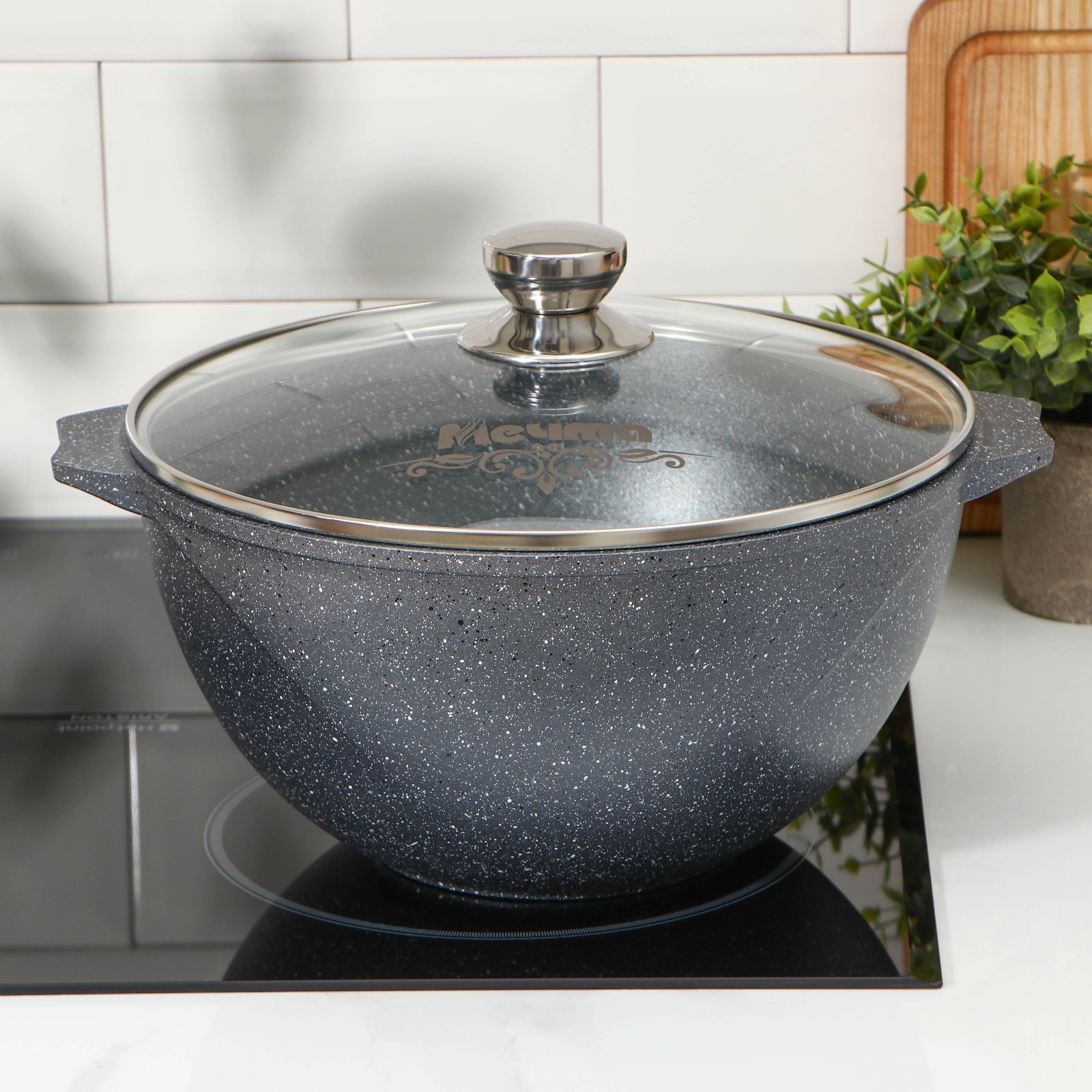 Казан «гранит», 6 л, стеклянная крышка, литые ручки, антипригарное покрытие, цвет чёрный