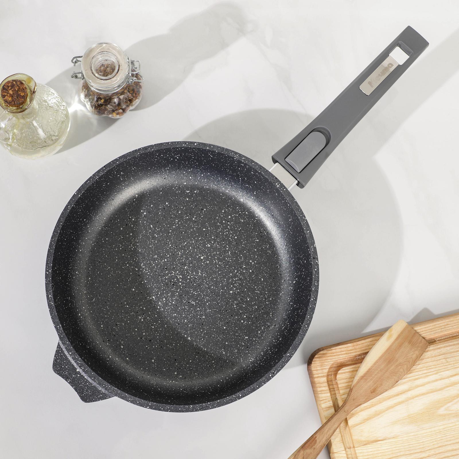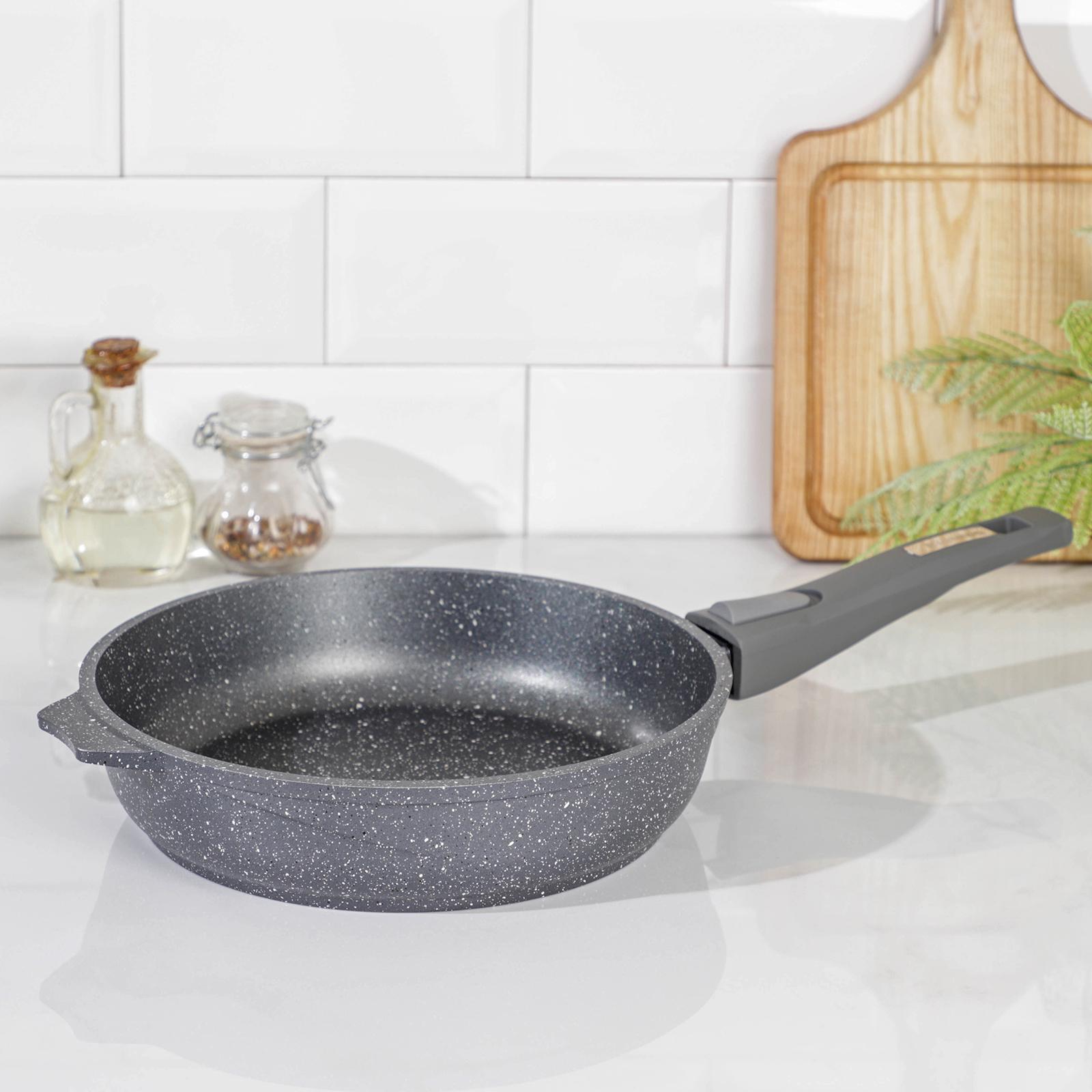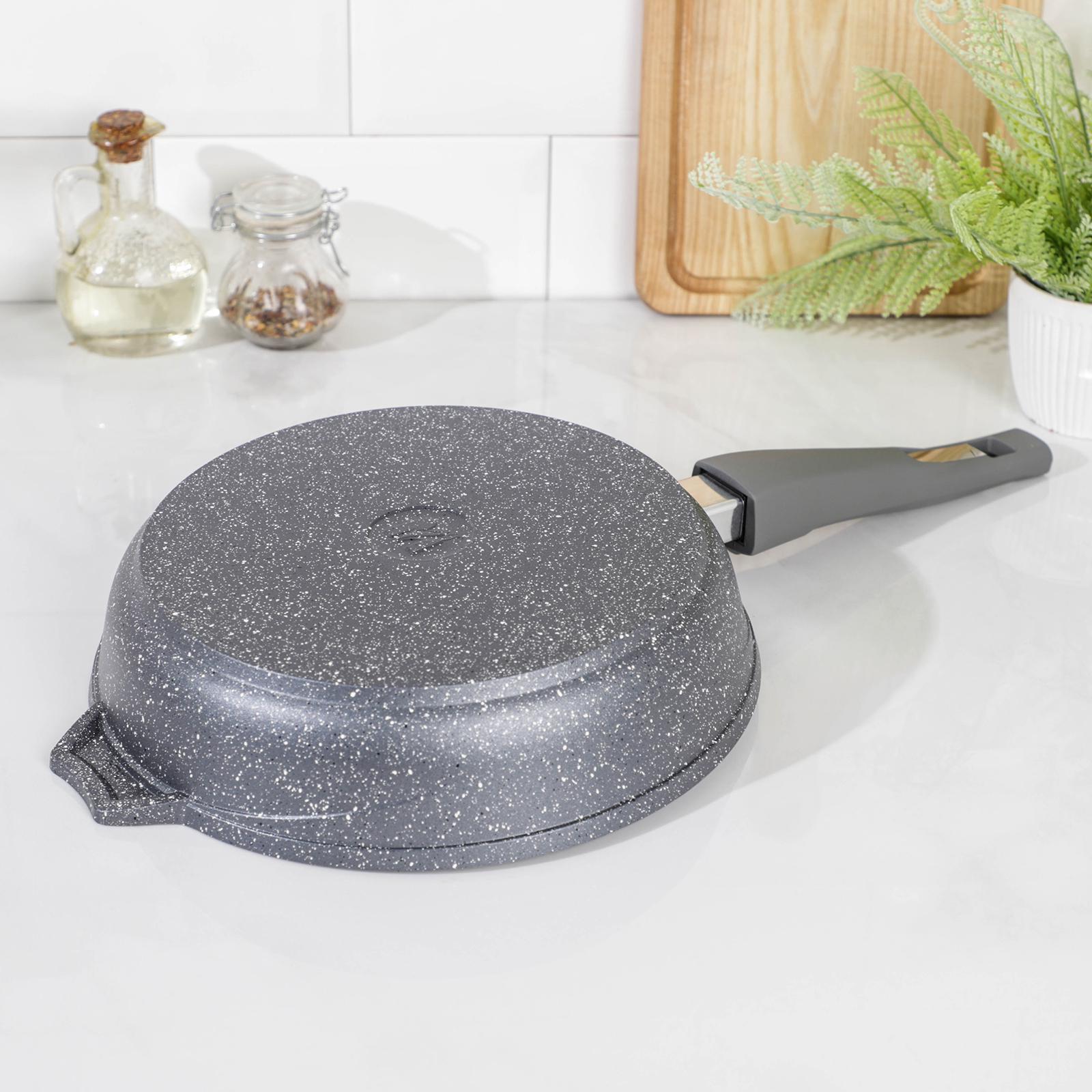 Сковорода «гранит», D=24 см, съёмная ручка, антипригарное покрытие, цвет серый