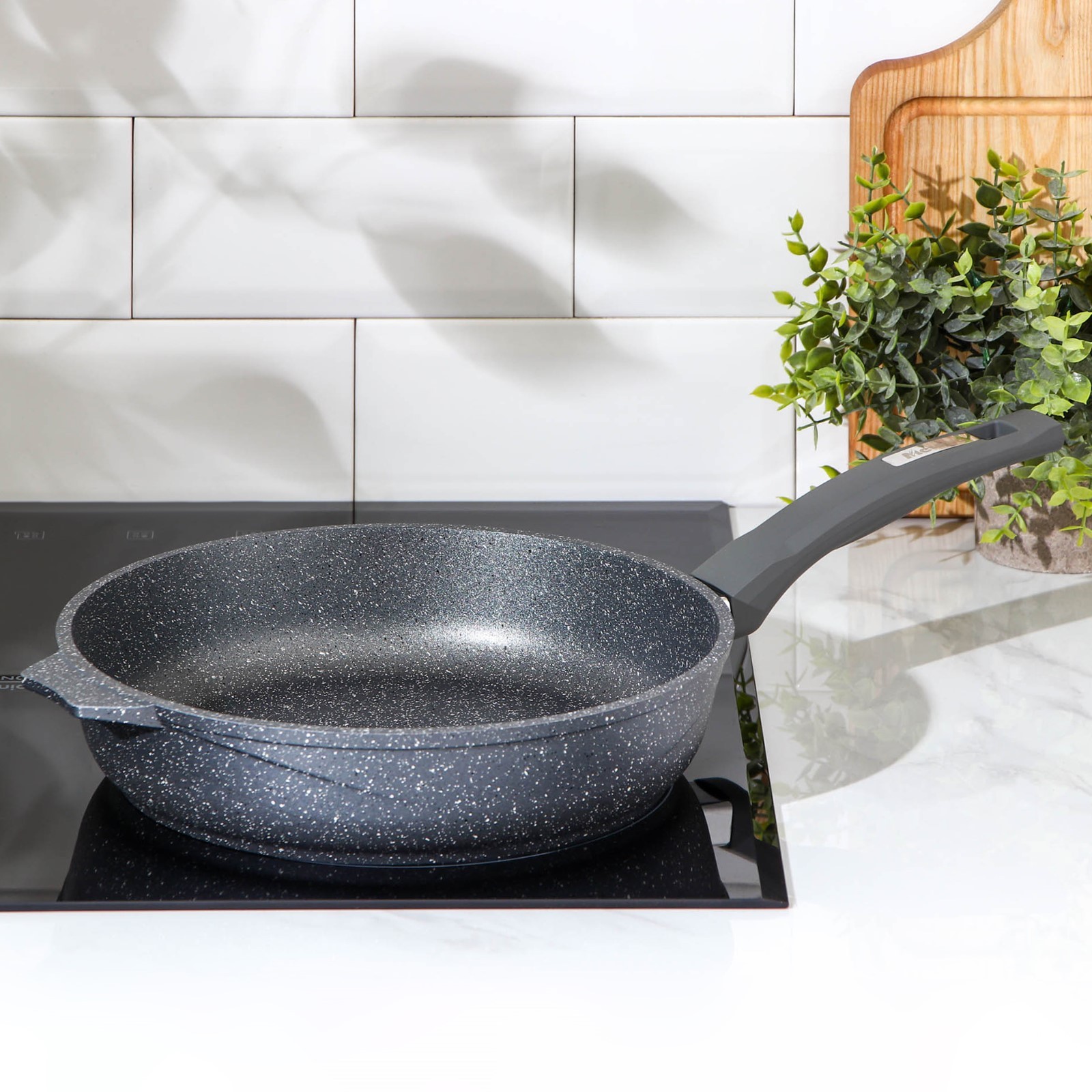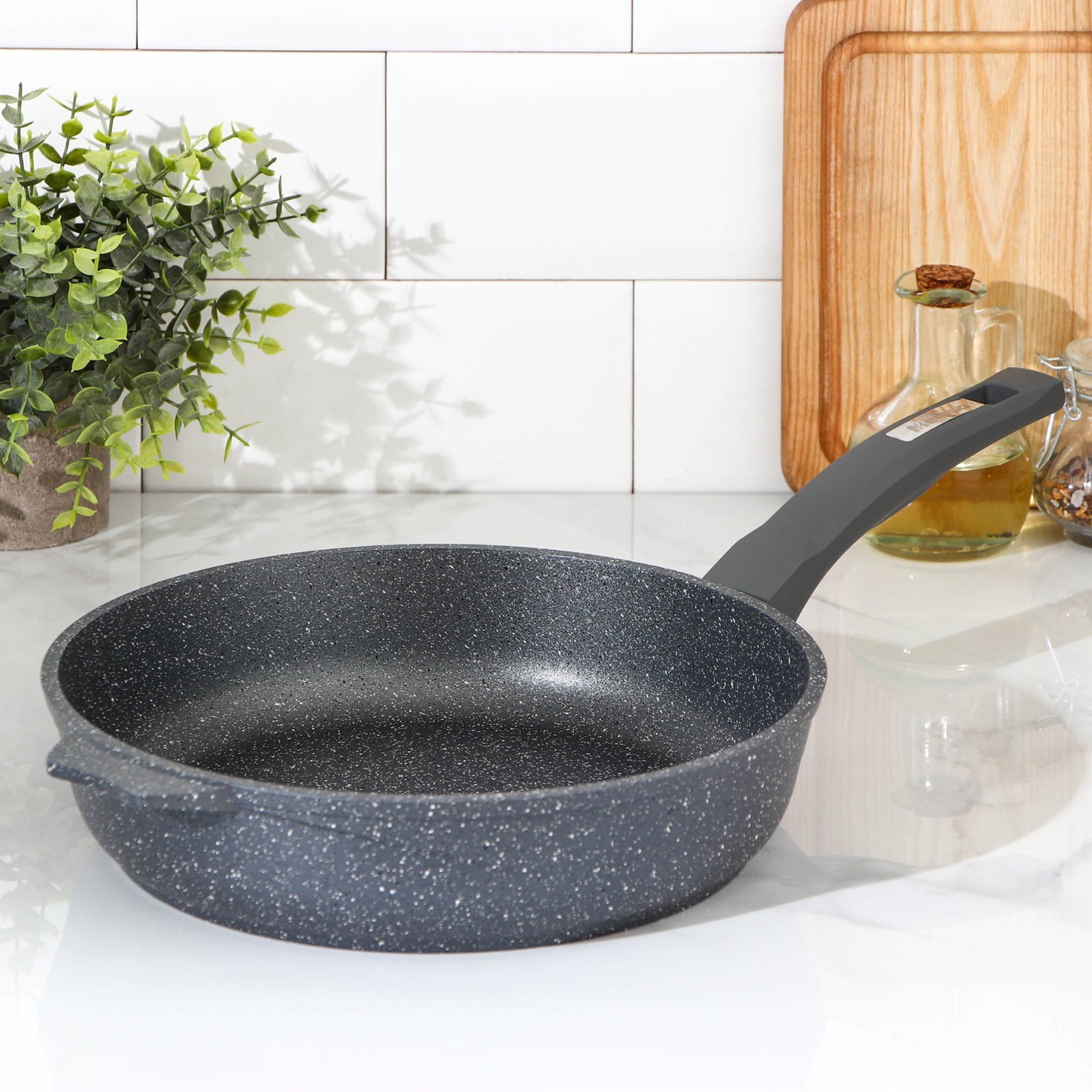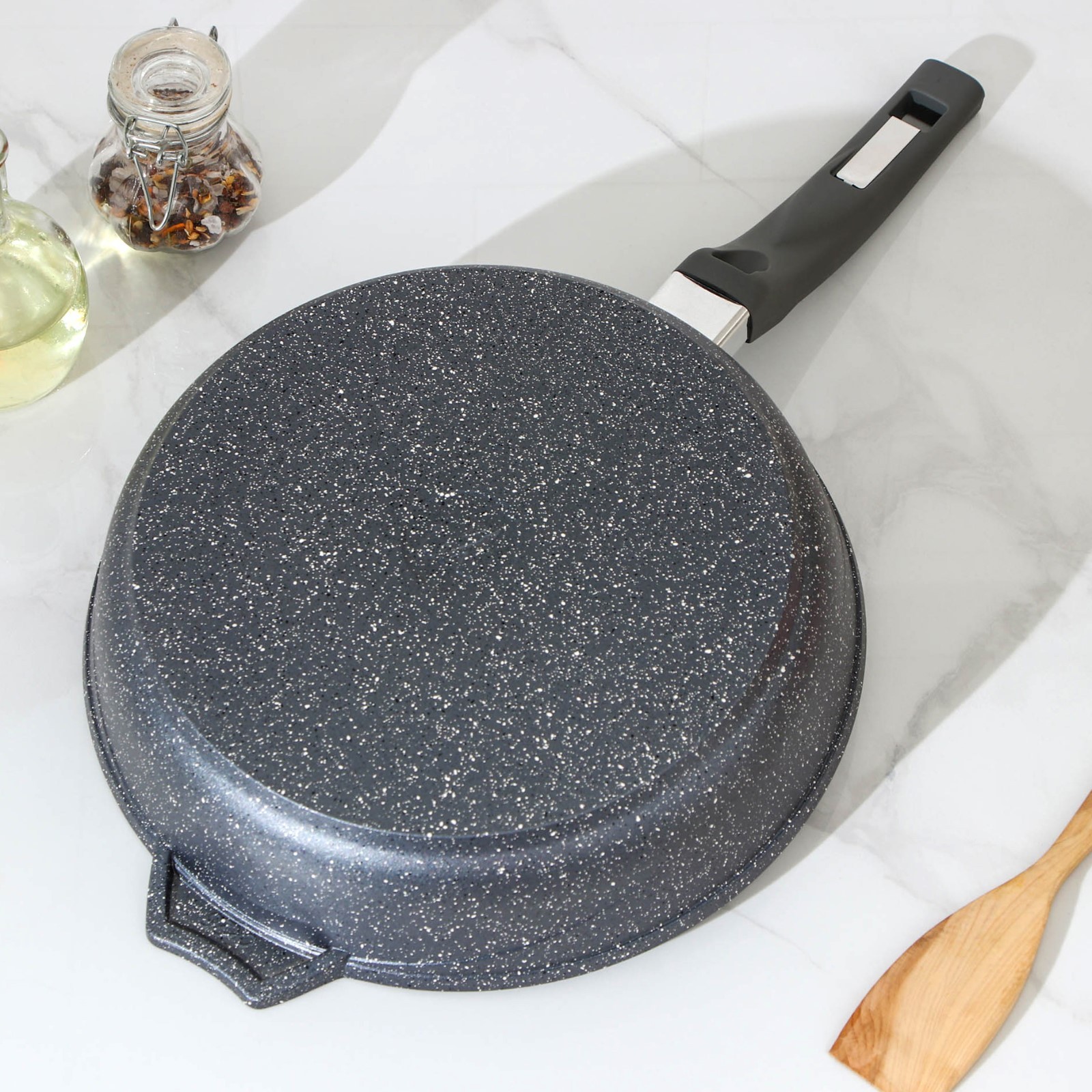 Сковорода «гранит», D=26 см, пластиковая ручка, антипригарное покрытие, цвет серый