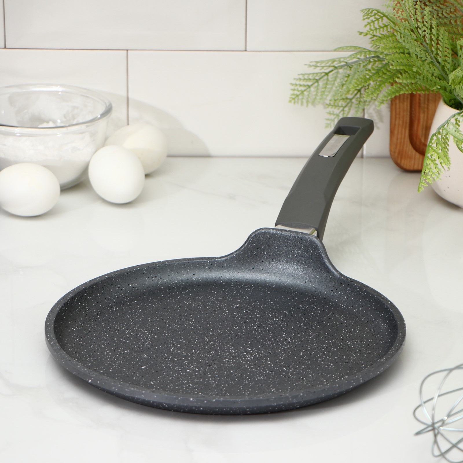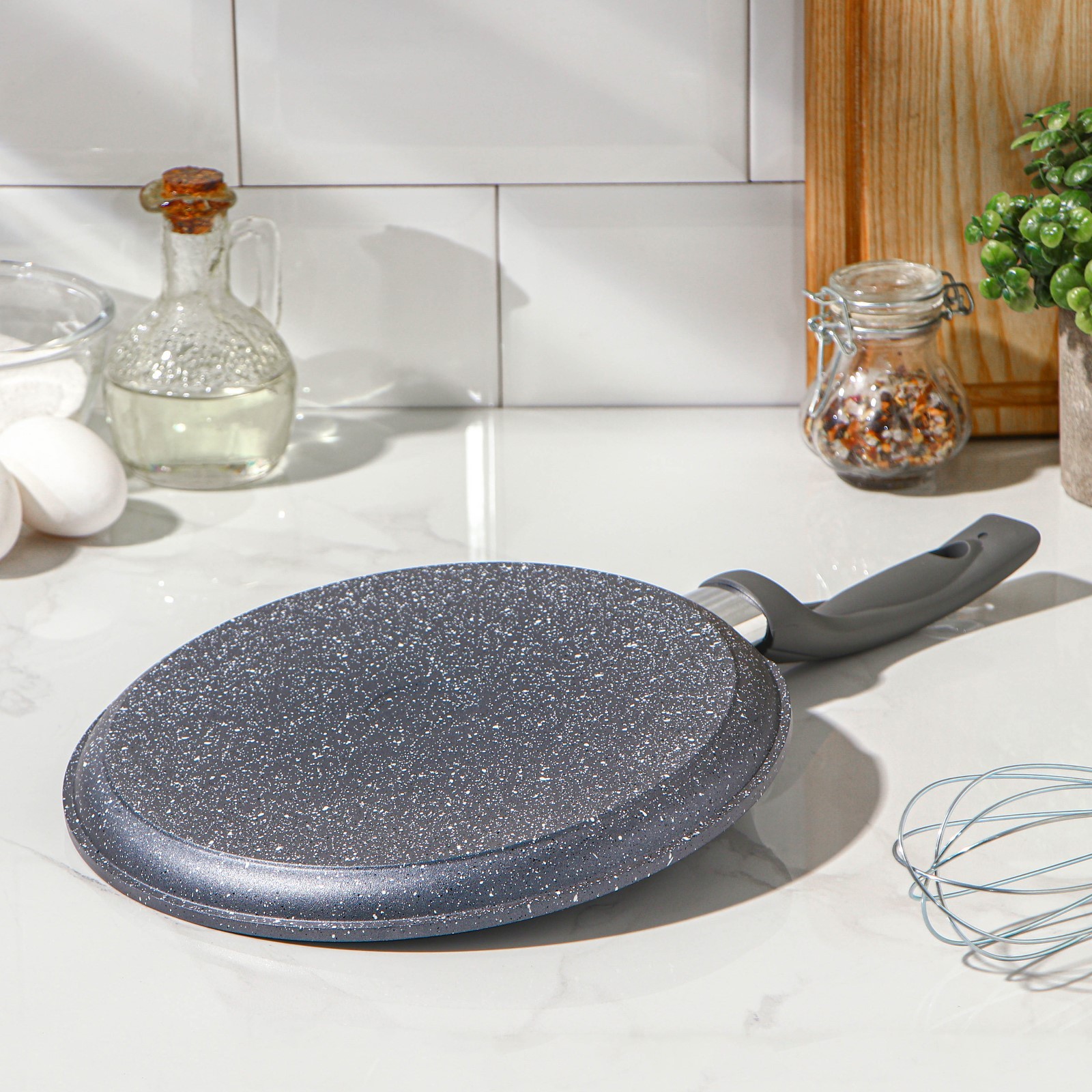Сковорода блинная «гранит», D=24 см, пластиковая ручка, антипригарное покрытие, цвет серый