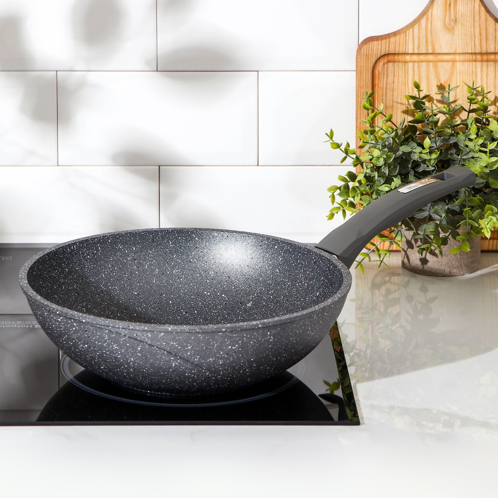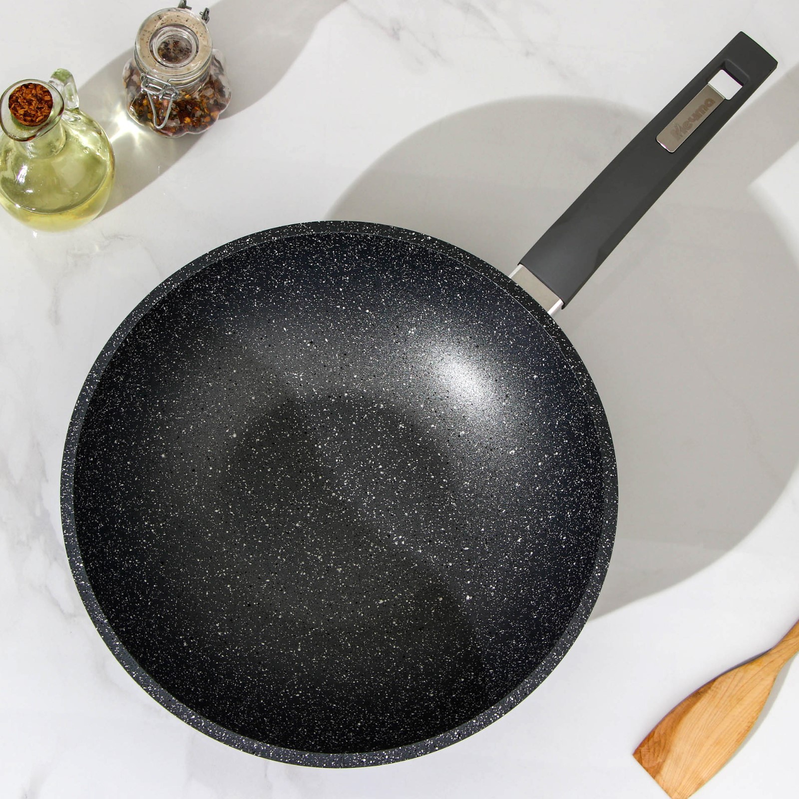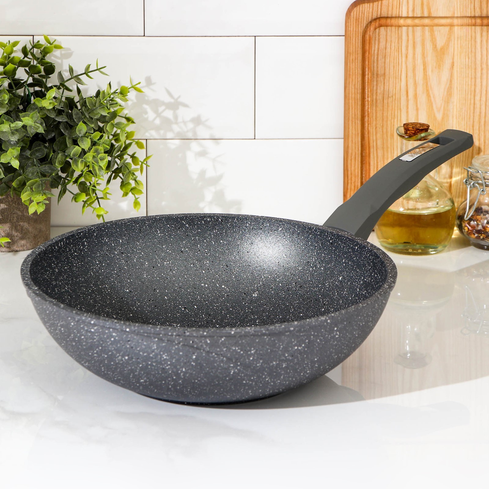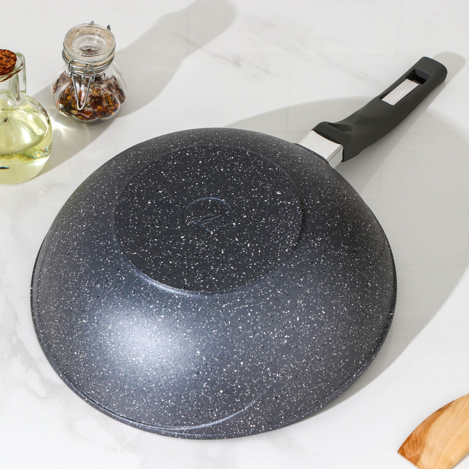 Сковорода-вок «гранит», D=28 см, пластиковая ручка, антипригарное покрытие, цвет серый