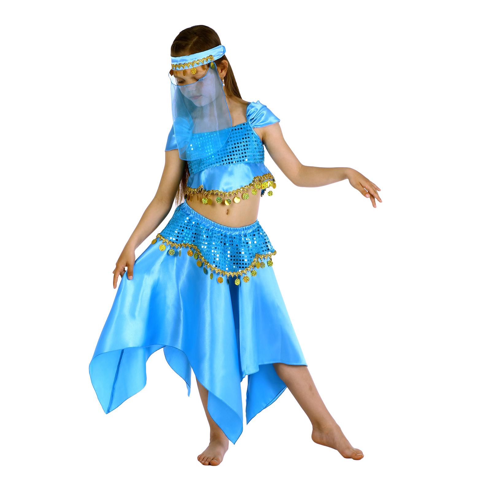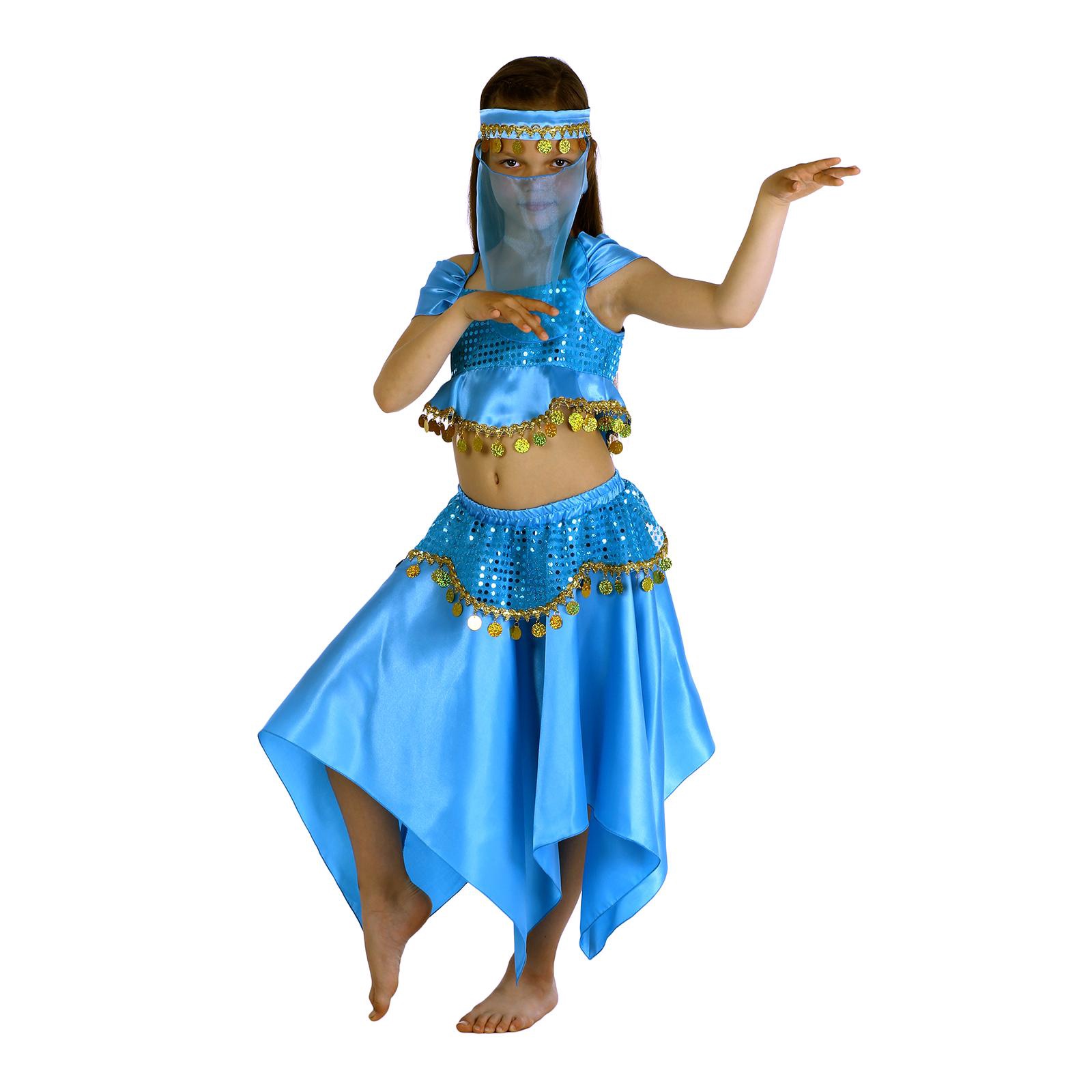 Карнавальный костюм «восточная красавица. лейла», повязка, топ, юбка, голубой, р-р 32, рост 122-128 см
