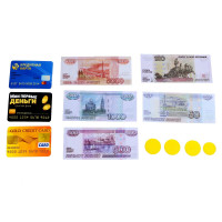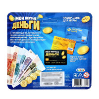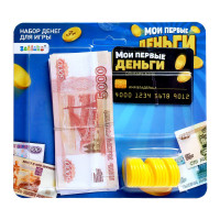Набор денег с карточками «мои первые деньги». Набор предназначен для настоящих юных миллионеров! Ваш малыш научится правильно считать деньги, пользоваться пластиковой картой и почувствует себя совсем взрослым. Как игратьx Вариант 1. В игре участвуют 2 человека. Перемешайте все деньги и на скорость разложите их в порядке возрастания. Кто справится быстрееxВариант 2. Откройте дома настоящий магазин. Продавайте сладости, игрушки, книжки! Придумайте цены вашим товарам и раздайте игрушечные деньги всем тем, кто есть дома.Вариант 3. Сравнивайте два набора купюр и монет. Расскажите малышу, какие больше, меньше или равны между собой.Для кого:Унисекс|Возраст:От 3 лет|Развитие навыков:Сюжетные игры|Развитие навыков:Математический навык|Развитие навыков:Счёт|Вид:Деньги|Тематика:Игрушечный магазин|Страна:Китай  развернуть описание ▼