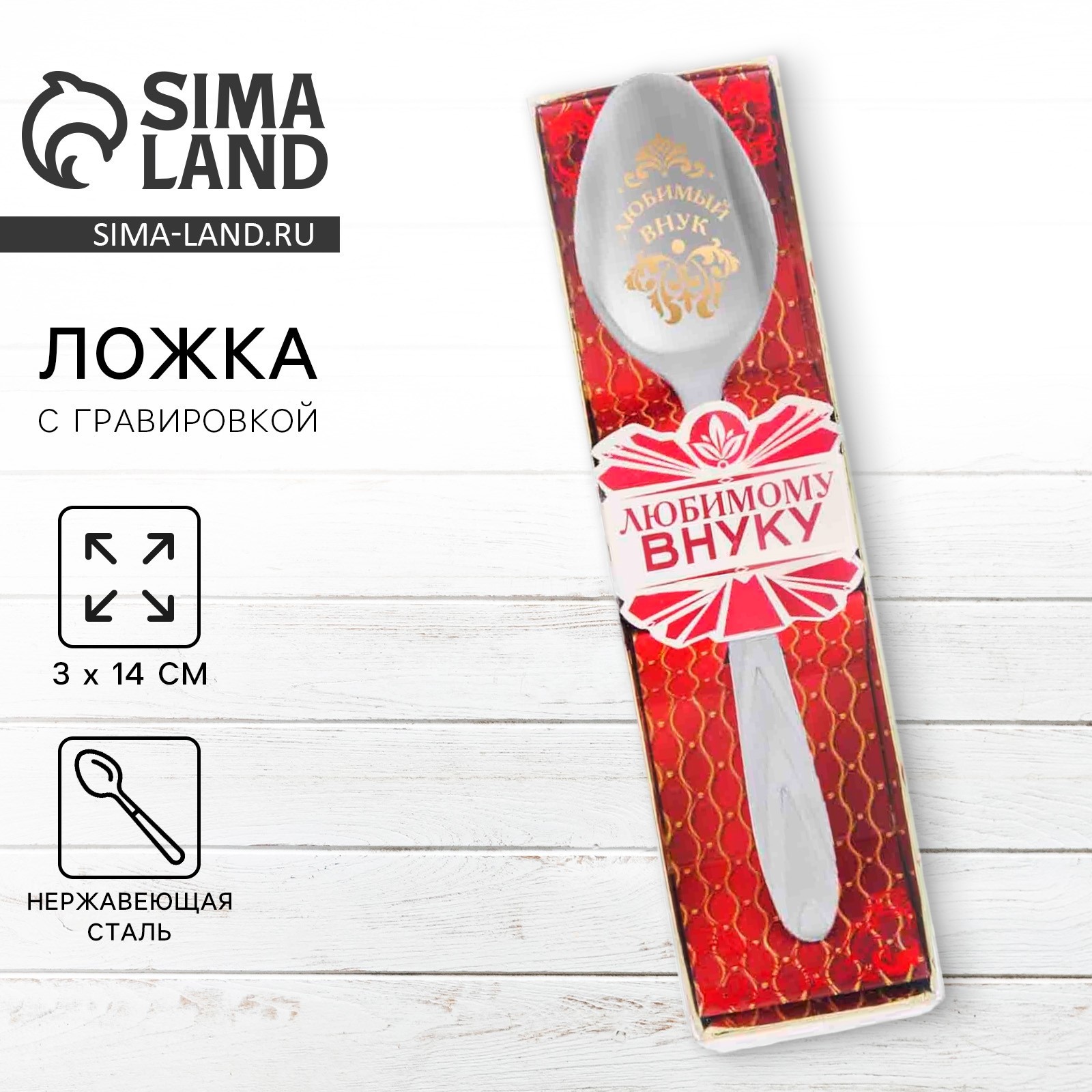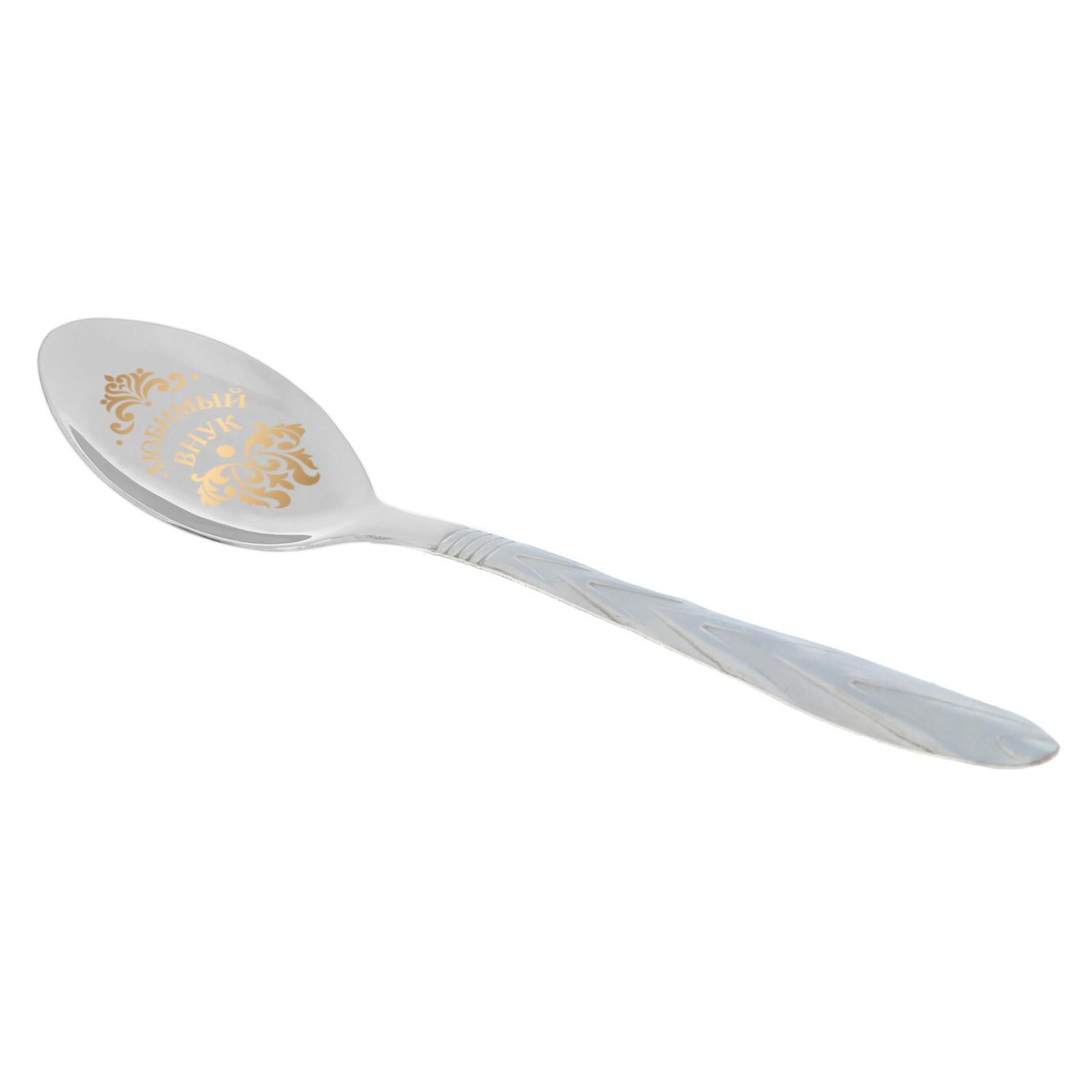 Ложка чайная с гравировкой «любимый внук», в подарочной коробке, 3 х 14 см.