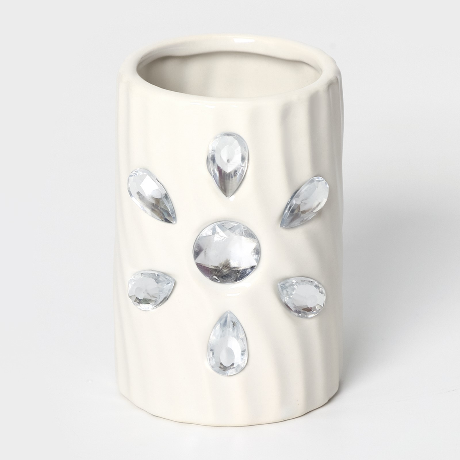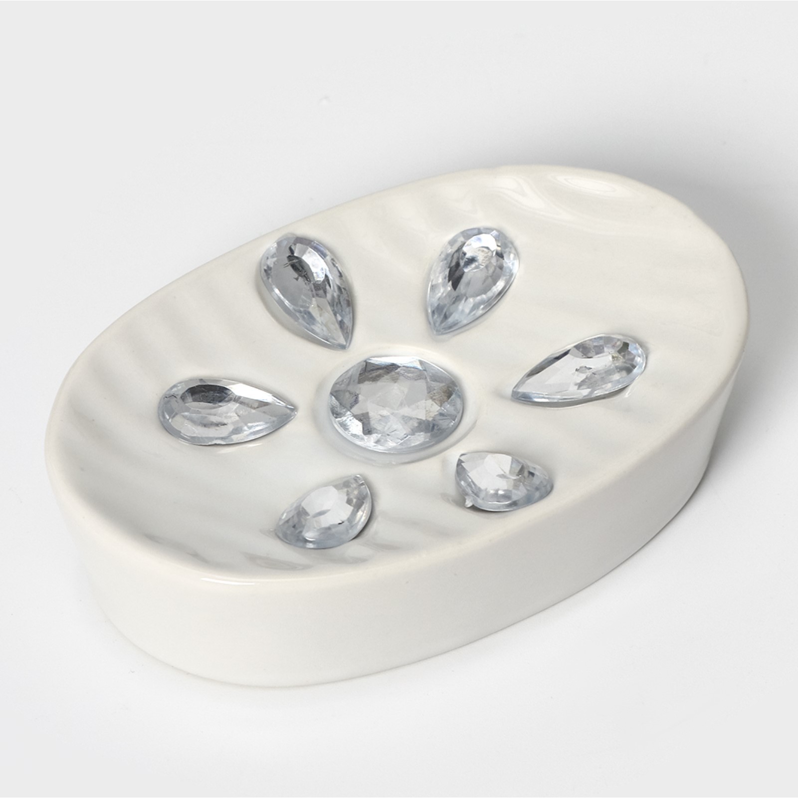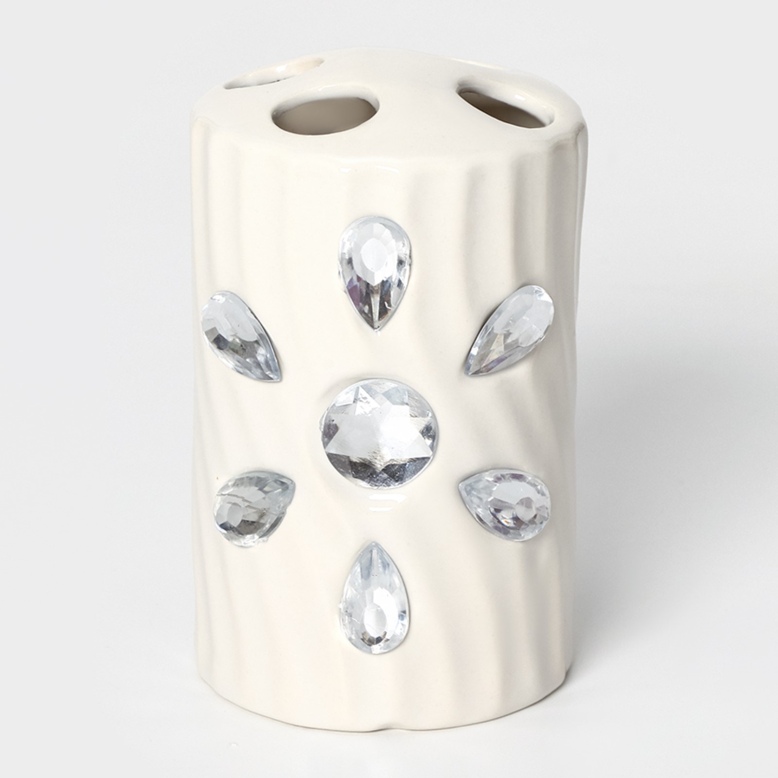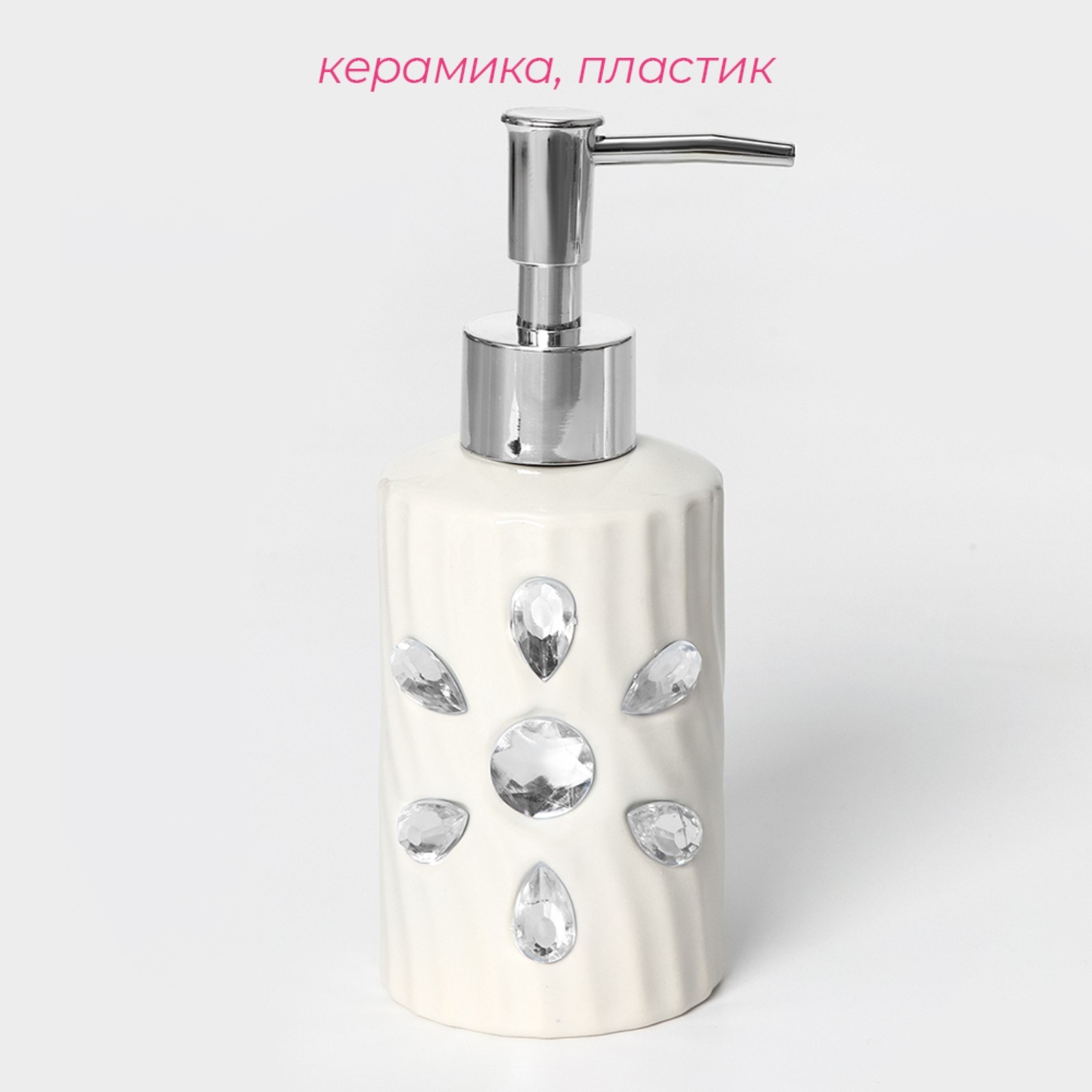 Набор аксессуаров для ванной комнаты доляна «дерево», 4 предмета (дозатор 300 мл, мыльница, 2 стакана), цвет белый